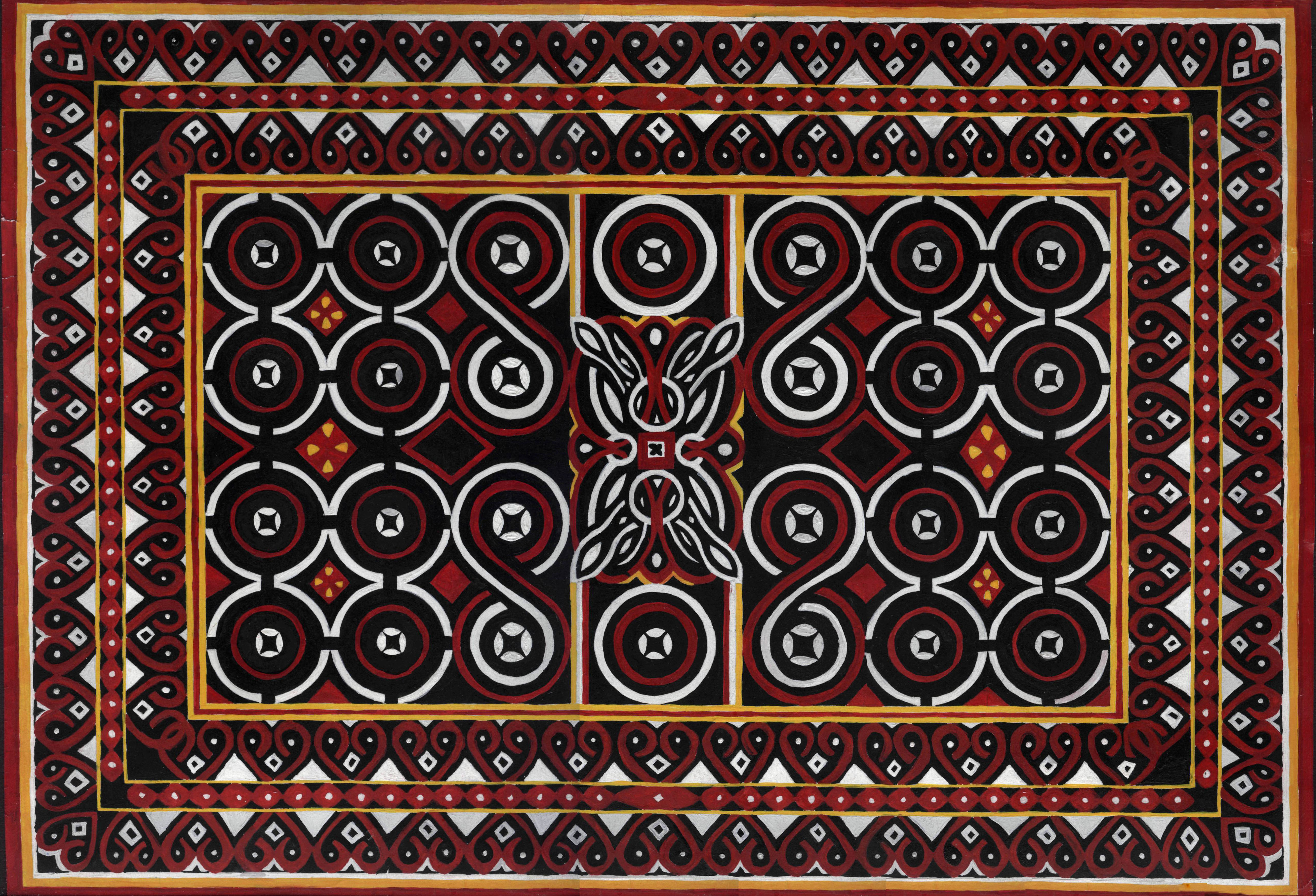 Ada gabungan 4 motif Toraja yaitu ne 'limbongan, pa 'bulu londong, pa 'kapu baka dan eight heads. Kombinasi warna terdiri dari 4 warna yaitu merah, hitam, putih, dan kuning sedangkan motifnya bernuansa geometris. Ke empat motif di atas memiliki fungsi yang sama seperti pada umumnya dalam adat Toraja, selain sebagai motif dalam ukir-ukiran, motif Toraja digunakan juga untuk kain orang meninggal.