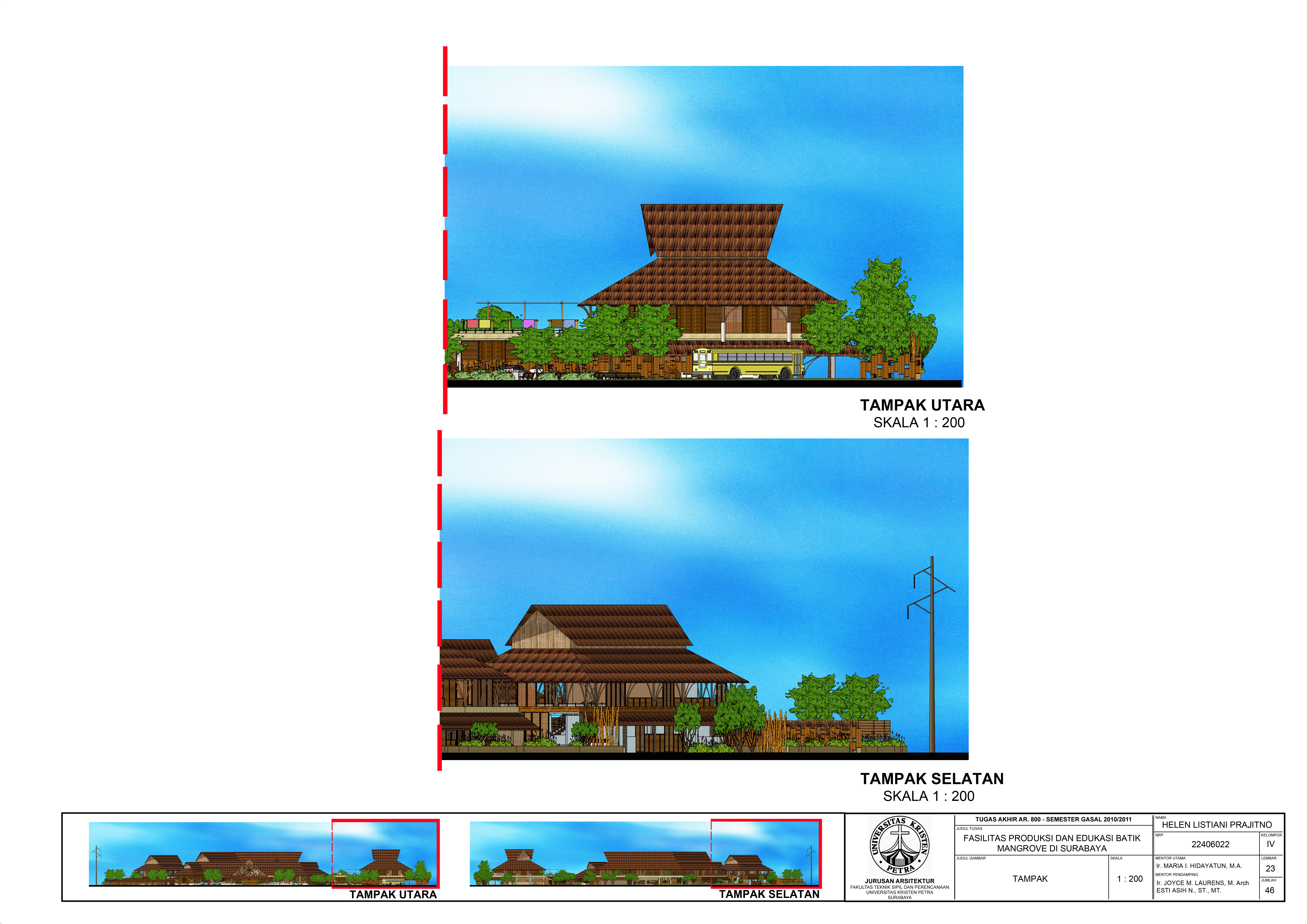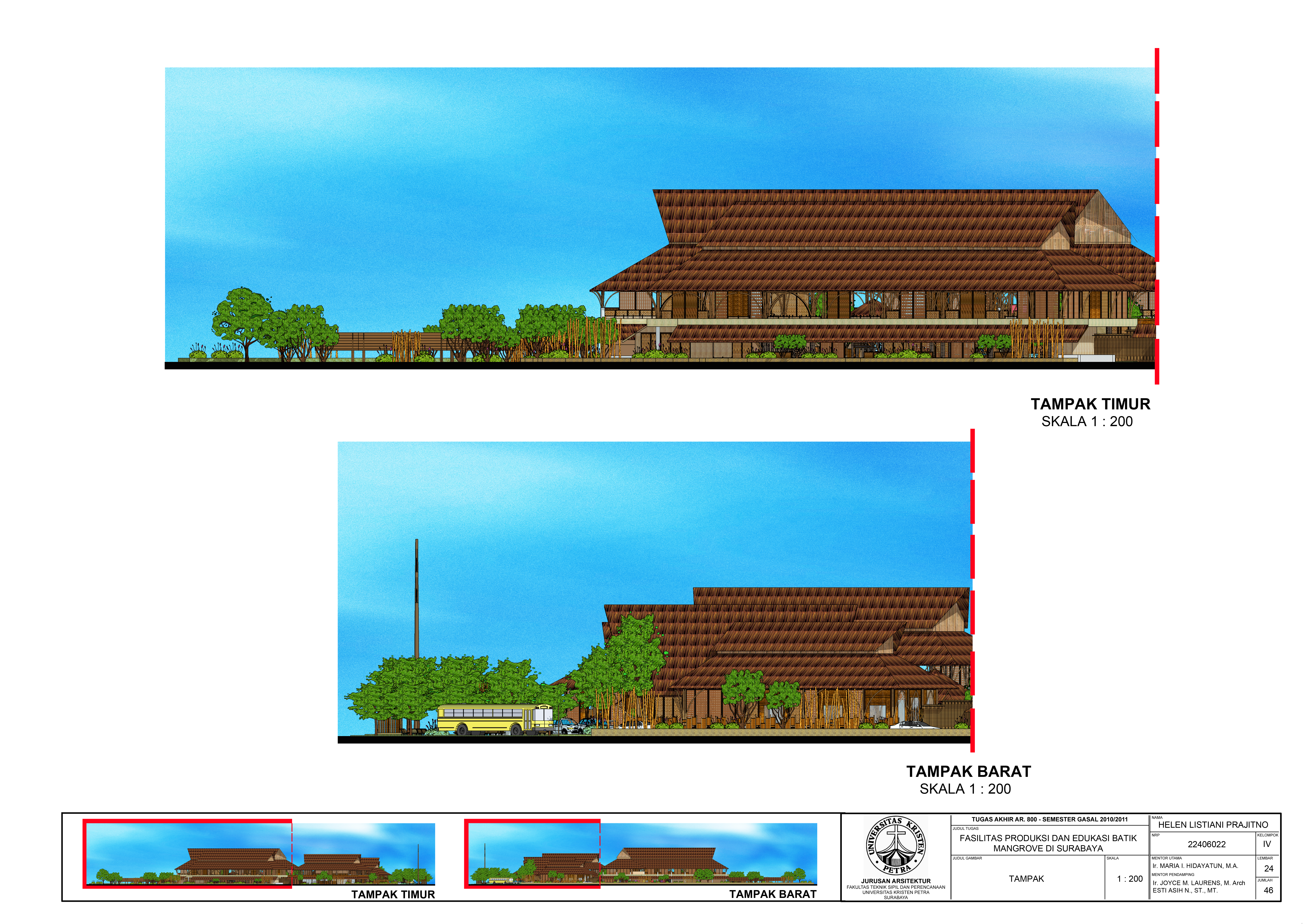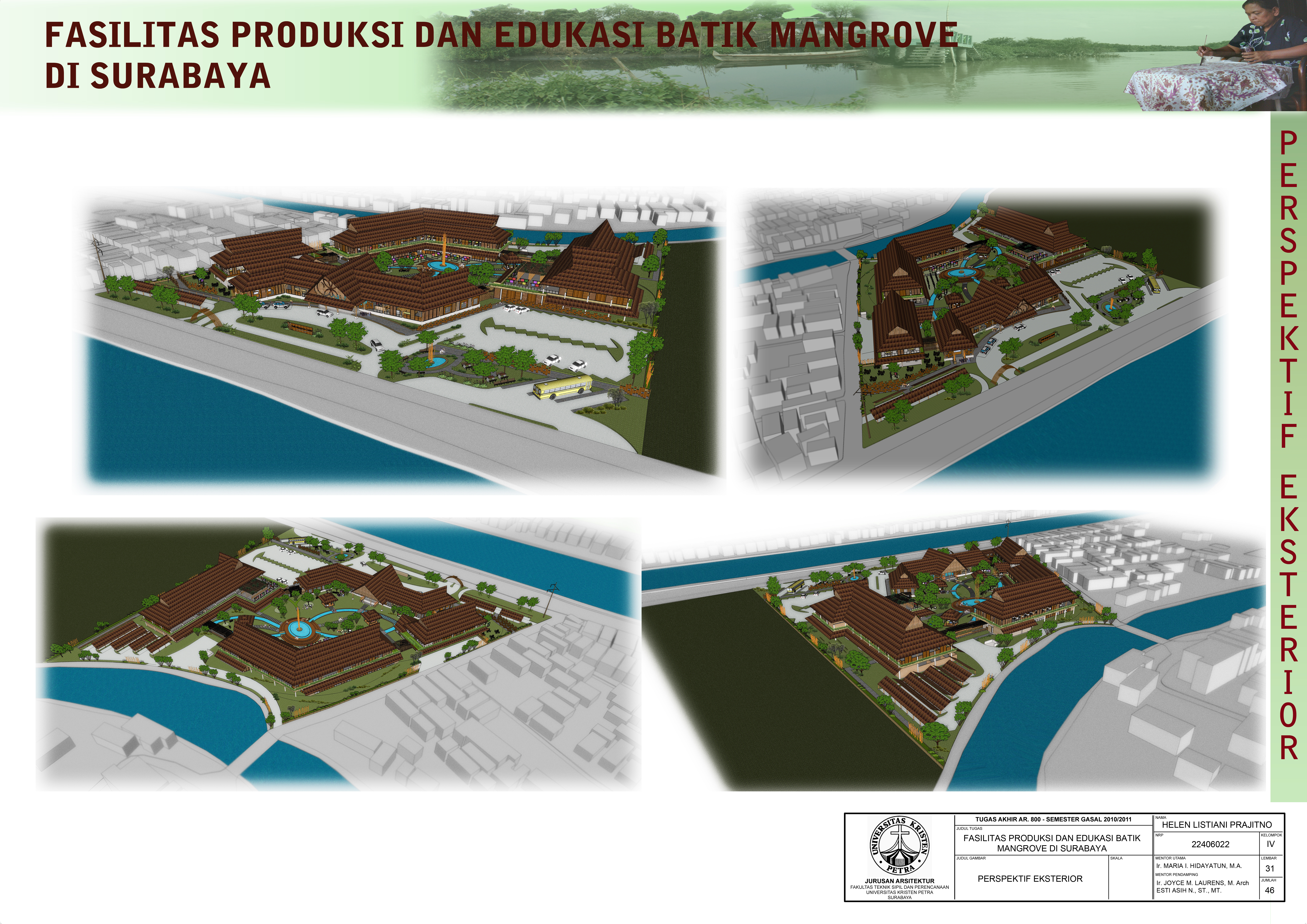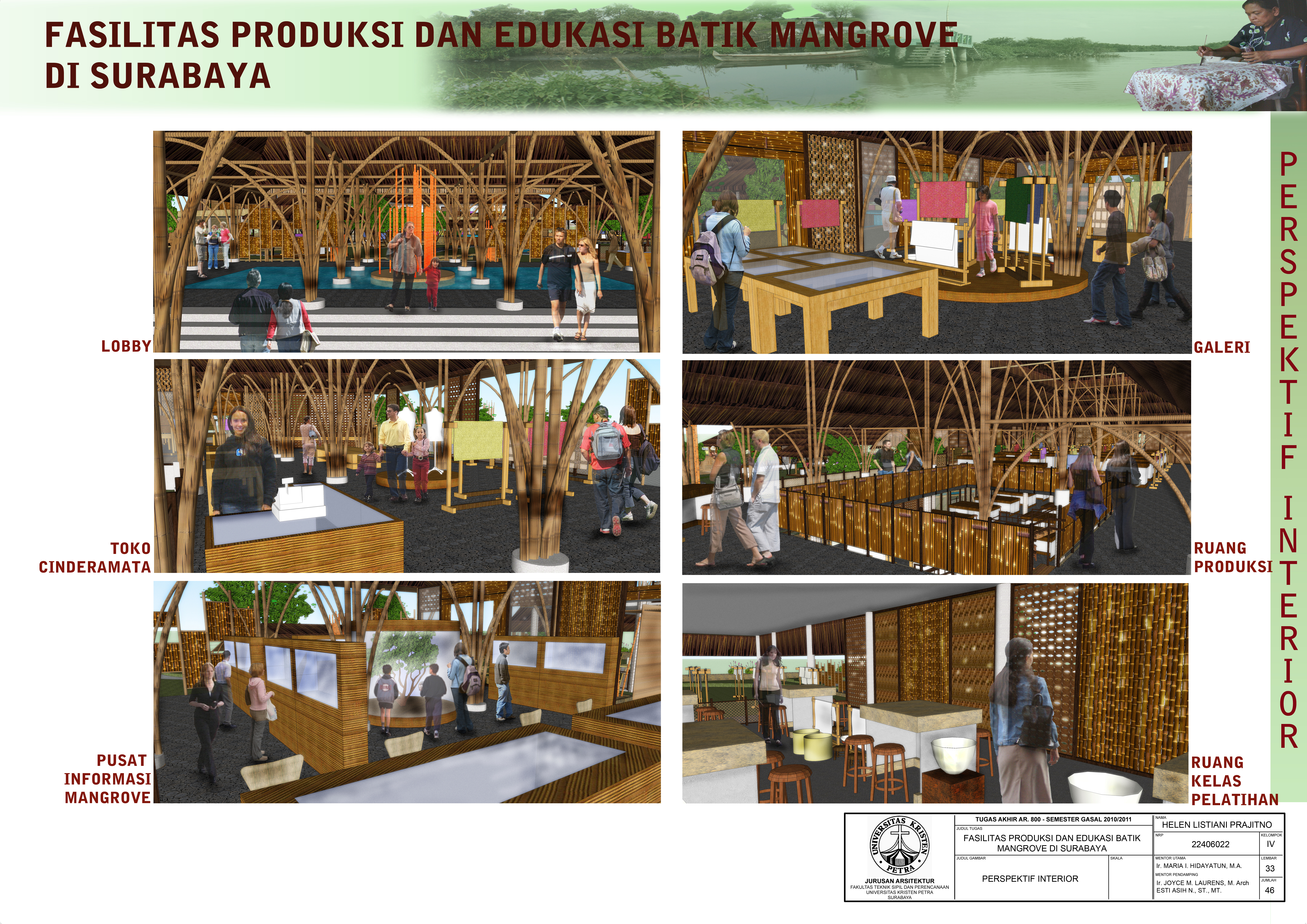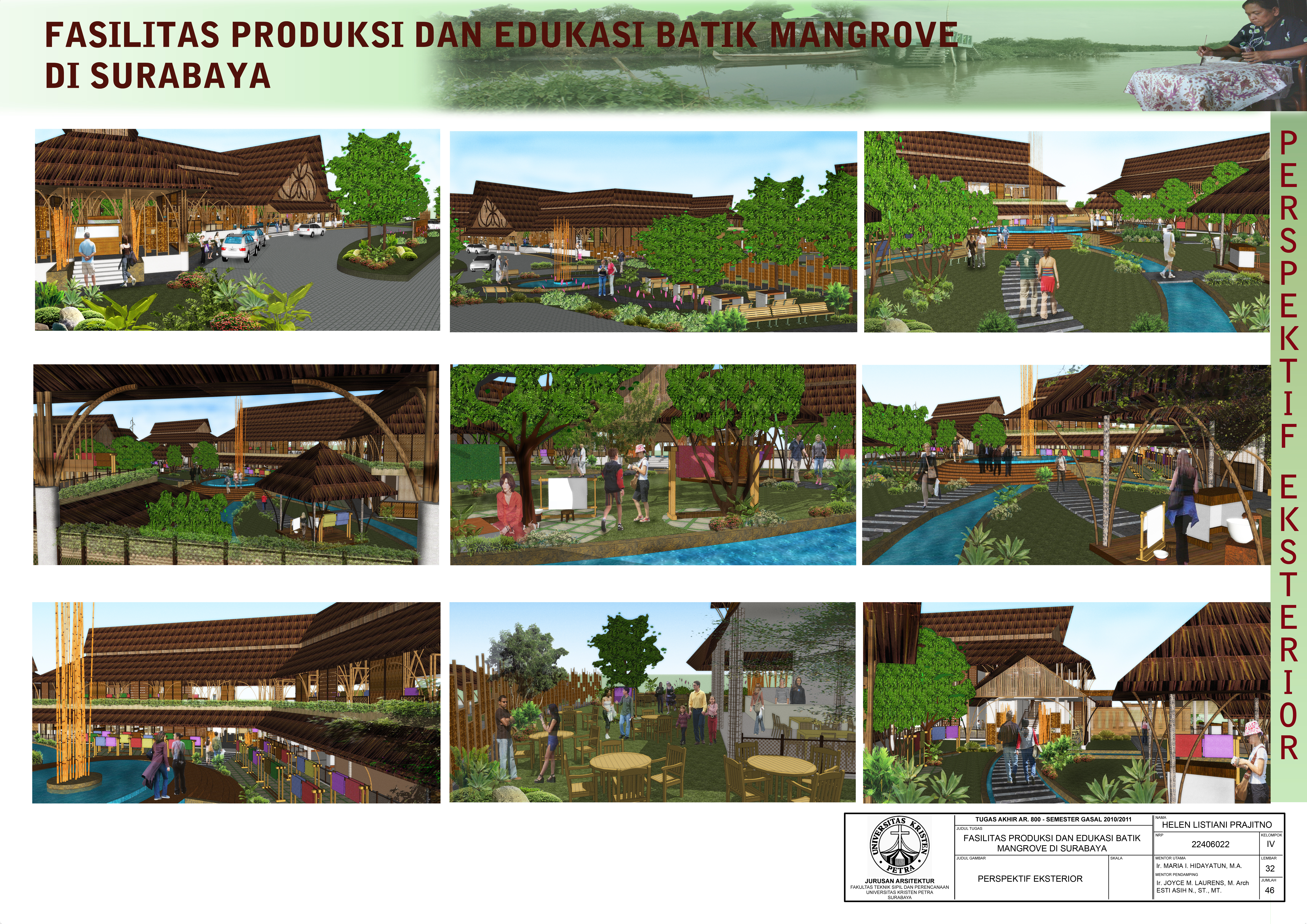 Fasilitas Produksi dan Edukasi Batik Mangrove di Surabaya ini adalah fasilitas yang mewadahi kegiatan produksi batik mangrove sekaligus memberikan pengenalan dan pelatihan kepada masyarakat tentang batik mangrove. Masyarakat juga diajak untuk lebih peduli terhadap pentingnya ekosistem mangrove. Pada fasilitas ini, masyarakat dapat melihat secara langsung proses produksi batik mangrove dan belajar membatik secara spontan. Bagi pengunjung yang ingin mempelajari dengan lebih lanjut tentang proses pembuatan batik mangrove, tersedia juga ruang kelas pelatihan privat maupun kelompok. Ruangan-ruangan lain yang tersedia adalah galeri sebagai tempat untuk memamerkan hasil karya pengrajin dan murid pelatihan, toko cinderamata, pusat informasi mangrove, halte mini shuttle bus ke ekowisata mangrove, tempat makan, dan ruangan penunjang lainnya.