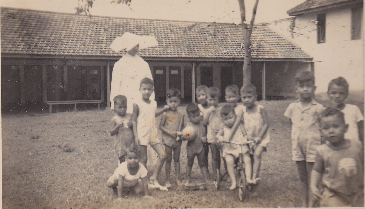 Sr.Rafael bersama beberapa anak asuh di halaman main dalam panti, tahun 1951.