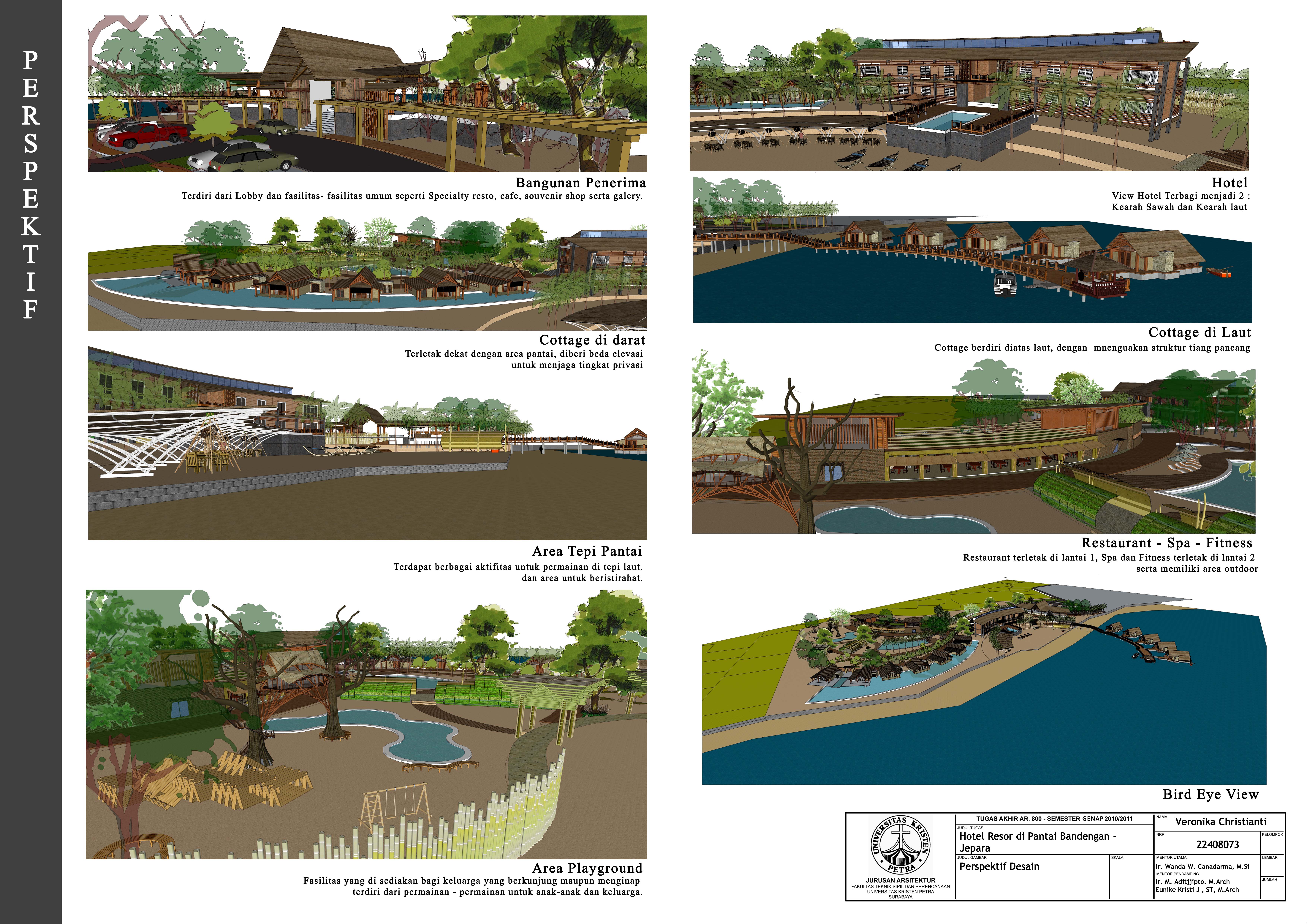 Hotel Resor di Pantai Bandengan Jepara bertujuan untuk mendukung program peningkatan sektor pariwisata di kota Jepara. Serta untuk mewadahi dan memfasilitasi wisatawan yang jumlahnya setiap tahun semakin meningkat. Hotel Resor ini terdiri dari hotel, cottage air maupun cottage darat, serta fasilitas yang mendukung. Fasilitas pendukung yang disediakan adalah permainan air karena lokasi dari tapak yang berada di area pantai, agar penghuni atau pengunjung dapat pula menikmati area pantai yang ada.