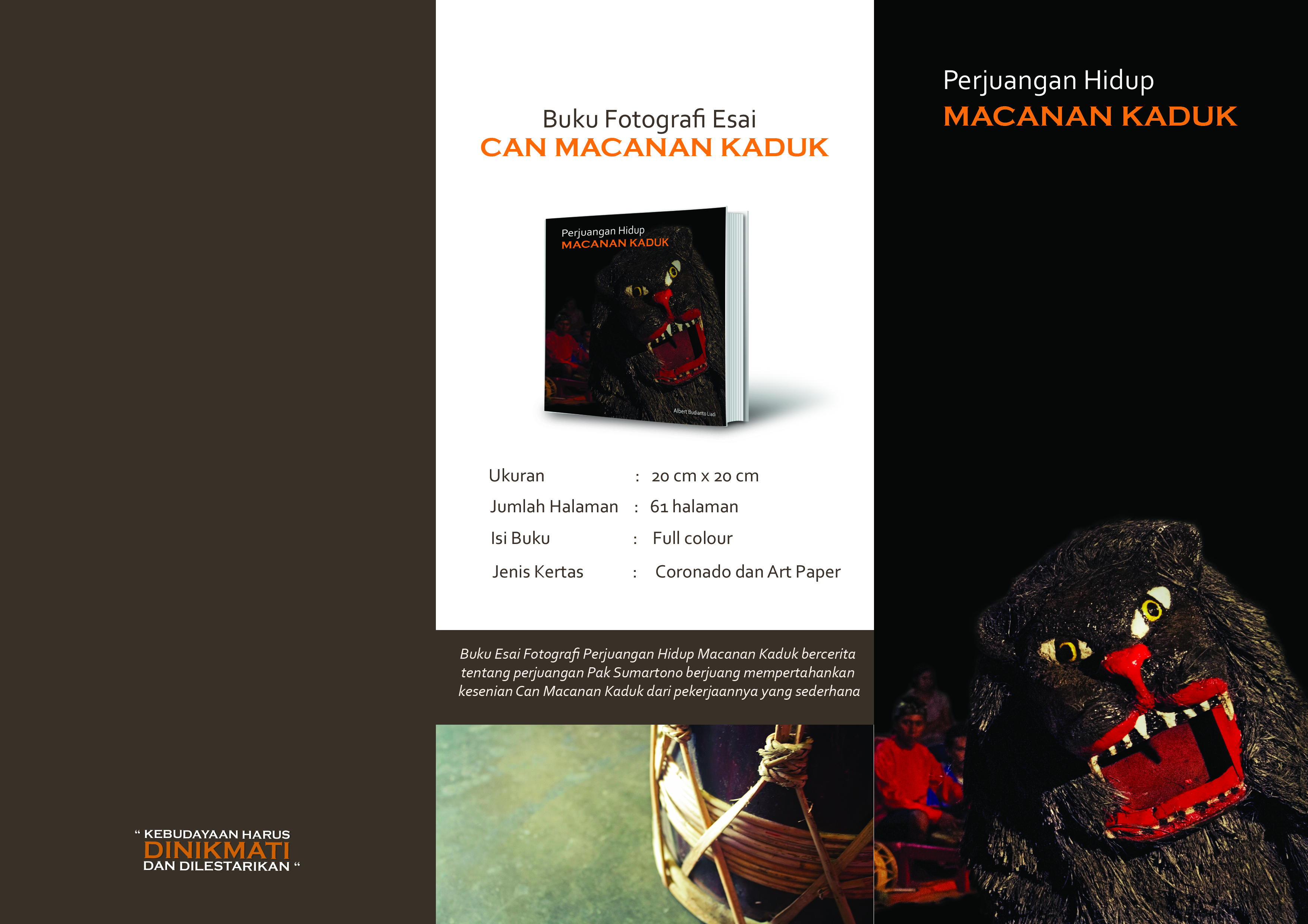 Perancangan buku fotografi esai ini bertujuan untuk mendokumentasikan dan memperkenalkan serta menunjukkan perjuangan kehidupan anggota kelompok Can Macanan Kaduk dalam mempertahankan kesenian mereka ini. Saya harap masyarakat Indonesia dapat mengenal Can Macanan Kaduk dan kesenian lain yang ada di Indonesia.