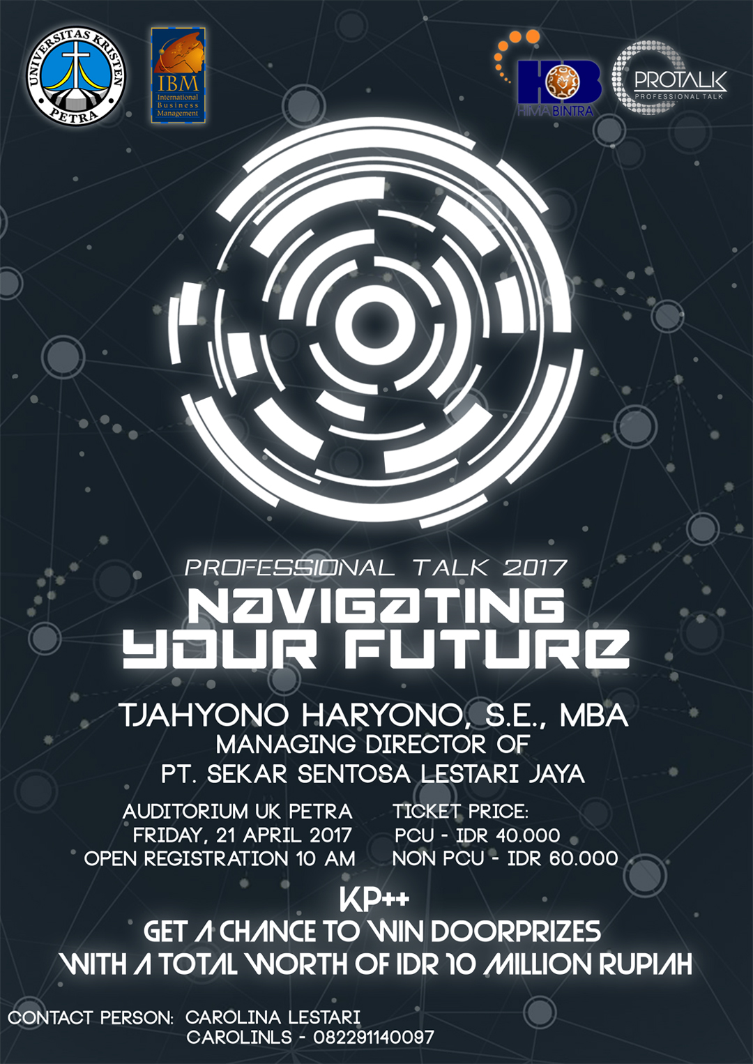 International Business Management UK Petra, mengadakan acara professional talk 2017, dengan tema "Navigating your future". Dengan menghadirkan bapak Tjahyono Haryono managing director of PT Sekar Sentosa Lestari Jaya. Acara ini dilaksanakan pada 21 April 2017 di Auditorium UK Petra.