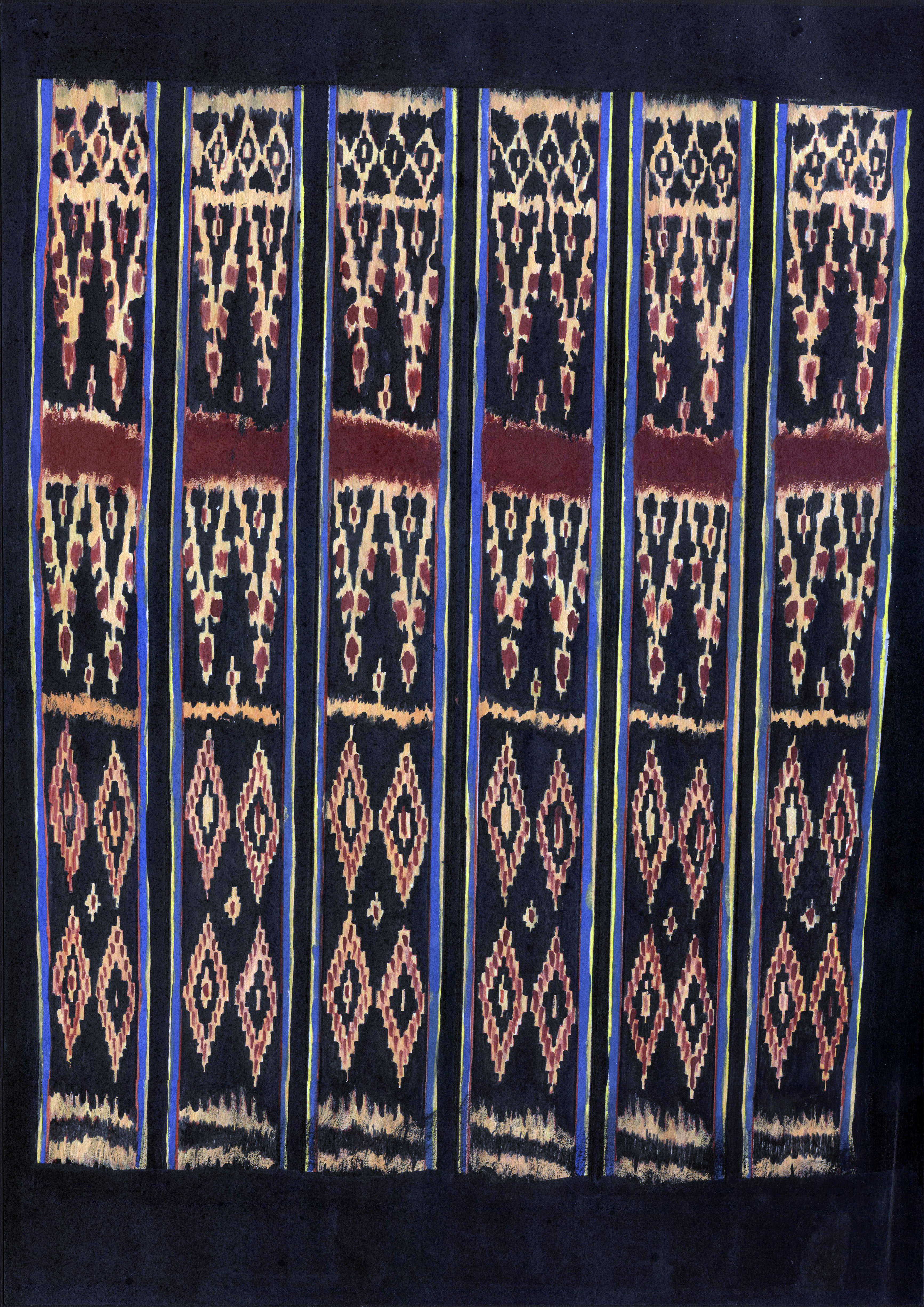 Sabu adalah pulau kecil yang terletak pada deretan pulau bagian selatan Indonesia, tepatnya di antara Pulau Rote dan Sumba. Meskipun sekarang sebagian besar orang Sabu memeluk agama Kristen, sisa-sisa kepercayaan animisme masih tercermin dalam sejumlah budaya dan hasil karya budayanya. Misalnya tenun ikat sabu. Ragam hias pada tenun ikat sabu menonjolkan arti perlambang dari kehidupan masyarakat dan keaadan alam sekitarnya, dan juga masih menunjukkan pengaruh kebudayaan Dong Son. Kombinasi hiasan berderet dalam jalur lebar yang teratur namun tidak simetris menjadi ciri khas tenunan di pulau terpencil ini. Ragam hias geometris pada sarung seperti gambar di atas biasanya digunakan oleh suku kecil (Hubi iki) Sabu, dalam bahasa Sabu disebut Ledo. Orang Sabu mengenal 3 warna dasar tenunan, yaitu putih, coklat, dan biru-hitam, sesuai jenis tumbuhan untuk mewarnakan benang. Sekarang digunakan warna kuning dari umbi kunyit yang dibawa dari Pulau Timor. Penenunan Pulau Sabu lebih suka menggunakan bahan pewarna tradisional karena lebih cerah. Tenunan pabrik dinyatakan tepat guna, tenunan adat ternyata mandra guna.