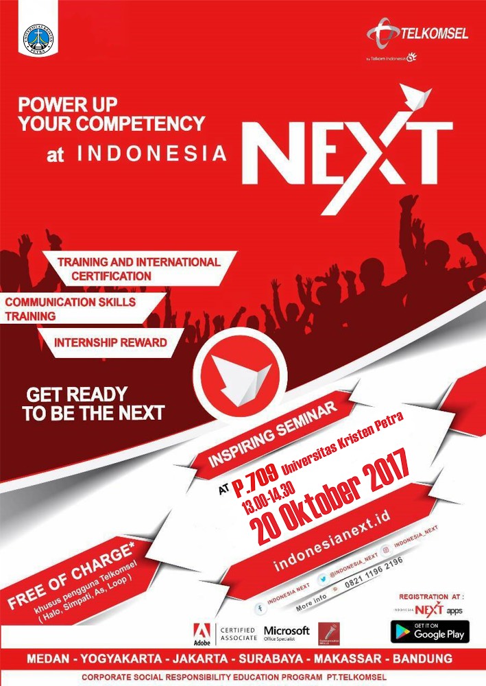 Telkomsel memberikan beasiswa bagi mahasiswa Indonesia. Dengan mengangkat tema Indonesia Next kegiatan ini diadakan di beberapa kota di Indonesia. Di UK Petra diadakan pada tanggal 20 Oktober 2017 di gedung P.709.