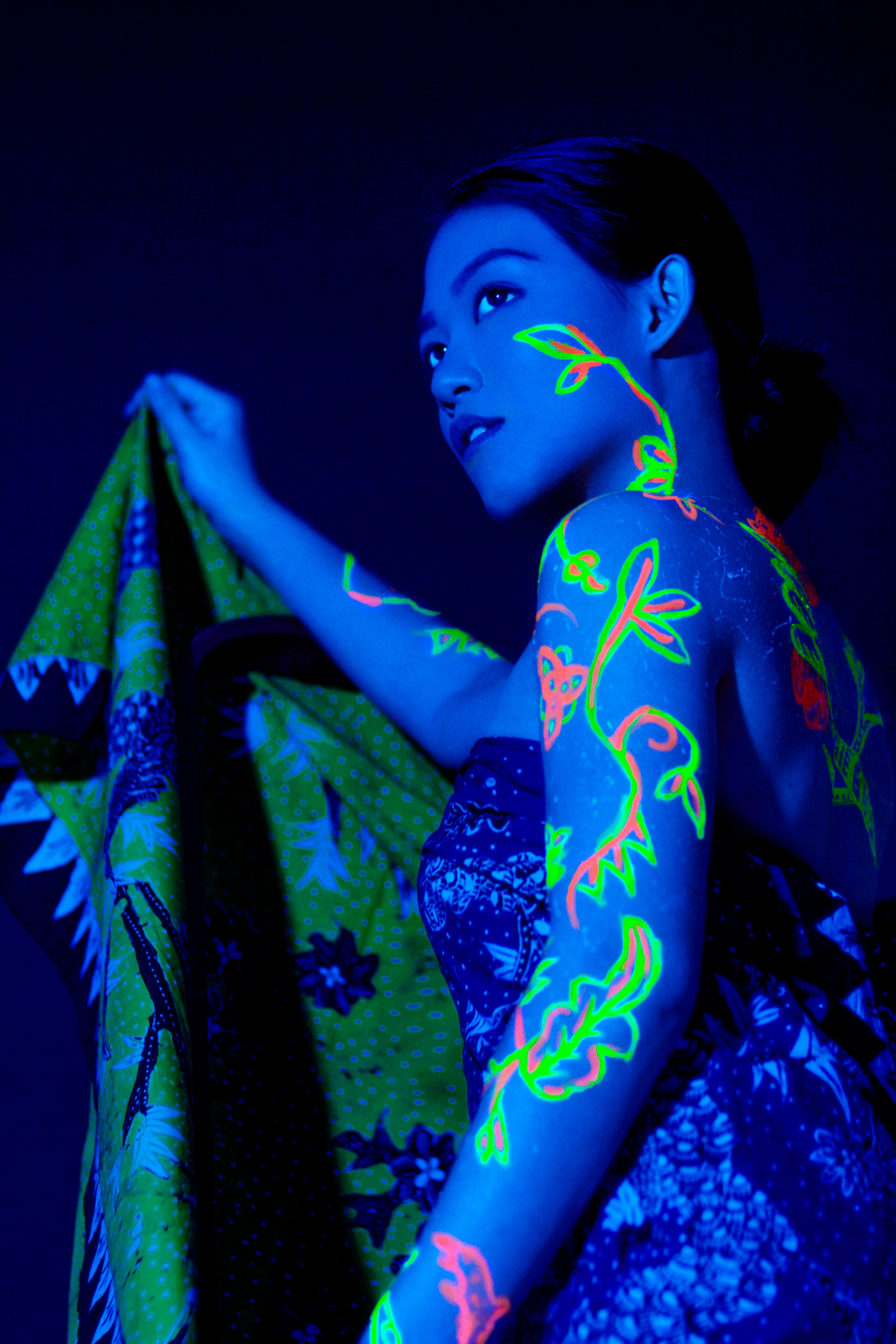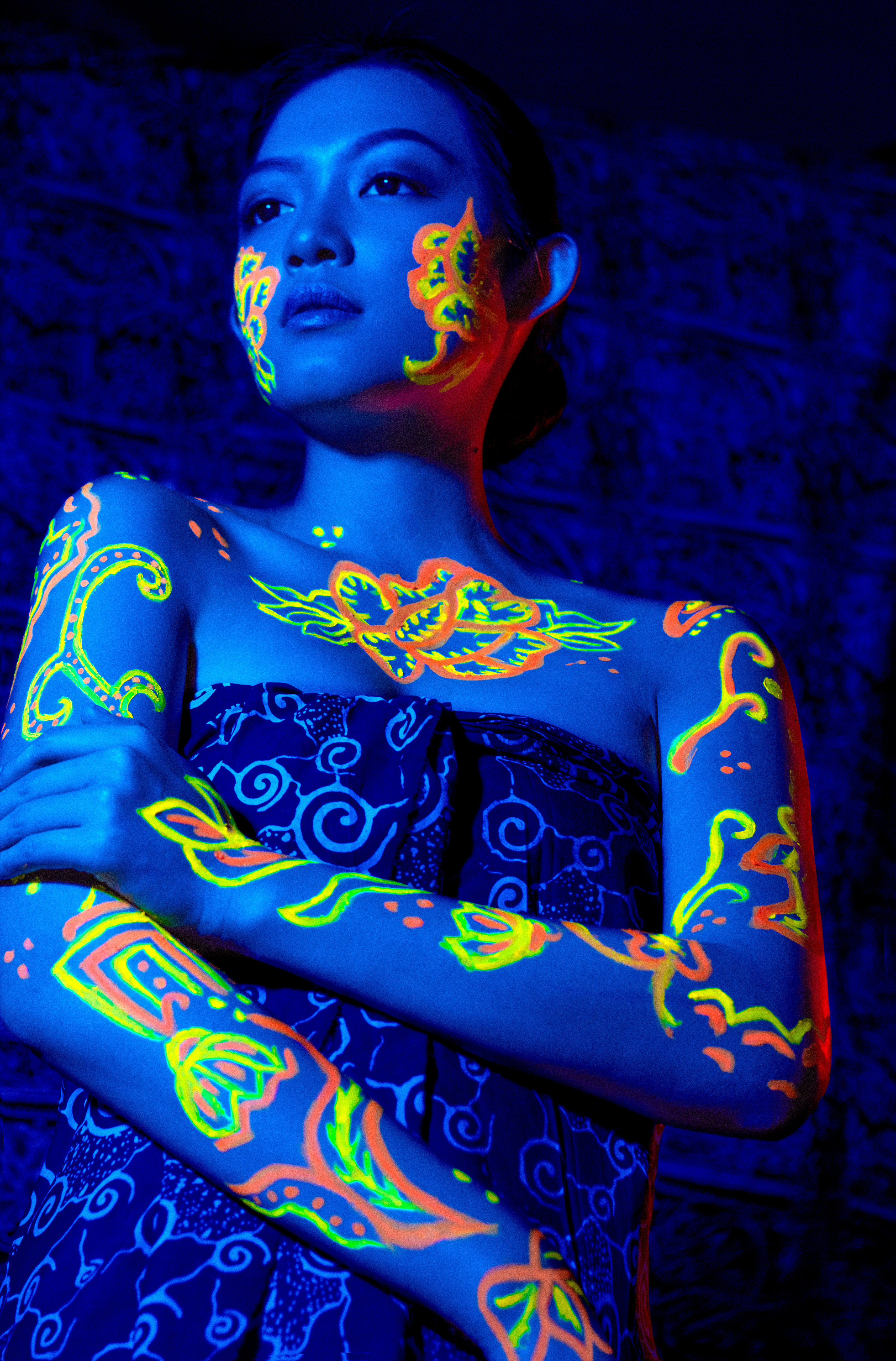 banyak dilakukan, seperti; brosur, buku, katalog, hingga liputan media cetak dan media elektronik. Pemanfaatan fotografi sebagai media untuk menyajikan informasi secara visual juga sudah berlebih, tetapi visualisasi fotografi yang menggunakan teknik bersinar dalam gelap dengan memadukan melukis wajah yang mengaplikasikan motif batik pada wajah hingga tubuh model, belum pernah dilakukan. Melalui teknik melukis wajah bersinar dalam gelap yang dikemas dengan fotografi beauty, dapat menjadi media baru yang unik dan artistik dalam mengantarkan pengetahuan tentang makna motif Batik Surabaya kepada masyarakat secara fotografis.