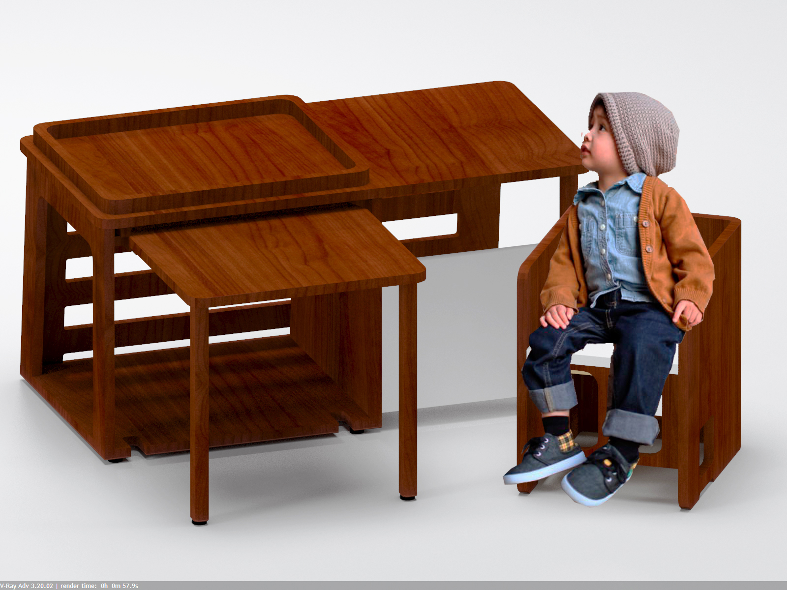 Rancangan furniture set memiliki 3 alternatif pilihan. Tiap set dirancang