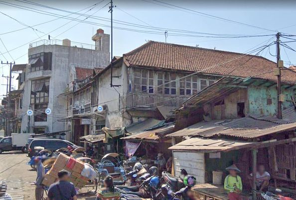 Foto perbandingan rumah lama dan situasi jalan di tahun 1920 dan tahun 2019, di daerah Kalimati atau Pabean.