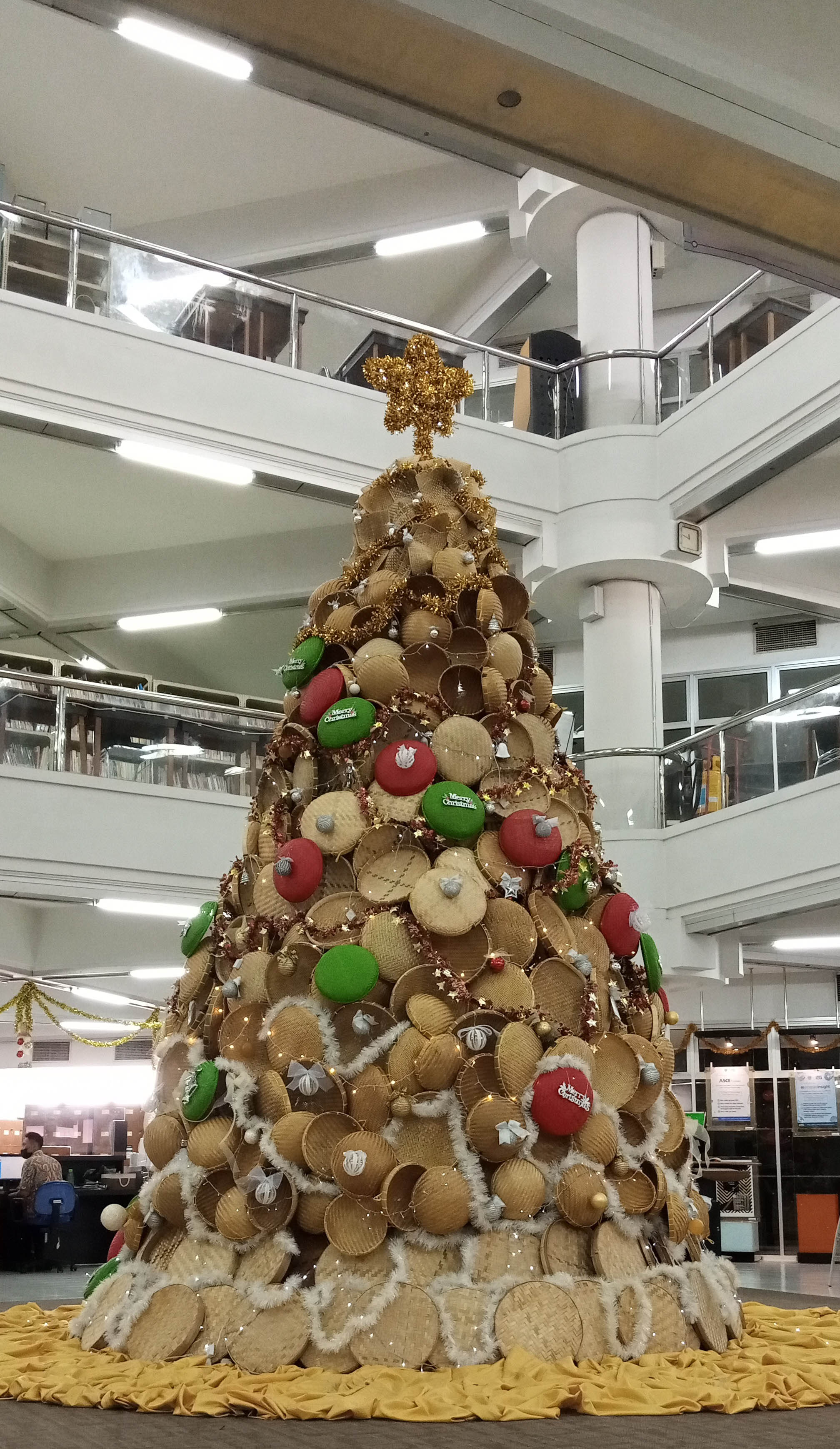 Mengusung tema Natal 2021 Universitas Kristen Petra yakni Nusantara, Perpustakaan UK Petra ikut ambil bagian dalam menyambut Natal dengan menghadirkan Pohon Natal Perkakas Bambu yang mencerminkan Nusantara karena bambu bisa tumbuh dari Aceh sampai Papua. Bambu meskipun tergolong rerumputan, namun memiliki akar yang sangat kuat. Ini mengandung filosofi yang sangat bagus, karena mengajarkan kepada kita untuk memiliki pondasi hidup yang kuat agar tidak gampang goyah menghadapi badai kehidupan, termasuk badai Covid-19. Kemudian, bambu hidupnya juga berkelompok atau tidak hanya berdiri sendiri, melainkan bergerombol dengan kelompok yang lain. Itu mengajarkan pada kita untuk hidup berdampingan dengan masyarakat sekitar supaya kita bisa saling menopang, saling tolong menolong. Filosofi bambu juga mengajarkan bahwa meskipun hanya sebuah rumput, tetapi bambu itu memiliki manfaat yang sangat bagus bagi manusia.