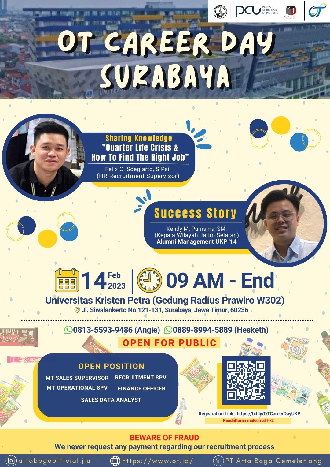 Pada tanggal 14 Februari 2023, Pusat Karir UK Petra Surabaya mengadakan acara sharing pengetahuan tentang karir. Dengan narasumber Felix C. Soegiarto, S.Psi dan Kendy M. Purnama, SM.