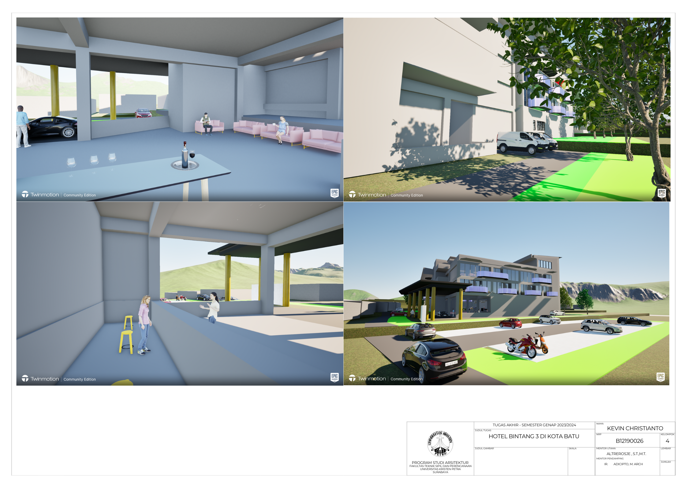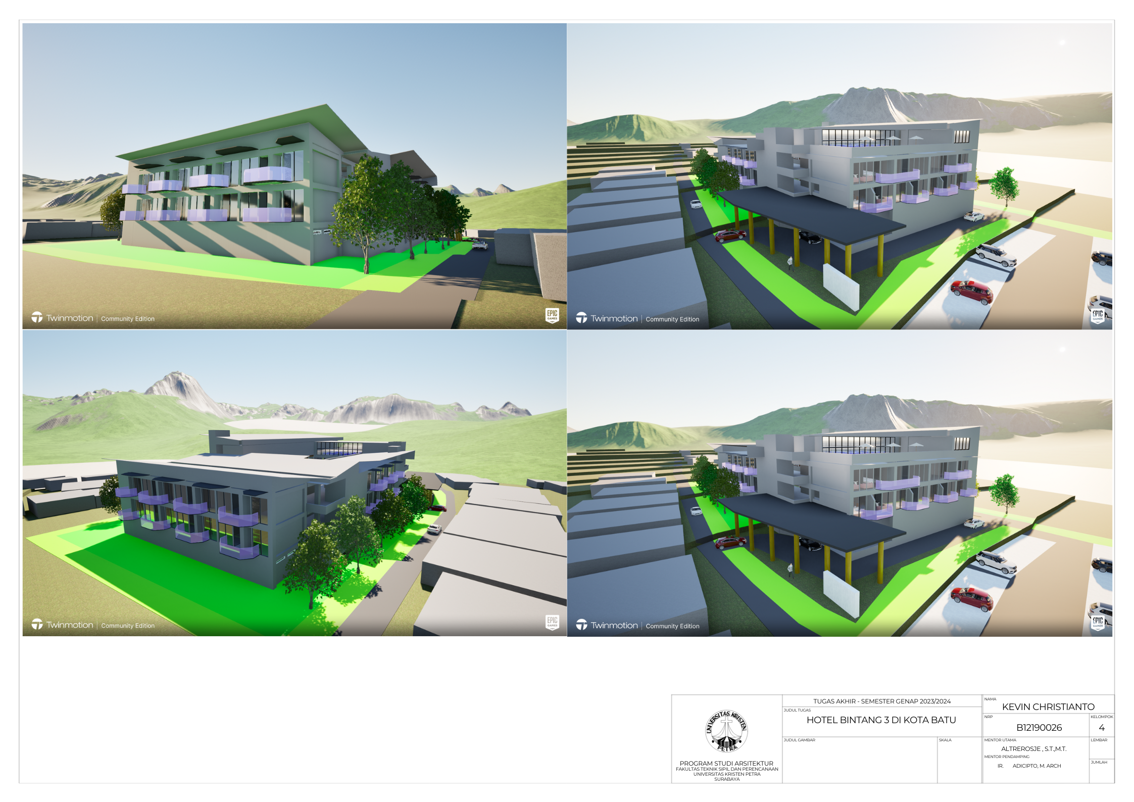 Kota Batu merupakan kota wisata yang ada di daerah pegunungnan dan karena memiliki banyaknya tempat wisata alami dan buatan . Kapasitas hotel di Kota Batu cenderung lebih sedikit daripada kapasitas tempat wisatanya, juga maraknya staycation yang membuat wisatawan staycation membutuhkan hotel untuk berlibur. Metode yang digunakan yaitu dengan merencanakan acara untuk mengisi kegiatan bagi pelaku staycation dan menyediakan ruangan indoor maupun outdoor yang diperlukan. Hasil yang diperoleh yaitu adanya ruang boardgame, ruang meeting atau ruang serbaguna, ruang outdoor di sebelah kolam renang, mini bioskop, outdoor lounge, dan ruang spa. Acara-acara yang diadakan hotel diselenggarakan di ruang serbaguna dan juga ruang outdoor. Ruang boardgame, mini bioskop, dan ruang spa merupakan fasilitas tambahan yang sebenarnya tidak wajib ada pada hotel bintang 3. Outdoor lounge dibuat sebagai fasilitas dengan memperhatikan pemandangan alam yang ada di sekitar site.