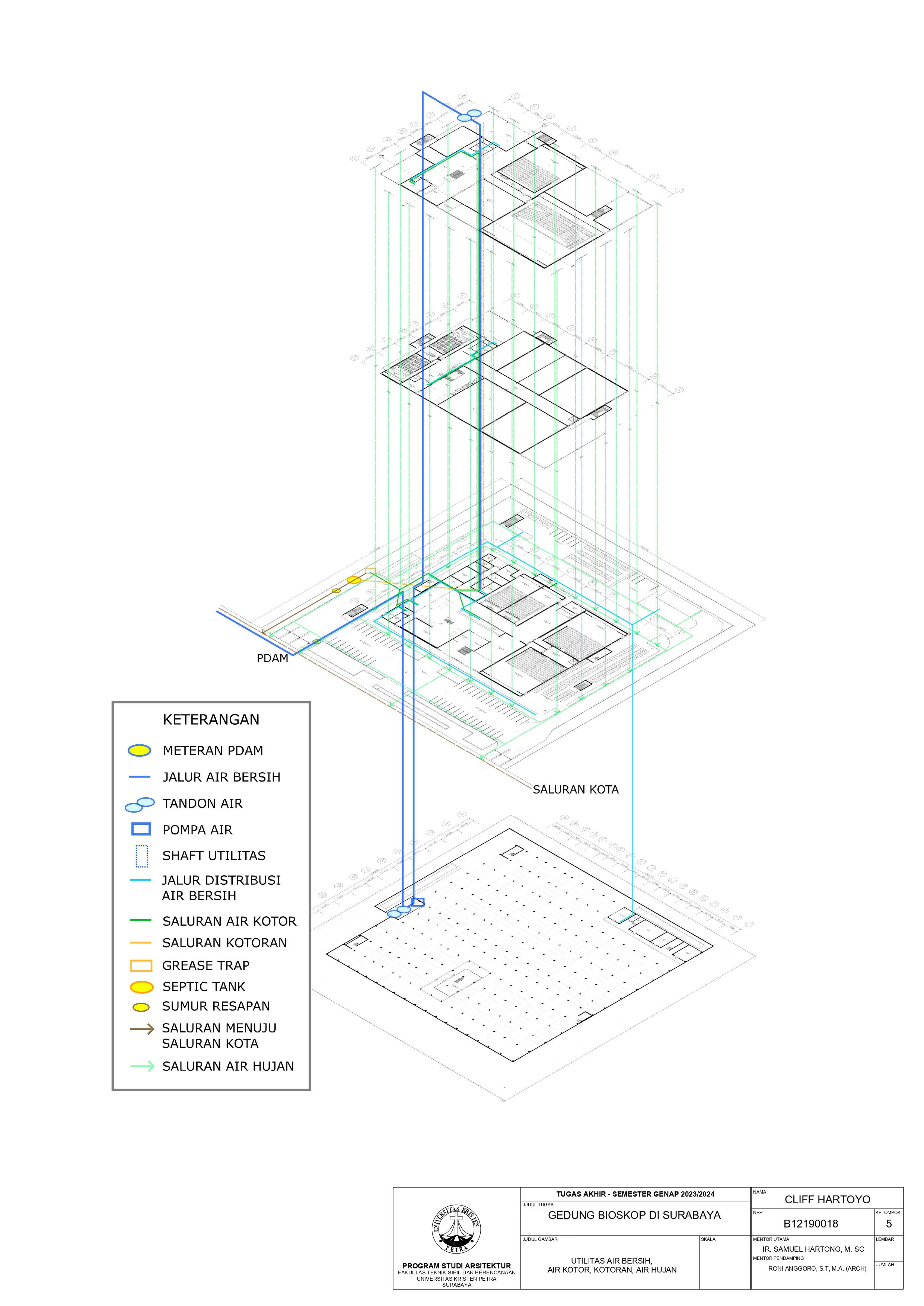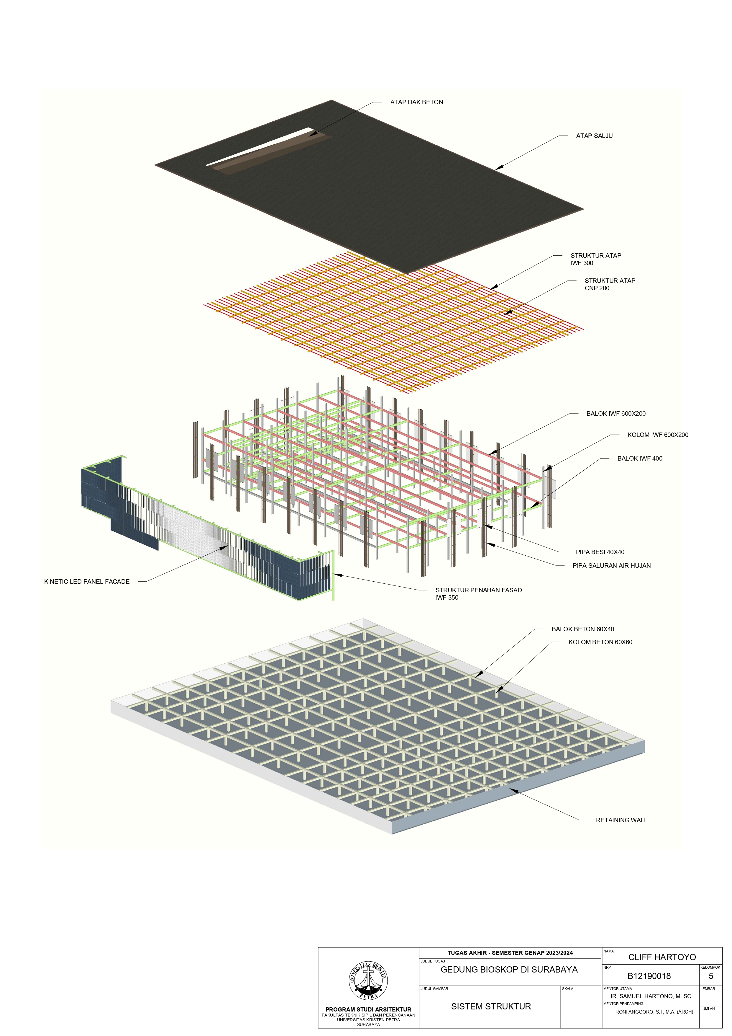 Bioskop adalah fasilitas menonton film layar lebar yang disediakan hampir di seluruh pusat perbelanjaan di Indonesia. Masyarakat Indonesia sangat suka menonton film layar lebar yang ditayangkan di bioskop. Ketika masyarakat Indonesia menonton film layar lebar di bioskop, mereka dapat menikmati keindahan dari seni film yang sudah diciptakan oleh pembuat film tersebut dengan penuh kepuasan melalui indera penglihatan dan pendengaran mereka. Kepuasan itu juga membuat penonton menikmati keindahan seni film tersebut sampai penuh perasaan yang masuk ke dalam perasaan hati dan ingatan mereka. Bioskop juga merupakan salah satu sarana masyarakat Surabaya untuk meninggalkan kesibukan dunia kerja dan studi. Penonton bisa menikmati film-film yang diputar dengan kualitas yang lebih tinggi dari pada menonton dengan televisi di rumah sendiri. Bioskop yang dirancang juga memiliki banyak sarana lainnya untuk relaksasi. Penulis ingin merancang bangunan bioskop yang lepas dari pusat perbelanjaan tapi masih bersifat rekreatif dan bangunan yang juga bisa mengisolasi pengunjung dari ruang luar bangunan dengan fasilitas-fasilitas yang memenuhi kebutuhan pengunjung untuk kabur dari kesibukan dunia kerja dan pendidikan dengan cara bangunan tidak memiliki bukaan seperti jendela untuk cahaya matahari dan angin masuk. Hasil yang diperoleh adalah bangunan bioskop yang lepas dari pusat perbelanjaan tapi bersifat rekreatif lalu bisa membantu pengunjung relaksasi dan meninggalkan kesibukan dunia kerja dan pendidikan.