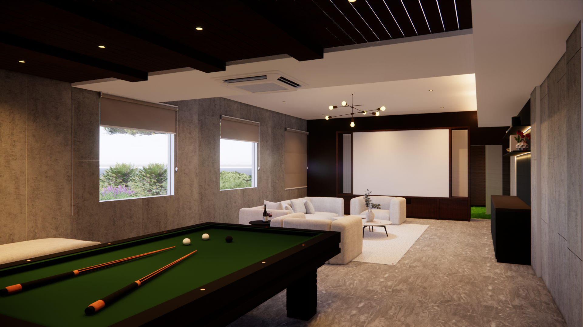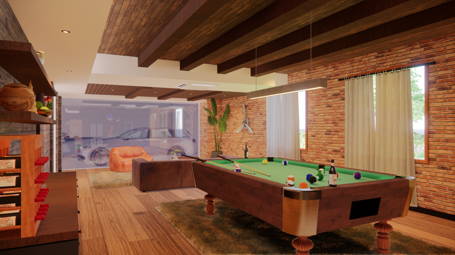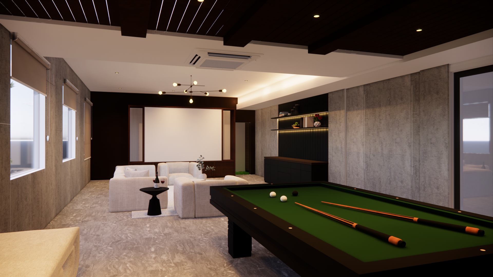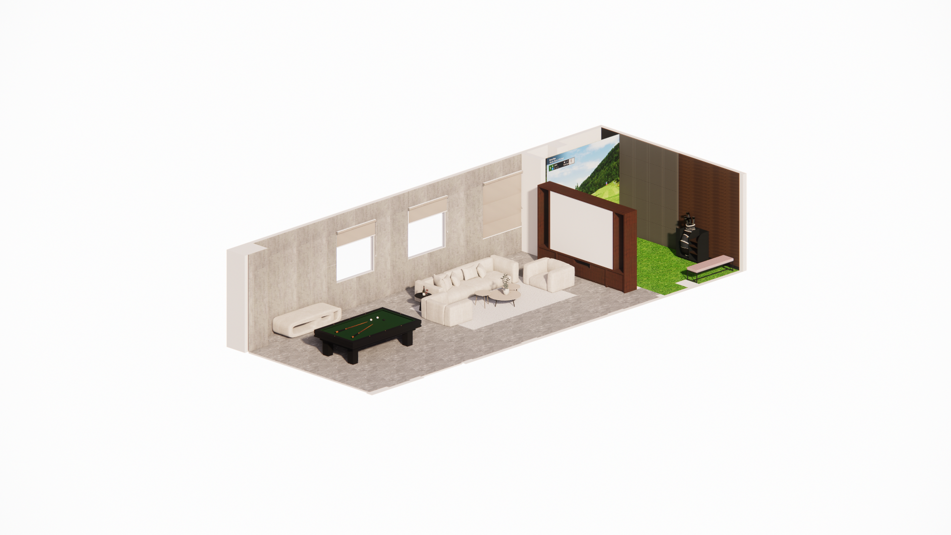 Penggunaan ruang hobi pada rumah tinggal di Indonesia masih cukup jarang. Terlebih ruang hobi merupakan kebutuhan tersier pada rumah tinggal, sehingga masyarakat di Indonesia lebih memanfaatkan ruangan untuk fungsi yang lebih bermanfaat. Sehingga hal ini menjadi sangat menarik untuk dikerjakan. Dalam menjalankan proyek ini, digunakan metode design thinking yang memiliki 5 tahapan yaitu empethize, define, ideate, prototype, dan test. Tahapan ini dilakukan untuk mengidentifikasi, merumuskan masalah, mencari solusi melalui desain, serta menguji hasil desain tersebut agar layak digunakan. Dengan metode design thinking yang dilakukan ini, didapatkan bahwa mendesain ruang hobi dan golf simulator pada rumah tinggal dapat dilakukan. Namun ada beberapa hal yang perlu diperhatikan yaitu, setiap alat simulator memiliki spesifikasi ukuran, jangkauan, dan model yang berbeda. Sehingga penting bagi desainer untuk memperhatikan hal ini. Karena akan berpengaruh pada ukuran dan model ruang yang dibutuhkan untuk memenuhi kebutuhan permainan golf.