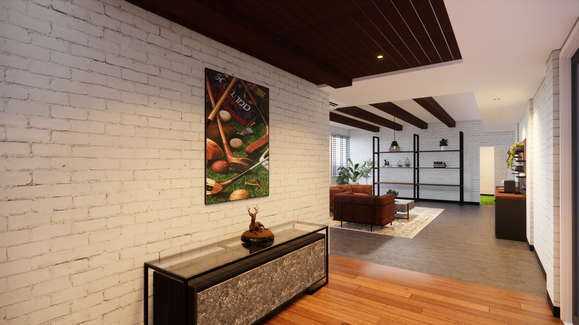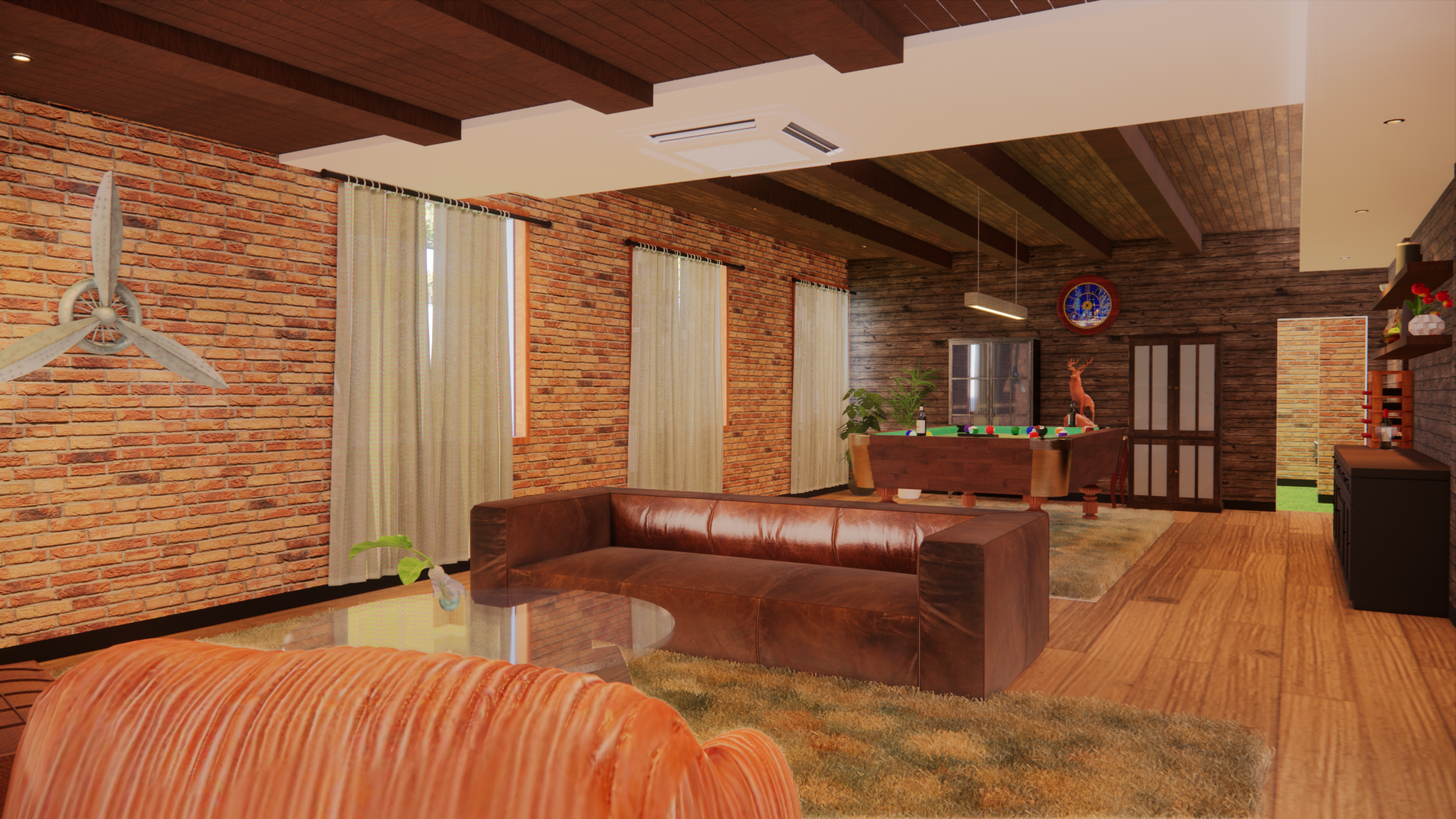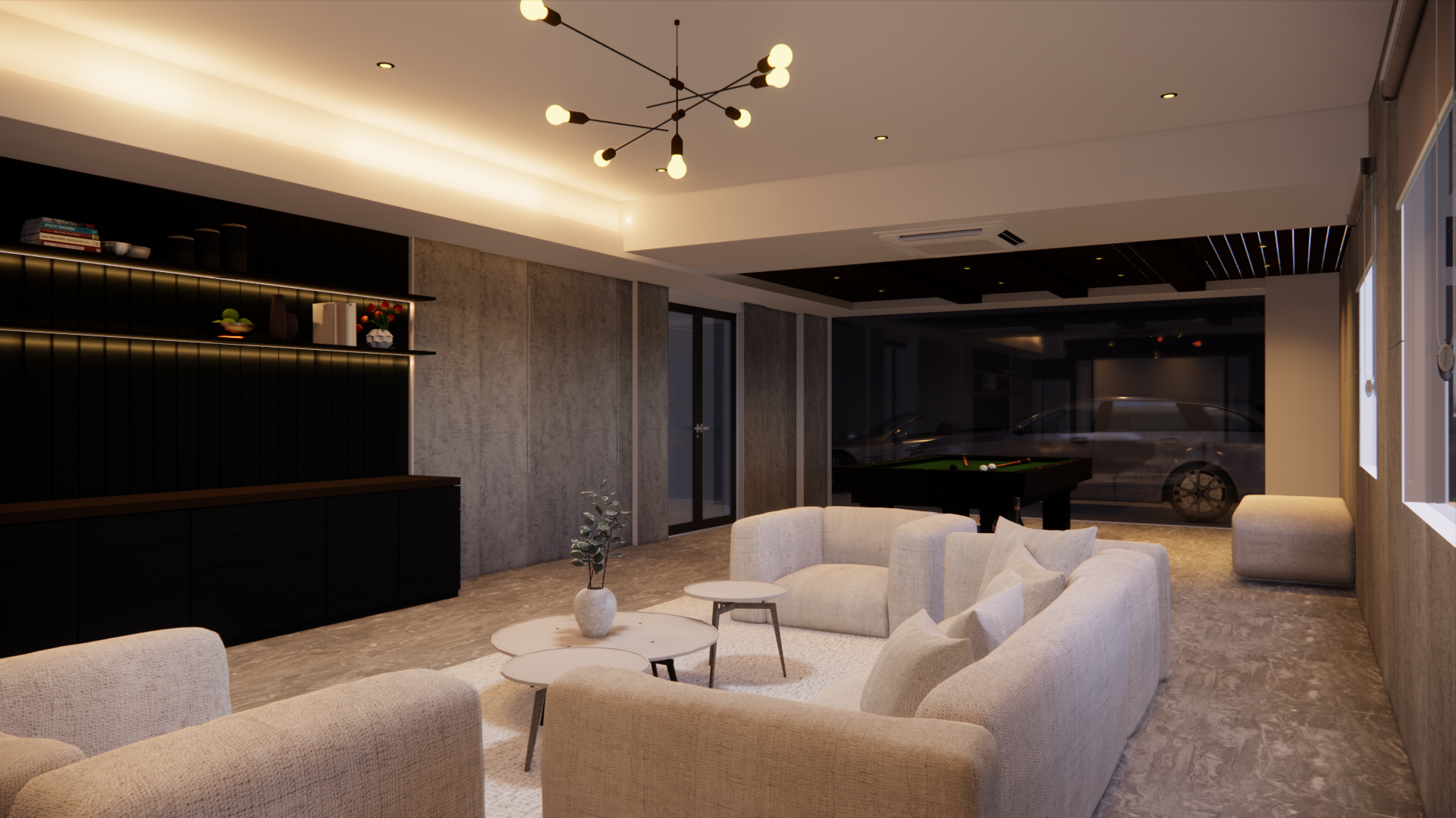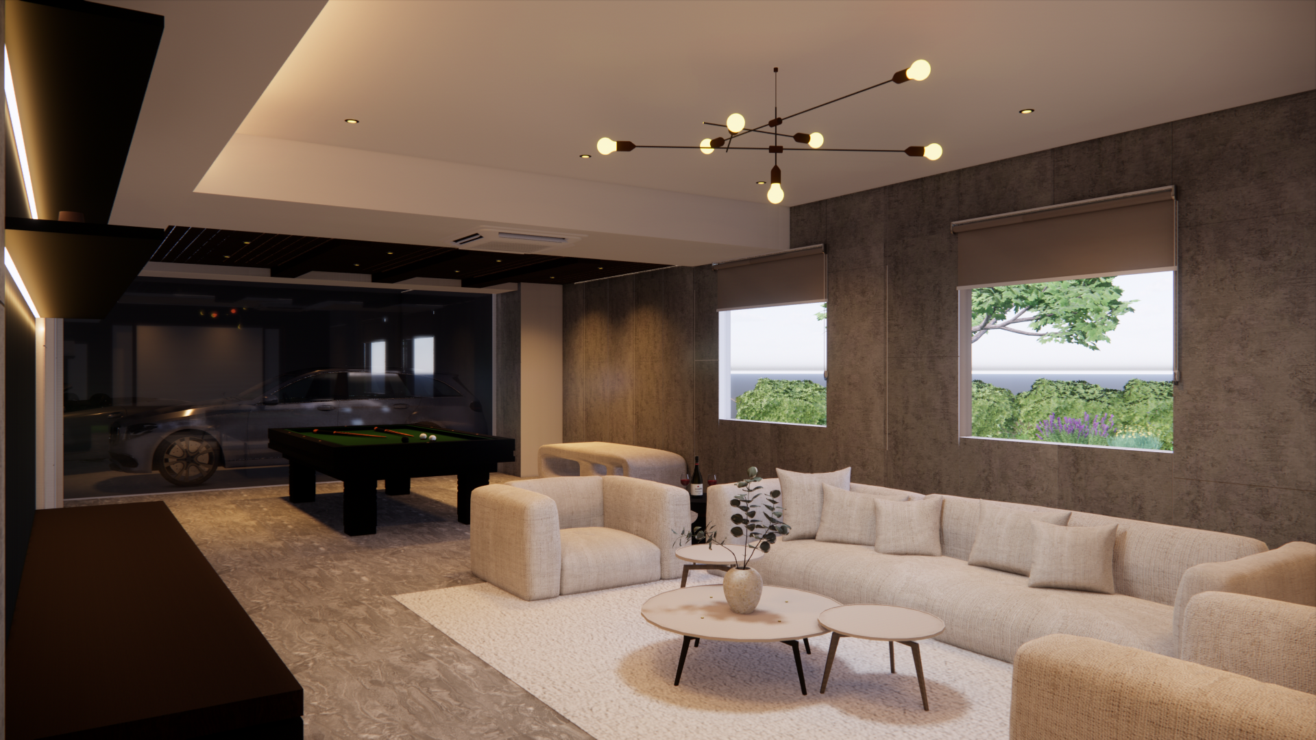 Penggunaan ruang hobi pada rumah tinggal di Indonesia masih cukup jarang. Terlebih ruang hobi merupakan kebutuhan tersier pada rumah tinggal, sehingga masyarakat di Indonesia lebih memanfaatkan ruangan untuk fungsi yang lebih bermanfaat. Sehingga hal ini menjadi sangat menarik untuk dikerjakan. Dalam menjalankan proyek ini, digunakan metode design thinking yang memiliki 5 tahapan yaitu empethize, define, ideate, prototype, dan test. Tahapan ini dilakukan untuk mengidentifikasi, merumuskan masalah, mencari solusi melalui desain, serta menguji hasil desain tersebut agar layak digunakan. Dengan metode design thinking yang dilakukan ini, didapatkan bahwa mendesain ruang hobi dan golf simulator pada rumah tinggal dapat dilakukan. Namun ada beberapa hal yang perlu diperhatikan yaitu, setiap alat simulator memiliki spesifikasi ukuran, jangkauan, dan model yang berbeda. Sehingga penting bagi desainer untuk memperhatikan hal ini. Karena akan berpengaruh pada ukuran dan model ruang yang dibutuhkan untuk memenuhi kebutuhan permainan golf.
