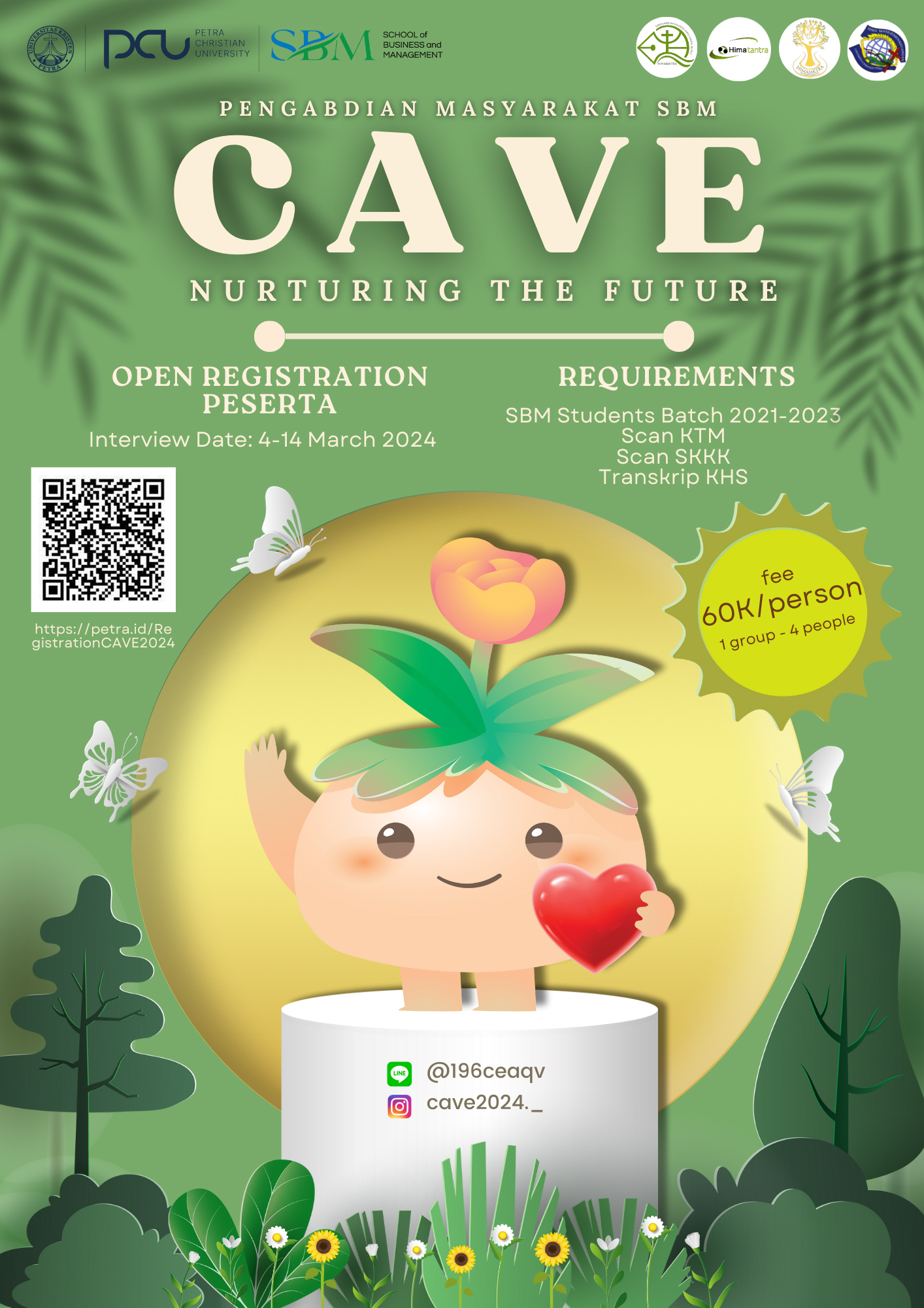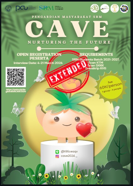 School of Business and Management Universitas Kristen Petra Surabaya membuka pendaftaran untuk turut serta dalam pengabdian masyarakat SBM. Informasi lebih lengkap bisa dilihat di petra.id/RegistrationCAVE2024