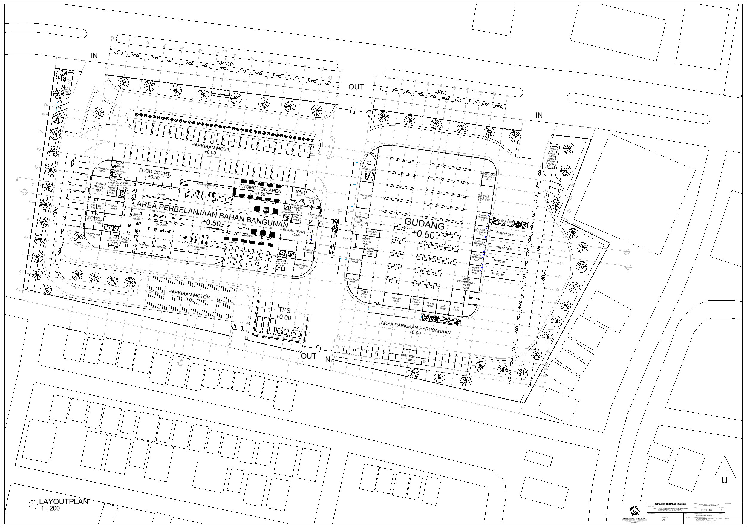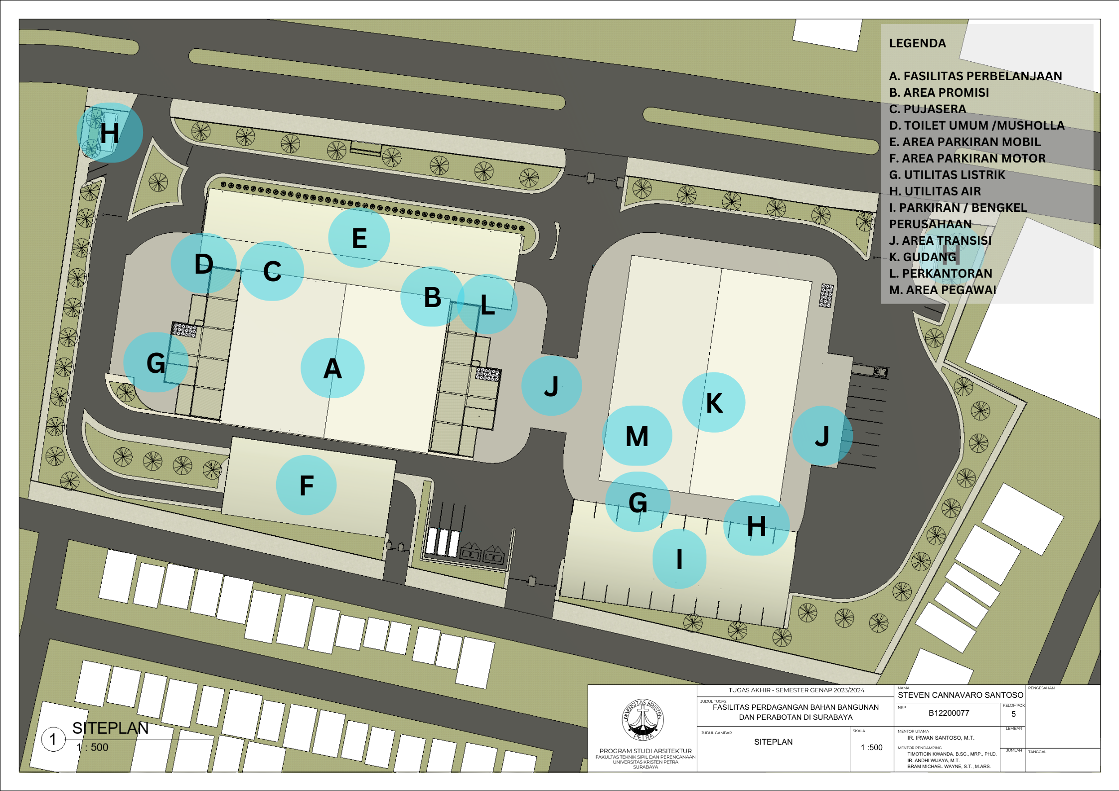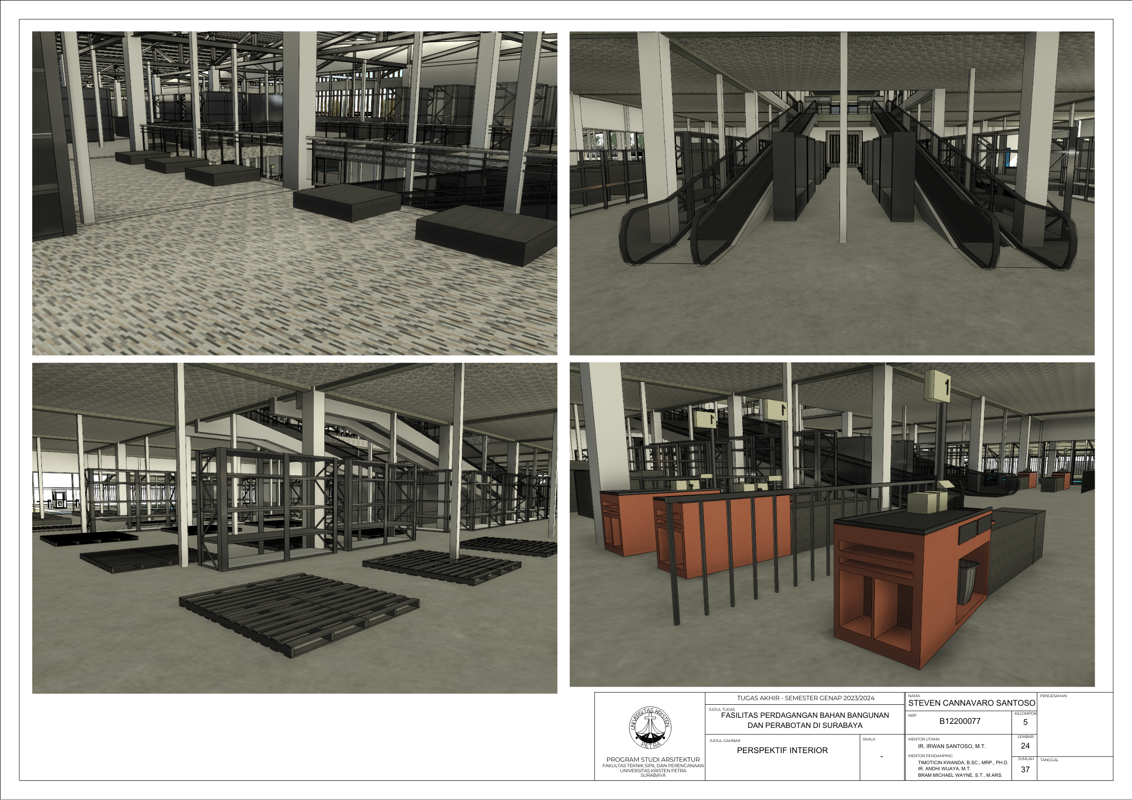 Kecamatan Sambikerep merupakan bagian dari kota Surabaya yang berfokus pengembangan pada bidang pembangunan perumahan dan hal ini dapat dilihat dari banyaknya perumahan. Kecamtan Sambikerep yang berukuran 20,43 km² dengan jumlah penduduk sekitar 60.375 orang dan kepadatan penduduk setiap km² 2.957 orang. Pembangunan perumahan seperti Citraland, Alam Galaxy, Graha Natura, dan Pakuwon Indah. Ini merupakan beberapa perumahan di Kecamatan Sambikerep. Pengembangan ini merupakan rencana pembangunan yang difokuskan untuk perumahan dan komersial. Fasilitas perdagangan bahan bangunan dan perabotan bertujuan memfasilitasi dalam memenuhi kebutuhan dalam pembangunan baik interior dan eksterior. Fasilitas perdagangan juga ini berfungsi untuk mendukung kebutuhan pertumbuhan penduduk dalam bidang pembangunan dan diharapkan bangunan ini dapat berperan dalam rencana pembangunan di Sambikerep ke depan dalam konstruksi perumahan dan komersiil. Lokasi pembangunan berada di pembangunan jalan baru bernama Jalan Radial yang dibuat untuk mengurangi kemacetan yang ada di jalan lontar yang sudah direncanakan oleh Pemerintah Kota Surabaya dan dalam masa pembangunan yaitu dari Citraland ke Pakuwon. Masalah utama desain bagaimana cara bangunan mempertahankan kualitas barang tetap bagus. Dengan data di atas diharapkan dapat mendukung dalam menyelesaikan masalah tersebut menggunakan pendekatan perancangan sirkulasi dan perancangan fungsional. Dari kedua pendekatan yang ditentukan ini dapat mendukung dalam mendesain bangunan dan memberikan pengaruh positif terhadap pembangunan kedepannya dalam perumahan dan industri di kecamatan Sambiekerep.