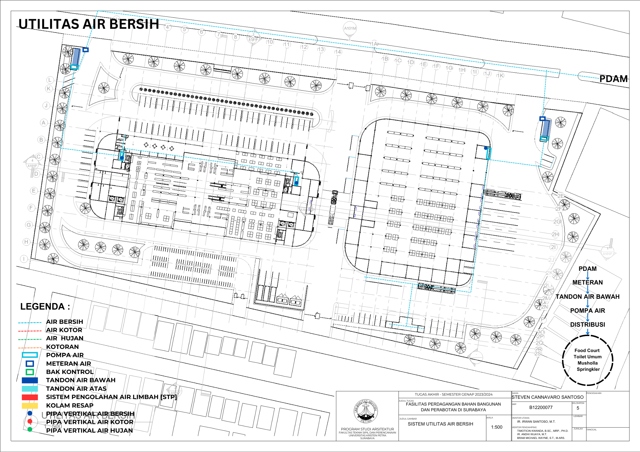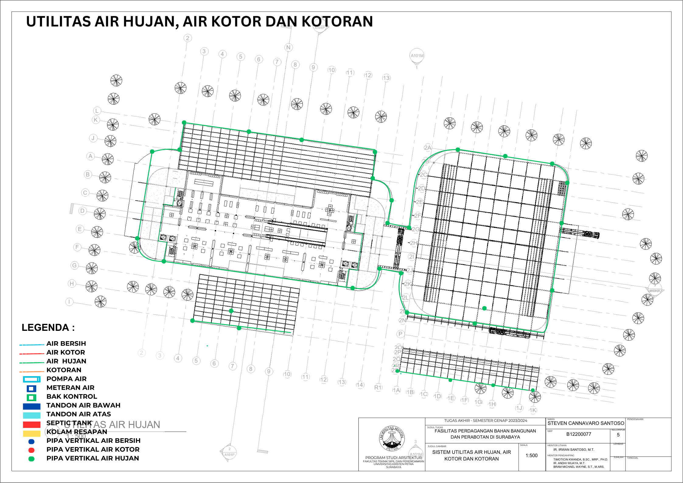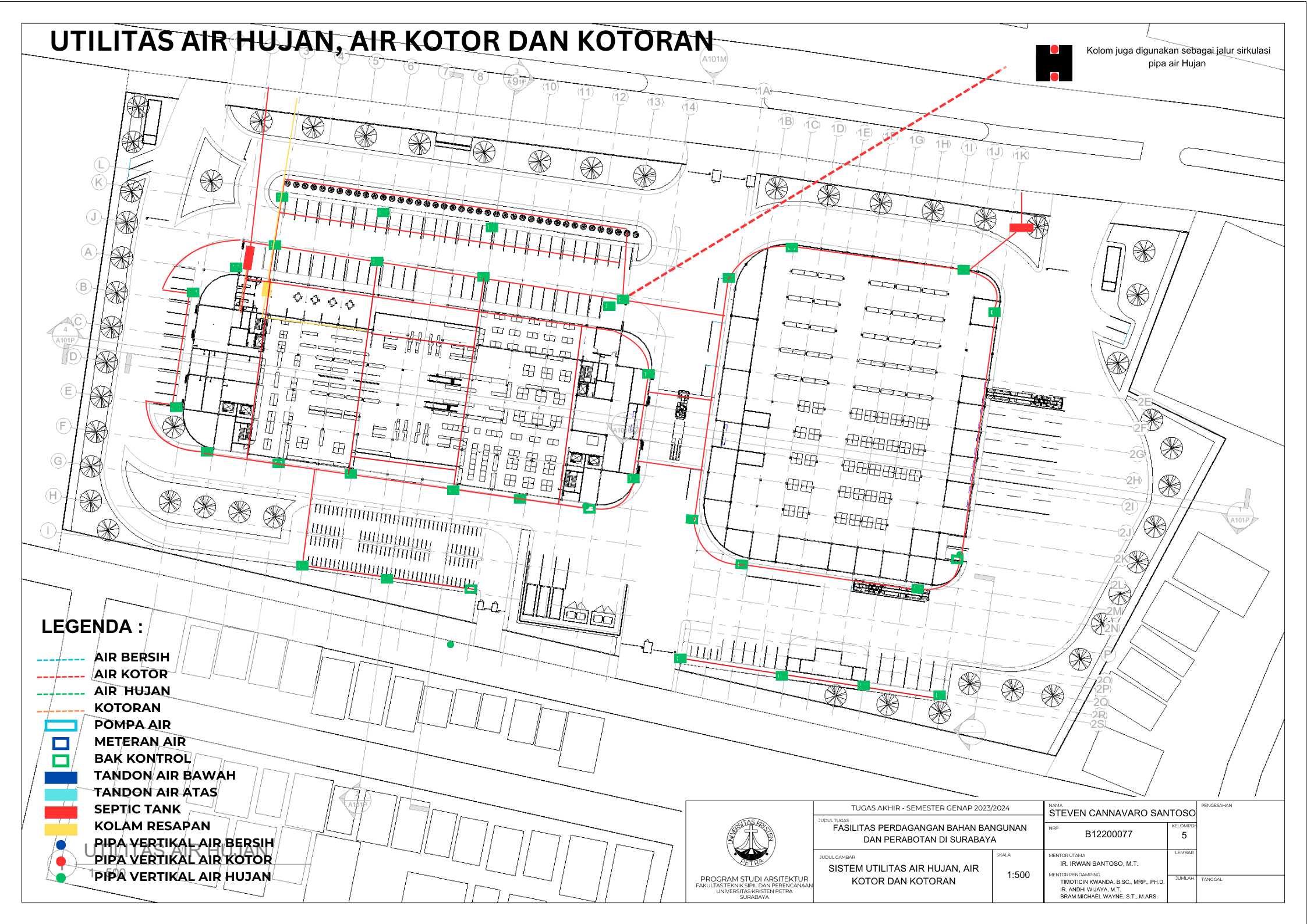 Kecamatan Sambikerep merupakan bagian dari kota Surabaya yang berfokus pengembangan pada bidang pembangunan perumahan dan hal ini dapat dilihat dari banyaknya perumahan. Kecamtan Sambikerep yang berukuran 20,43 km² dengan jumlah penduduk sekitar 60.375 orang dan kepadatan penduduk setiap km² 2.957 orang. Pembangunan perumahan seperti Citraland, Alam Galaxy, Graha Natura, dan Pakuwon Indah. Ini merupakan beberapa perumahan di Kecamatan Sambikerep. Pengembangan ini merupakan rencana pembangunan yang difokuskan untuk perumahan dan komersial. Fasilitas perdagangan bahan bangunan dan perabotan bertujuan memfasilitasi dalam memenuhi kebutuhan dalam pembangunan baik interior dan eksterior. Fasilitas perdagangan juga ini berfungsi untuk mendukung kebutuhan pertumbuhan penduduk dalam bidang pembangunan dan diharapkan bangunan ini dapat berperan dalam rencana pembangunan di Sambikerep ke depan dalam konstruksi perumahan dan komersiil. Lokasi pembangunan berada di pembangunan jalan baru bernama Jalan Radial yang dibuat untuk mengurangi kemacetan yang ada di jalan lontar yang sudah direncanakan oleh Pemerintah Kota Surabaya dan dalam masa pembangunan yaitu dari Citraland ke Pakuwon. Masalah utama desain bagaimana cara bangunan mempertahankan kualitas barang tetap bagus. Dengan data di atas diharapkan dapat mendukung dalam menyelesaikan masalah tersebut menggunakan pendekatan perancangan sirkulasi dan perancangan fungsional. Dari kedua pendekatan yang ditentukan ini dapat mendukung dalam mendesain bangunan dan memberikan pengaruh positif terhadap pembangunan kedepannya dalam perumahan dan industri di kecamatan Sambiekerep.