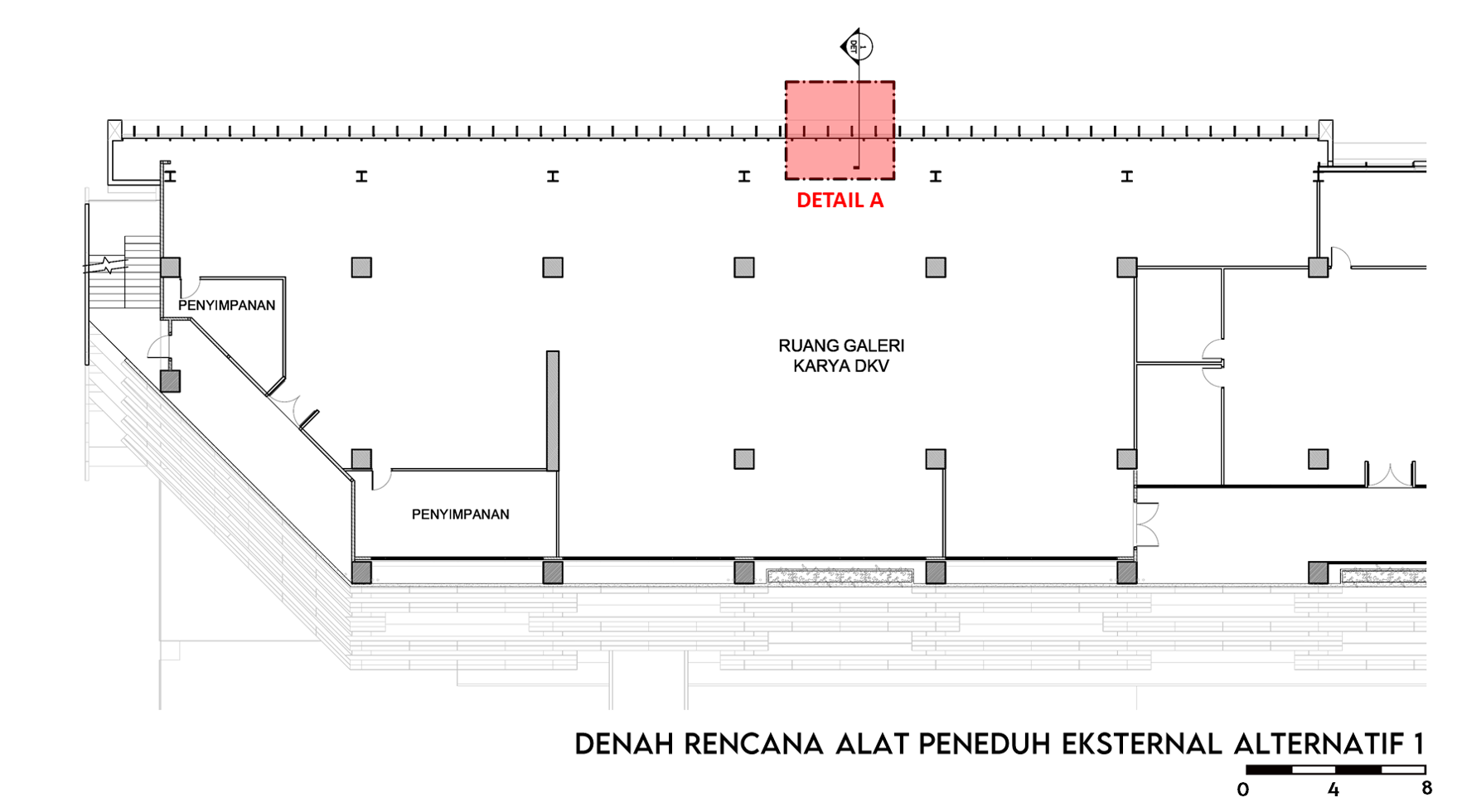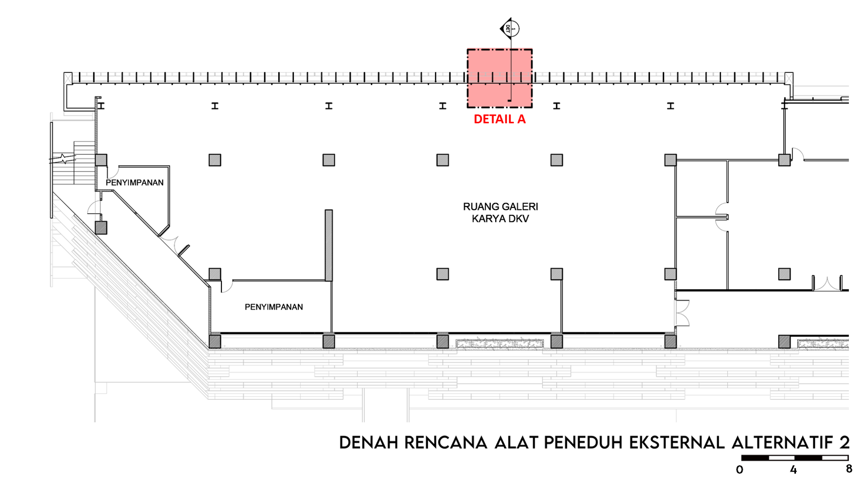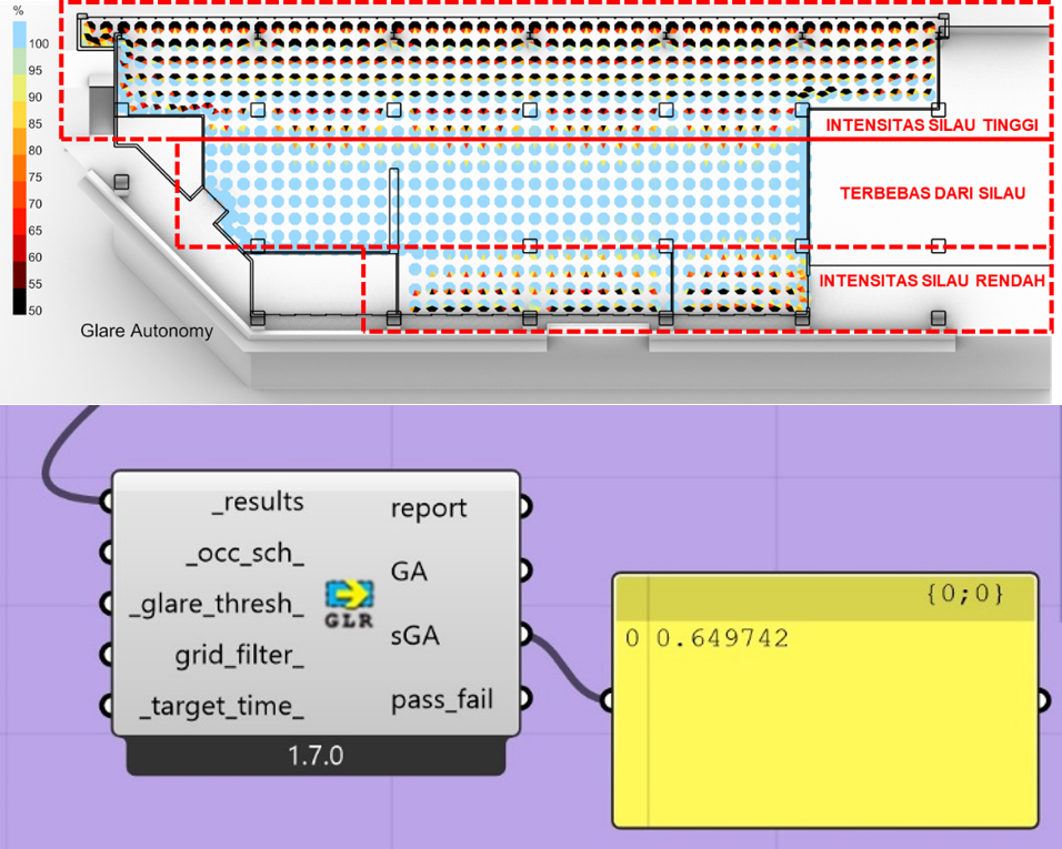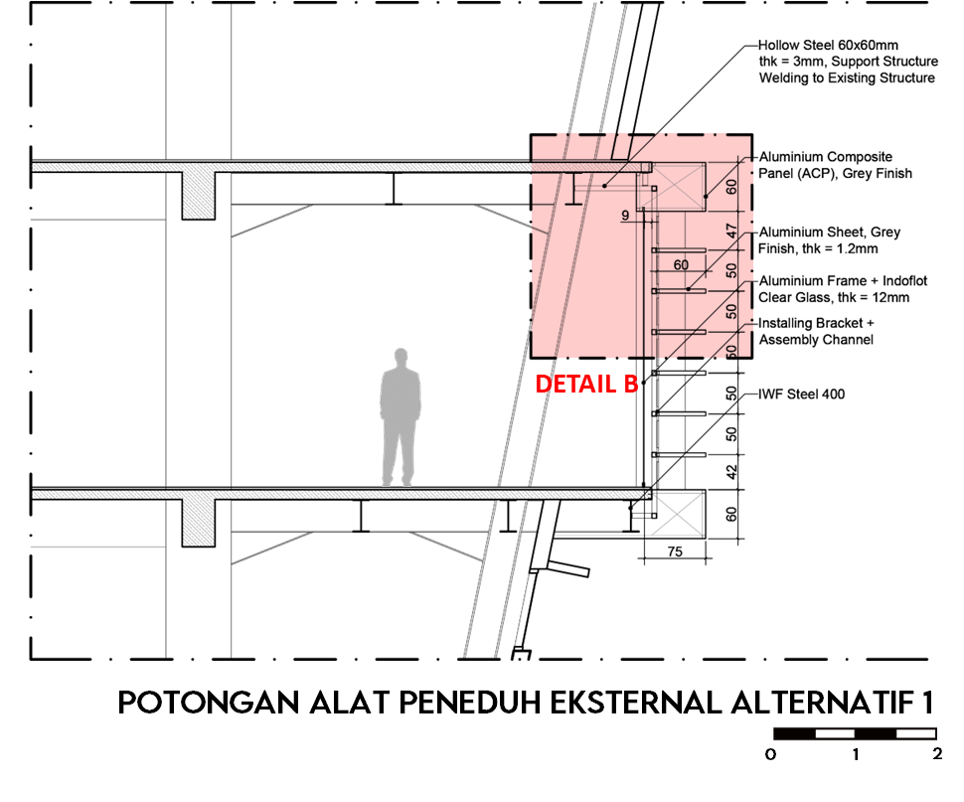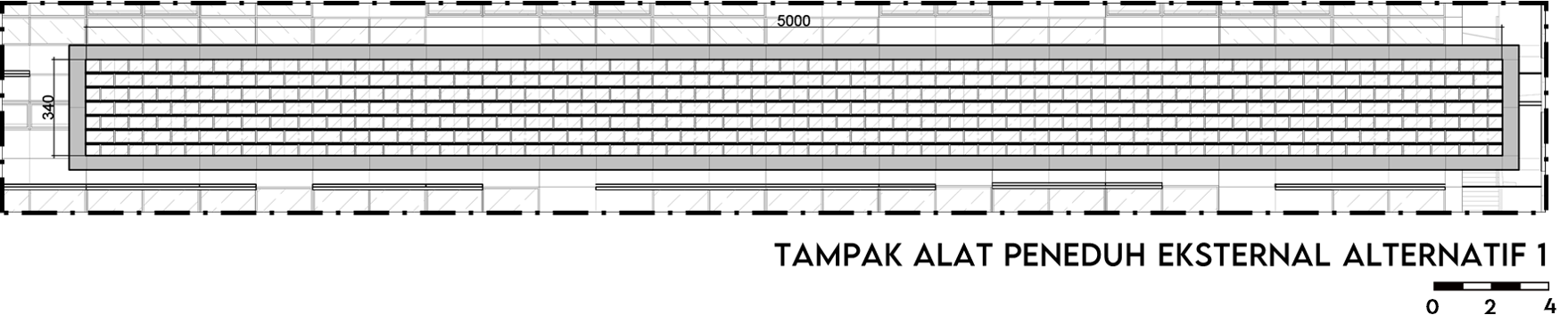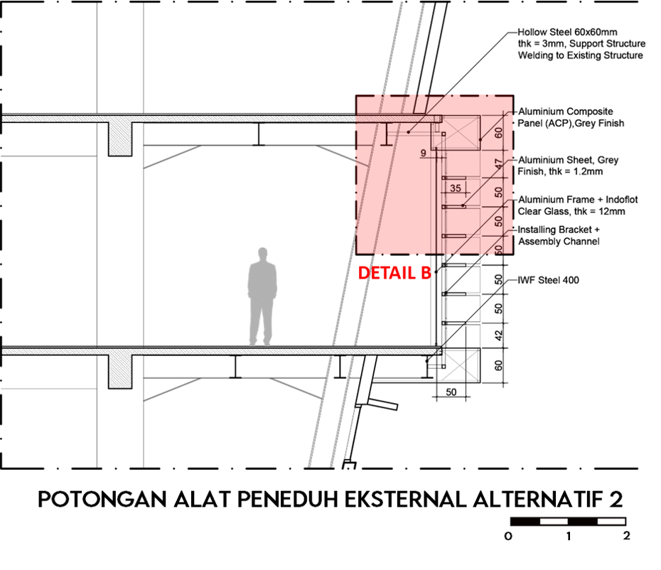 Pemanasan global dan emisi gas rumah kaca (GRK) semakin meningkat, salah satunya dipicu oleh bangunan dengan material kaca pada selubungnya. Walaupun kaca meningkatkan kenyamanan visual, tetapi juga dapat meningkatkan perolehan panas yang menyebabkan kebutuhan energi pendingin semakin tinggi. Standar Nasional Indonesia (SNI) 6389:2020 menawarkan strategi konservasi energi pada selubung bangunan, termasuk strategi penggunaan alat peneduh eksternal untuk mengurangi Overall Thermal Transfer Value (OTTV). Tetapi, di sisi lain strategi penggunaan alat peneduh eksternal dapat mengurangi intensitas pencahayaan alami, sehingga menambah kebutuhan energi untuk pencahayaan buatan. Oleh karena itu dibutuhkan optimalisasi terhadap OTTV dan pencahayaan alami agar dapat mengurangi penggunaan energi serta mencapai kenyamanan termal dan visual yang baik. Tujuan dari penelitian untuk mengevaluasi tipe dan konfigurasi alat peneduh yang dapat mengoptimalisasi OTTV dan kinerja pencahayaan alami, mengidentifikasi seberapa besar pengaruh variabel OTTV dan kinerja pencahayaan alami, serta menciptakan desain alat peneduh yang dapat mengoptimalisasi OTTV dan kinerja pencahayaan alami. Metode yang digunakan yaitu kuantitatif dengan eksperimen menggunakan program simulasi Ecotect untuk mendapatkan nilai shading coefficient efektif (SCeff) dan Ladybug Tools untuk menganalisis kinerja dari pencahayaan alami. Hasil penelitian menunjukkan bahwa alat peneduh eksternal tipe kombinasi (eggcrate) mampu menurunkan OTTV hingga mencapai batas maksimal yaitu sebesar 16% dengan menjaga intensitas pencahayaan alami (sDA) agar tetap dalam ambang batas yaitu 61.8%, serta terbebas dari silau (sGA) sebesar 94.9%. Terdapat korelasi antara OTTV dan kinerja pencahayaan alami, peningkatan OTTV berbanding lurus dengan intensitas pencahayaan alami dan silau. Korelasi tertinggi ditemukan pada tipe vertikal, diikuti oleh horizontal, dan terendah pada kombinasi. Ada dua alternatif desain yang keduanya mempunyai kinerja yang baik dan mempunyai perbedaan yang tidak terlalu signifikan. Alternatif satu menghasilkan intensitas silau yang lebih rendah namun OTTV sedikit lebih tinggi, sementara alternatif dua memberikan OTTV yang lebih rendah dan intensitas pencahayaan alami yang lebih baik.
