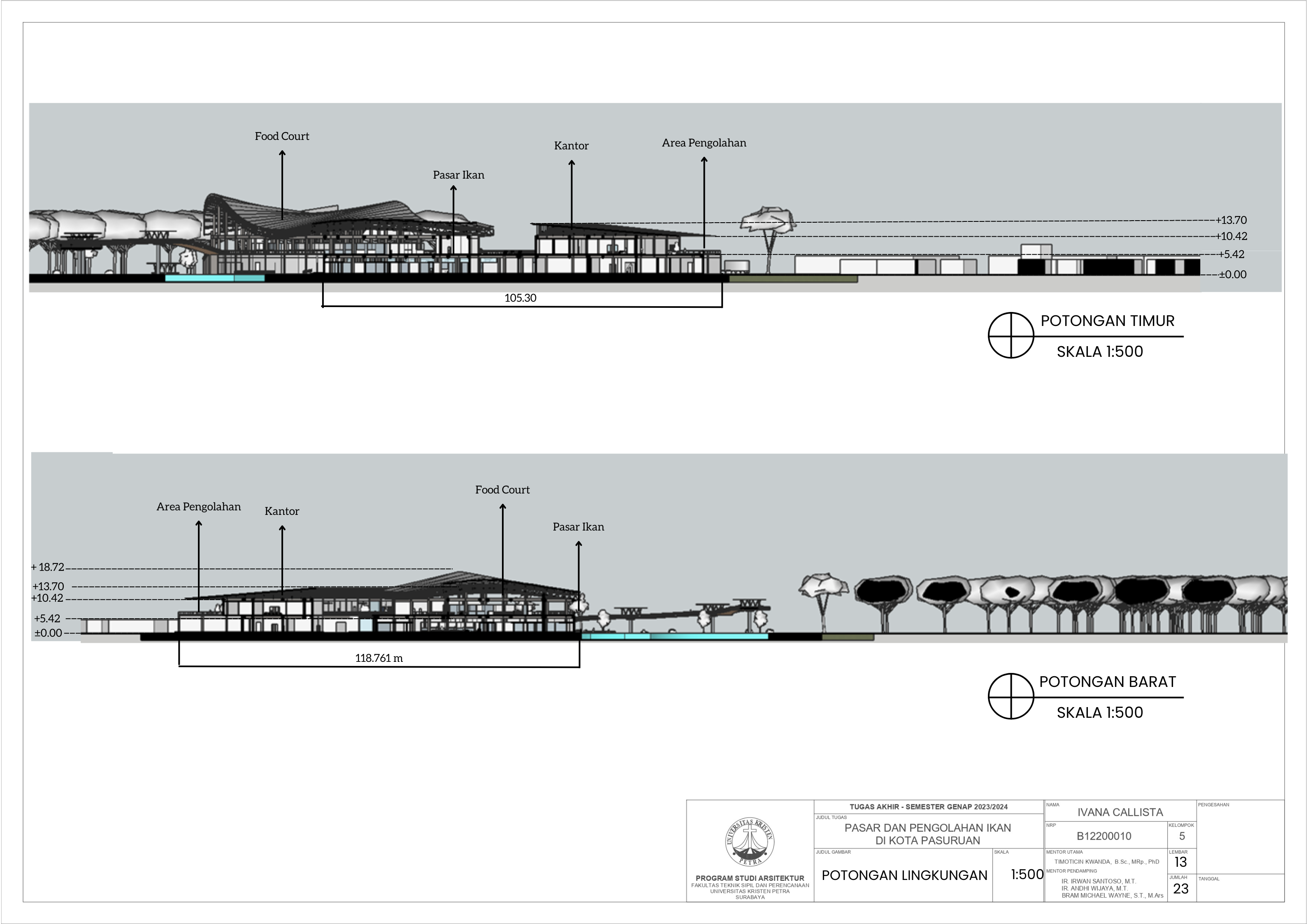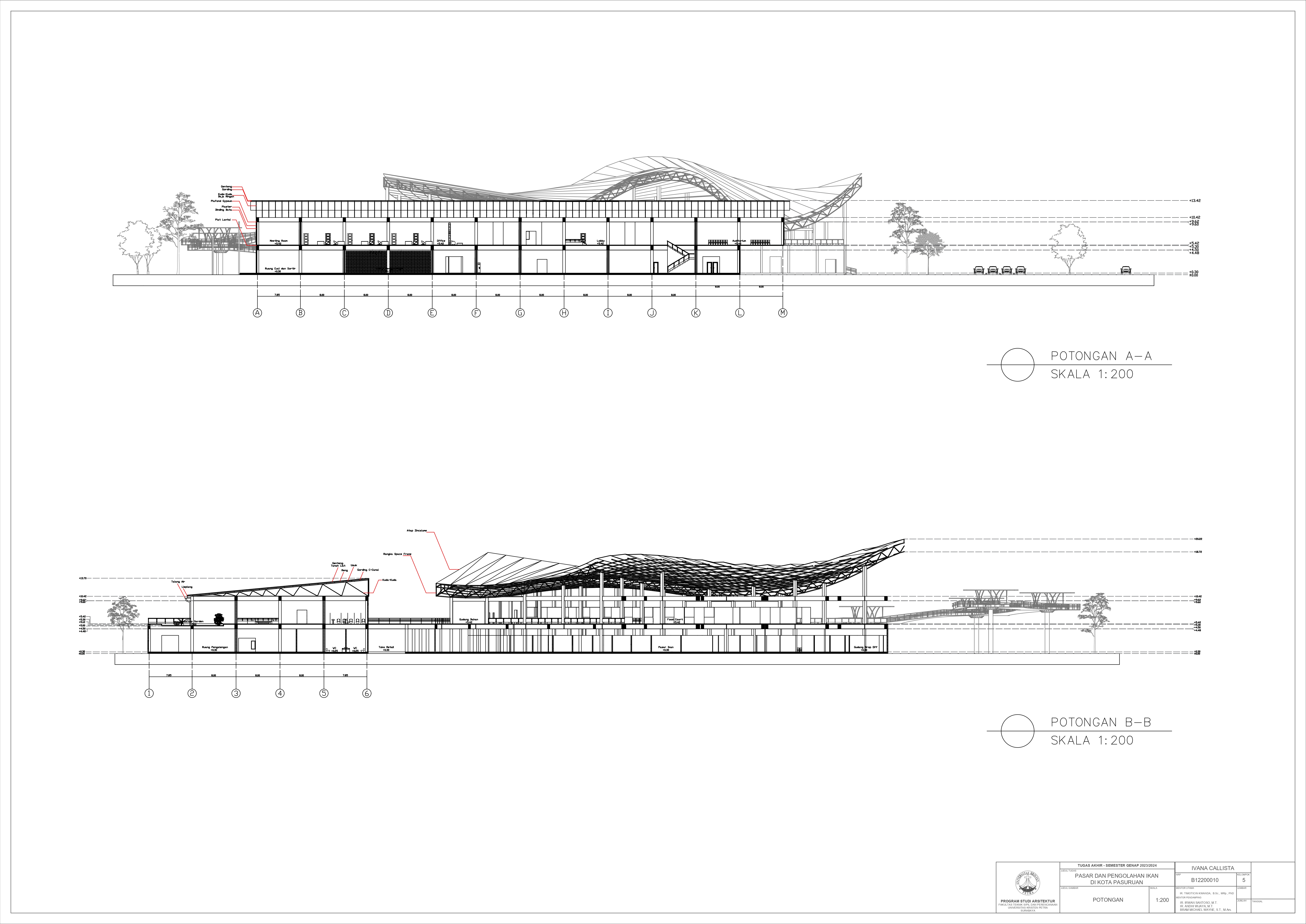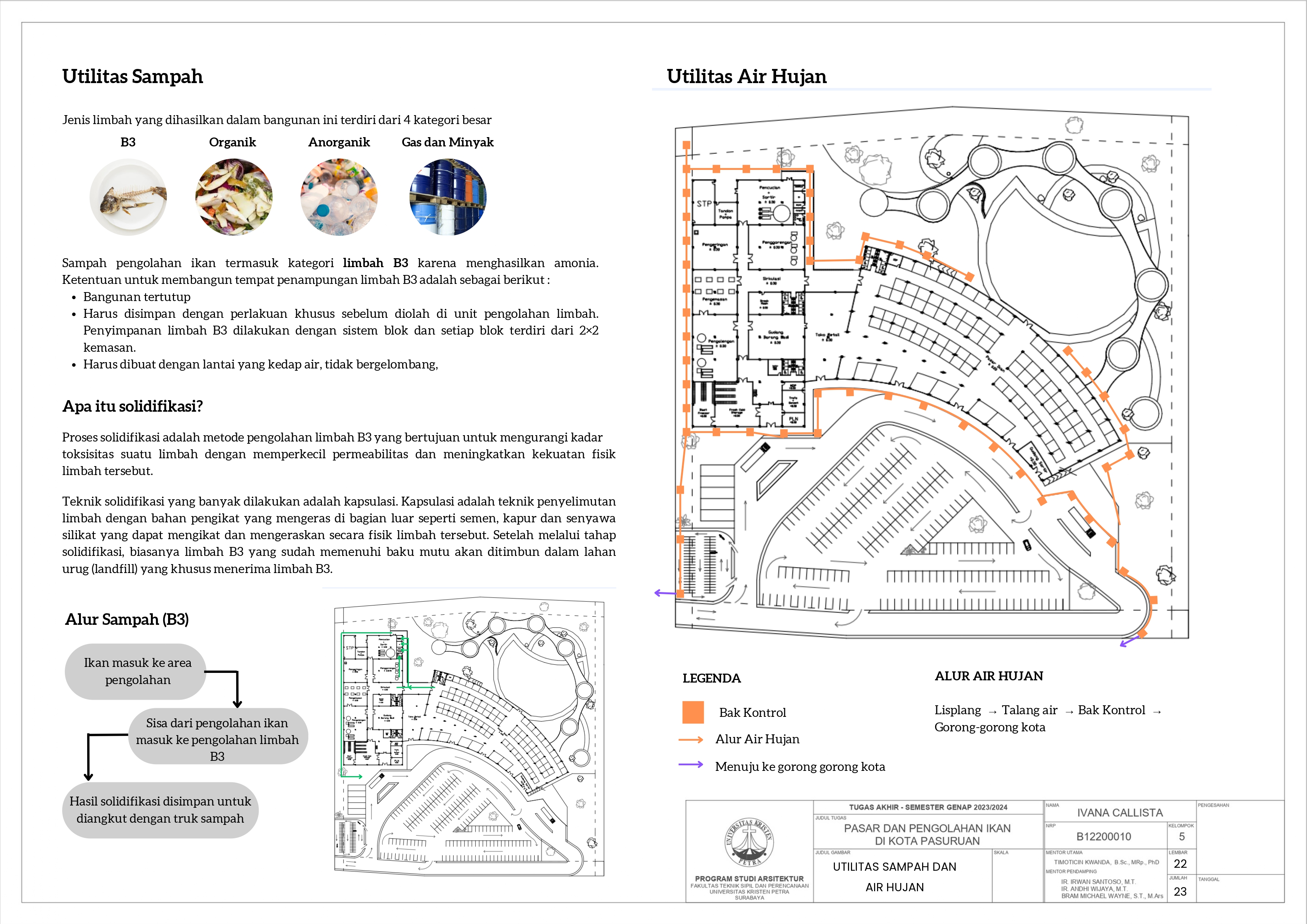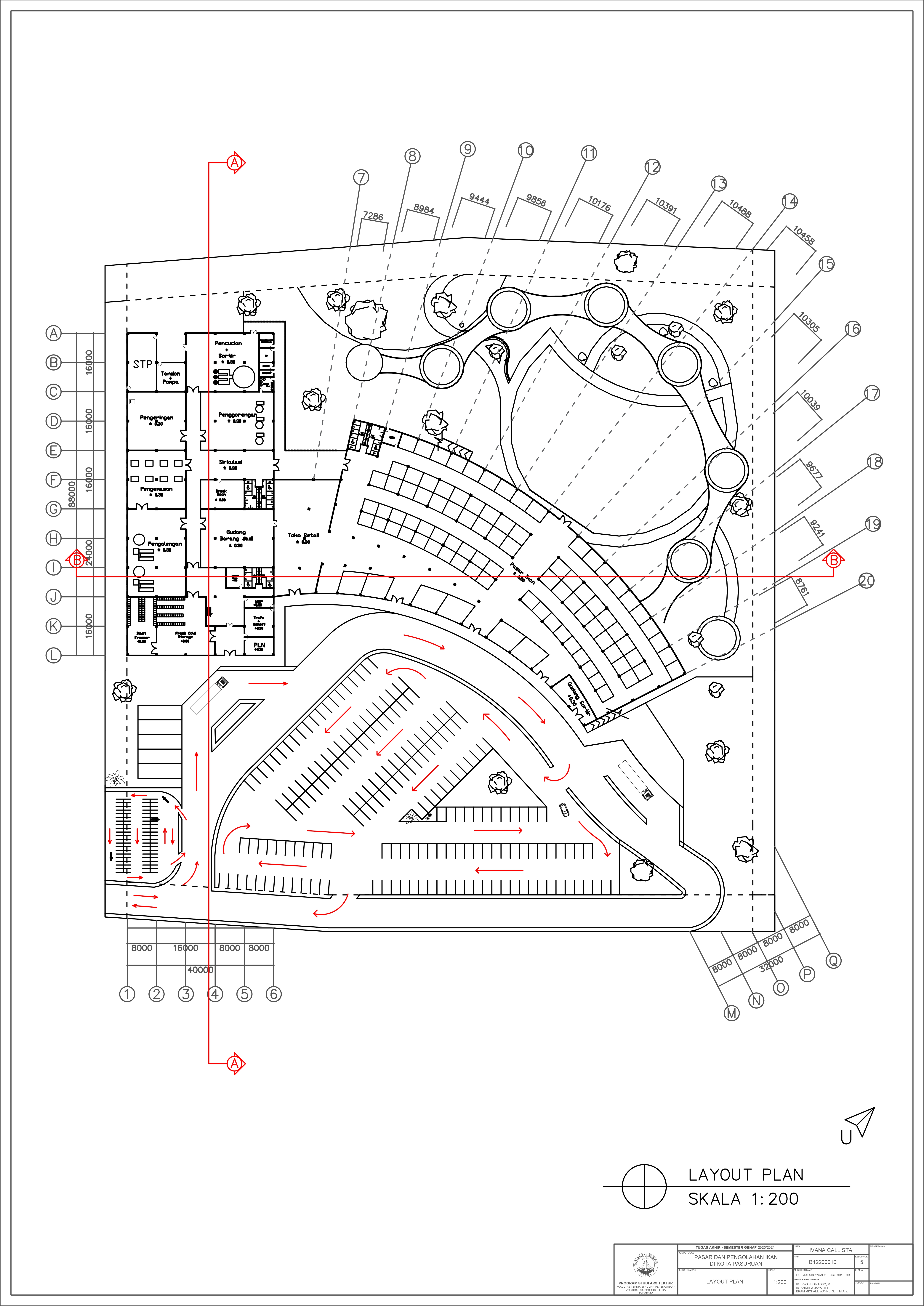 Kota Pasuruan adalah sebuah kota kecil yang terletak di Provinsi Jawa Timur. Karena lokasinya yang berada tepat di tepian laut, Kota Pasuruan cukup terkenal akan potensi dan komoditas laut dan perikanan. Namun, fasilitas eksisting sekarang tidak dapat mendukung tersebut untuk mencapai potensi maksimalnya; dapat dilihat dari pelabuhan perikanan yang kapasitasnya kurang untuk menampung hasil tangkapan rata-rata 7 ton per hari, dermaga dan area tautan perahu yang rusak dan sempit, dan tidak adanya pasar ikan atau di mana para masyarakat dapat membeli ikan. Perencanaan ini ditujukan untuk mengembangkan potensi perikanan kota Pasuruan serta memberikan lebih banyak lowongan pekerjaan untuk masyarakat sekitar. Fasilitas ini akan mempunyai dua fungsi utama, yang pertama adalah sebagai area lelang dan pasar ikan, kedua adalah gudang penyimpanan dan area pengolahan ikan, beserta beberapa fungsi penunjang seperti food court, area perkantoran, serta toko retail. Pendekatan yang diambil untuk menyelesaikan masalah tersebut adalah pendekatan sirkulasi dengan mengambil teori dari buku Francis DK Ching yaitu Pencapaian Sirkulasi, Pola Sirkulasi, dan Konfigurasi Jalur Sirkulasi. Dengan demikian, diharapkan perencanaan ini dapat membantu meningkatkan potensi perikanan di kota Pasuruan dengan mempermudah akses masyarakat menuju ikan segar serta hasil olahan ikan lainnya.