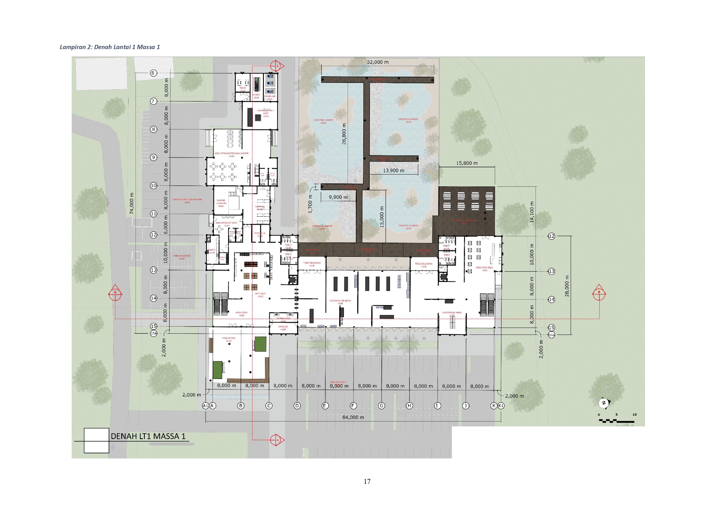 Taman Buaya Indonesia Jaya merupakan sebuah objek wisata dan konservasi buaya di Bekasi yang telah dibangun dari tahun 1990. Seiring dengan berjalannya waktu tanpa perkembangan, objek wisata dan konservasi buaya tersebut menjadi kurang layak dengan alasan menjadi tempat yang kurang memadai luasan keperluan sirkulasi buaya, serta desain habitat yang diperlukan oleh buaya. Dengan kurangnya dana dari inovasi kegiatan wisata dan kurang layaknya habitat konservasi buaya, dibutuhkan sebuah fasilitas taman konservasi dan museum buaya untuk menampung buaya serta juga meningkatkan turisme di daerah Bekasi yang berkurang. Fasilitas Museum dan Taman Konservasi Buaya di Bekasi merupakan desain perancangan untuk menampung dan mengonservasi buaya-buaya di sekitar Jawa Barat dengan memperhatikan perilaku kebutuhan sirkulasi dan perawatan buaya. Hal ini membantu proses perkembangbiakan dan pertumbuhan buaya agar dapat beradaptasi dalam lingkungan alam luar saat mereka dilepas untuk mengatasi ancaman jumlah buaya yang punah di Indonesia. Melalui pendekatan pada perilaku ini, diharapkan agar Fasilitas Museum dan Taman Konservasi Buaya tidak hanya memberikan solusi untuk mengatasi ancaman punah pada buaya tetapi juga memberikan wawasan kepada masyarakat sekitar melalui edukasi wisata yang immersive ntuk menciptakan kesadaran kepada masyarakat bahwa alam di Indonesia perlu diperhatikan.