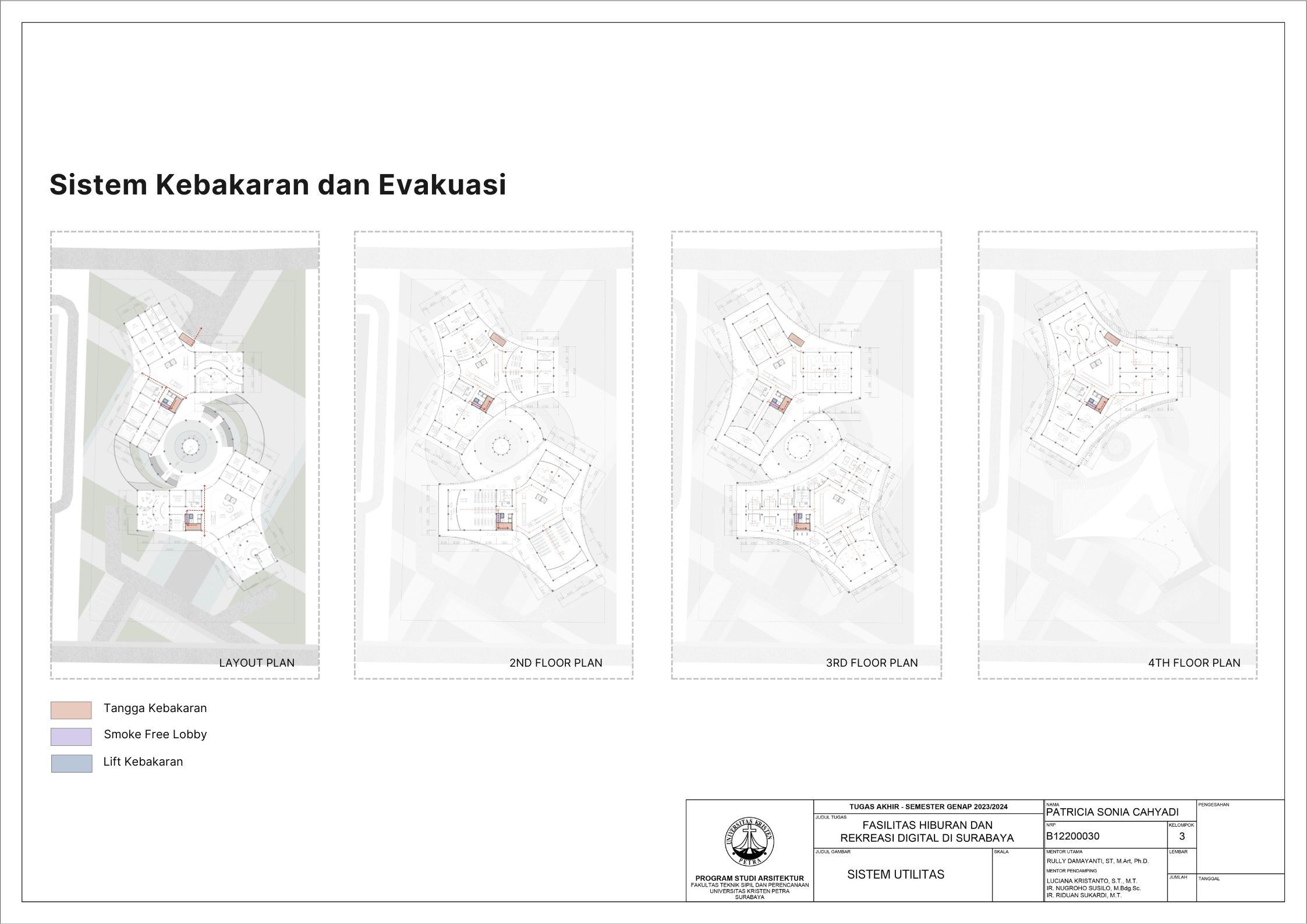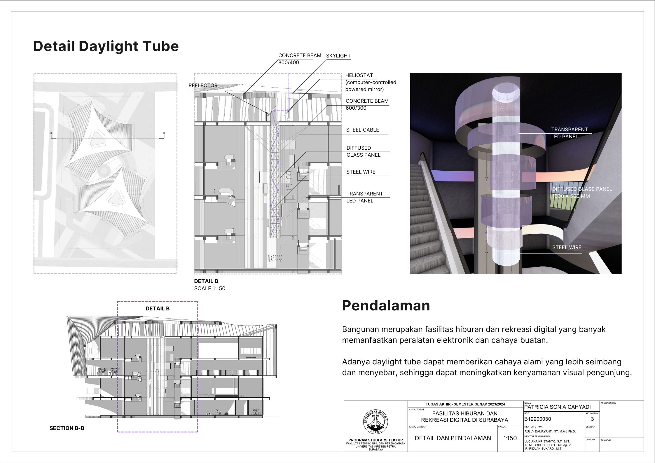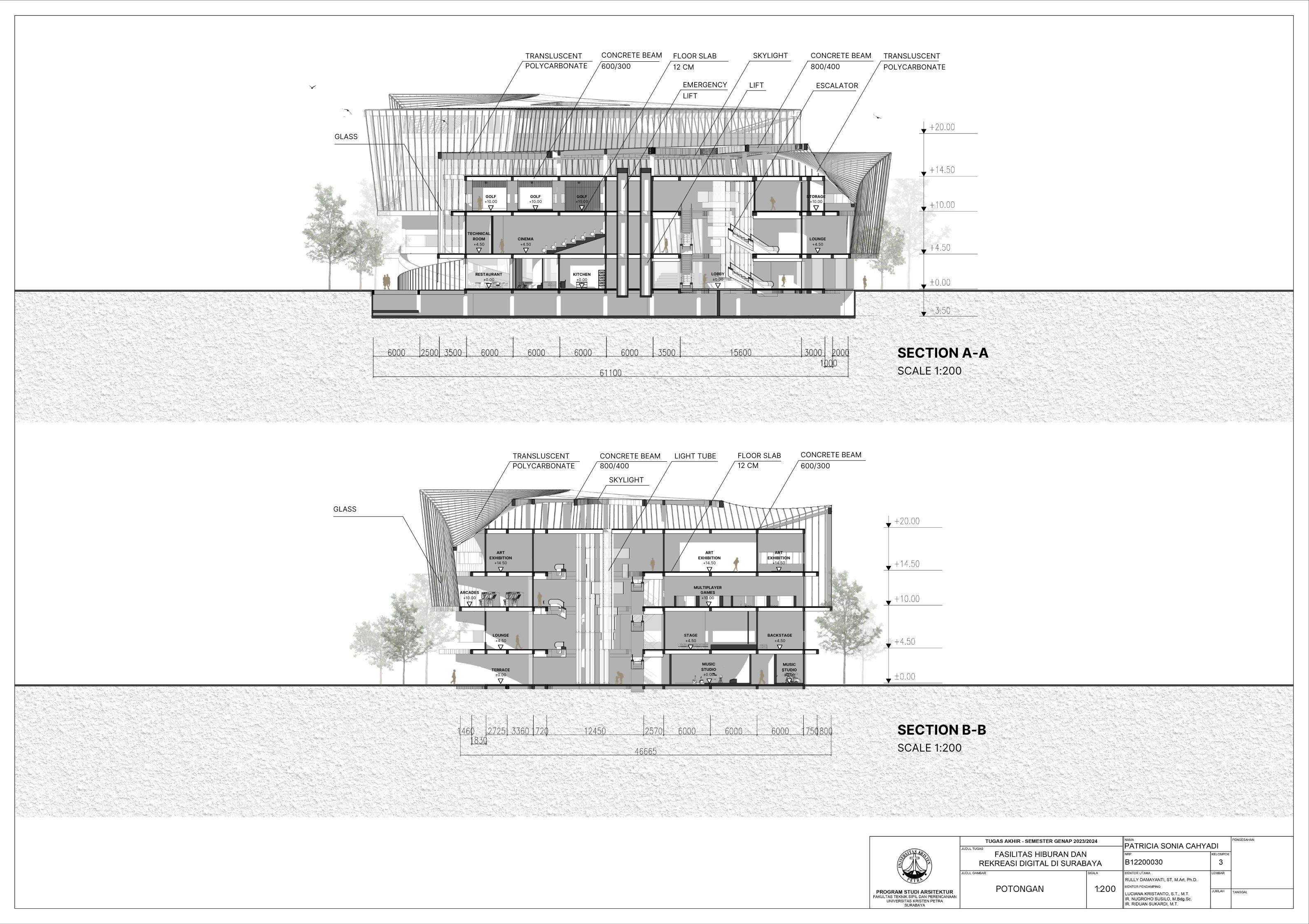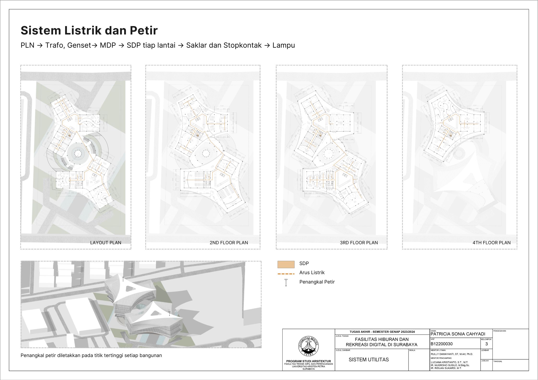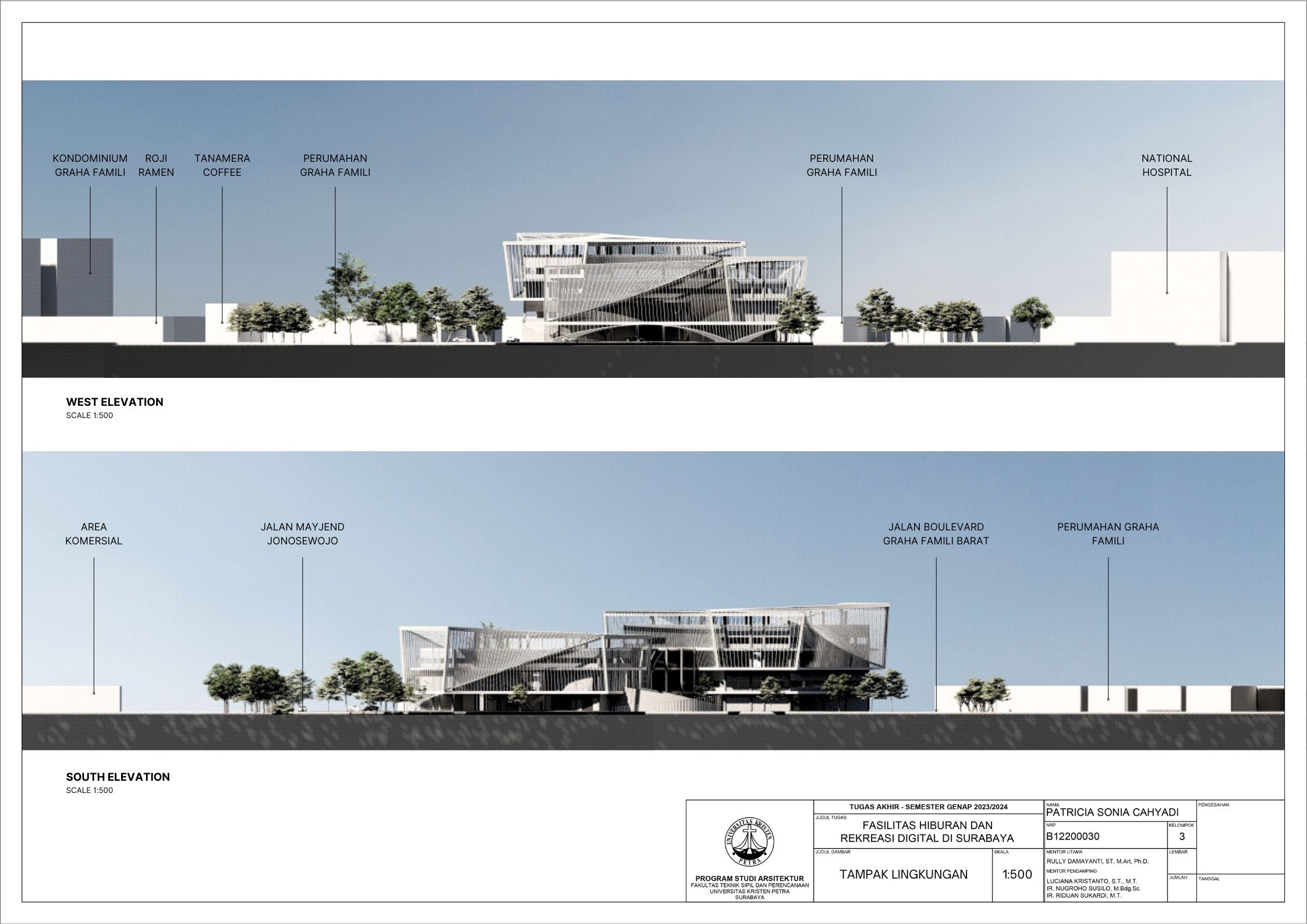 Surabaya merupakan kota dengan pertumbuhan penduduk yang tinggi namun menghadapi tingkat stres yang signifikan; sehingga membutuhkan tempat hiburan dan rekreasi positif dan aktif. Dalam menghadapi tuntutan ini, teknologi digital memainkan peran penting seiring dengan perkembangan zaman yang terus berlangsung. Tujuan dari laporan ini adalah mengusulkan desain arsitektur untuk fasilitas hiburan dan rekreasi digital di Surabaya dengan pendekatan multisensori. Pendekatan multisensori adalah pendekatan arsitektur berbasis pengalaman ruang yang memperhatikan keharmonisan berbagai indra (sensori). Metode perancangan yang dipakai melalui studi fungsional dan arsitektur pada bangunan preseden, dan sintesa hasil analisis tapak, konsep desain, dan program ruang. Konsep desain bangunan ini adalah sensory scape, yang bertujuan untuk menciptakan pengalaman multisensori yang mendalam bagi para pengunjung. Desain bangunan memberikan kesempatan pada setiap pengunjung untuk menikmati momen pemulihan dan kesenangan yang akan menyegarkan pikiran dan tubuh. Fasilitas terbagi menjadi tujuh zona utama yaitu makanan, film, olahraga, musik, pertunjukan, permaian, dan seni. Setiap zona dirancang dengan memanfaatkan teknologi digital secara optimal, sehingga dapat memberikan pengalaman interaktif dan menarik bagi masyarakat. Hasil rancangan yang menekankan pada pengolahan ruang publik dengan memanfaatkan teknologi digital ini diharapkan dapat memberikan usulan desain untuk menurunkan tingkat stres para pelajar dan pekerja di kota Surabaya.