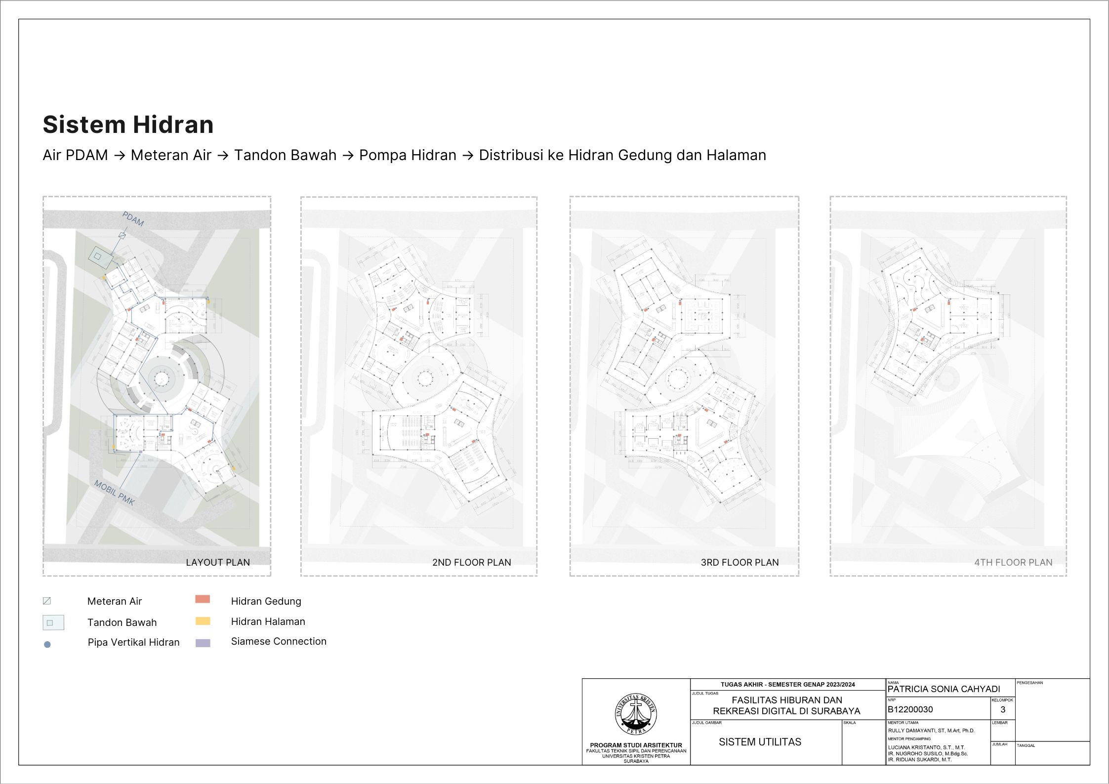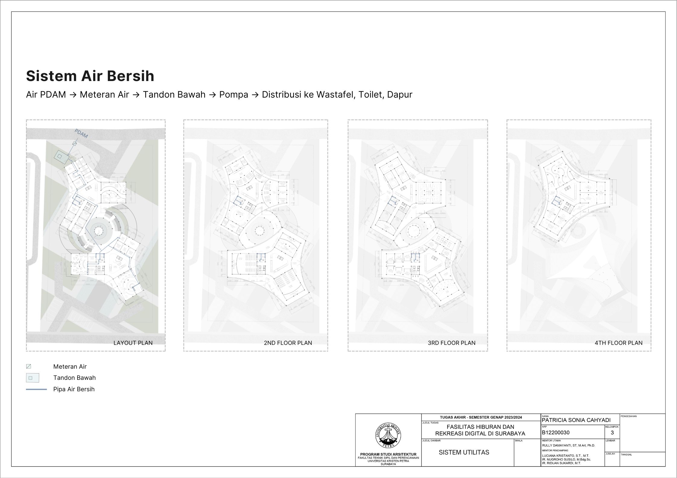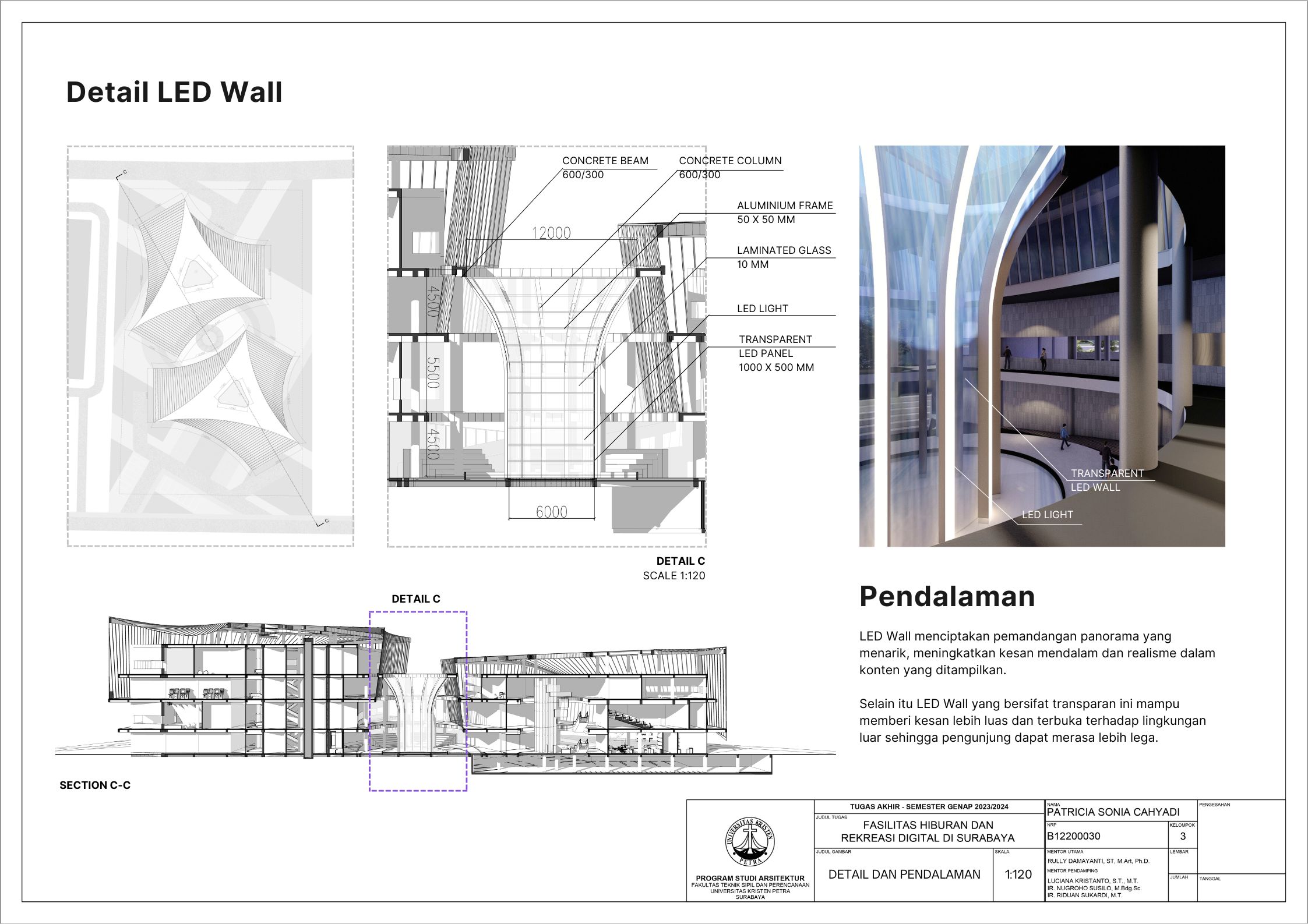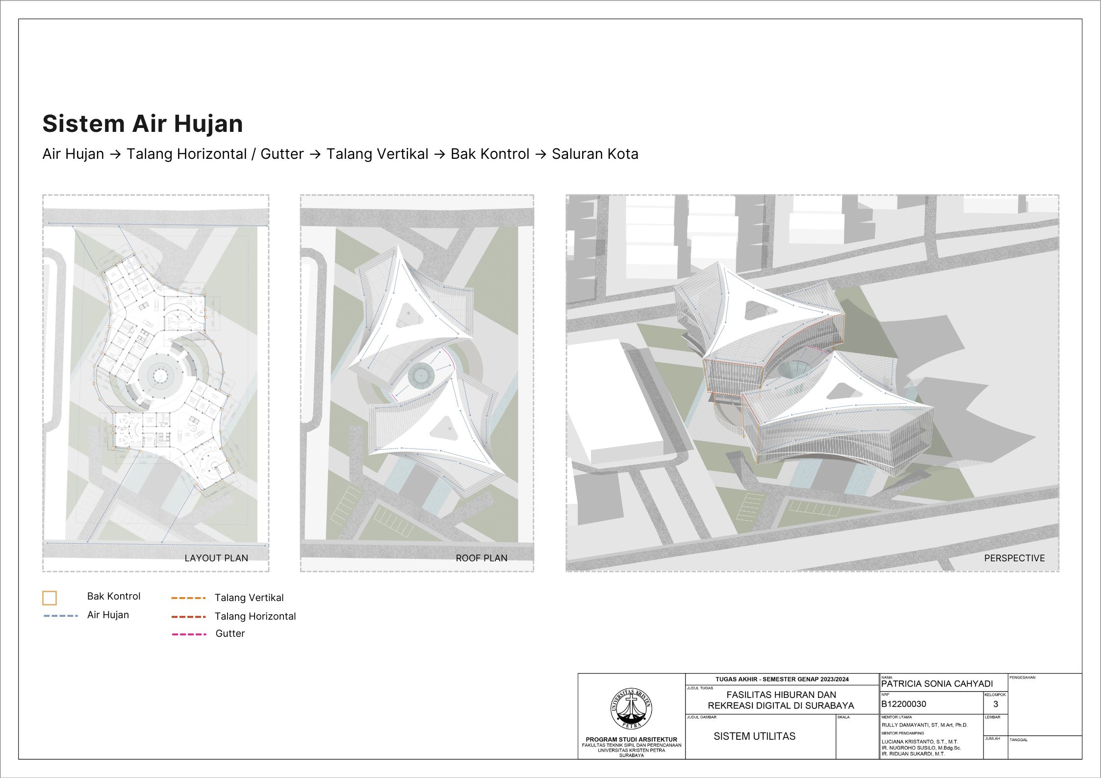 Surabaya merupakan kota dengan pertumbuhan penduduk yang tinggi namun menghadapi tingkat stres yang signifikan; sehingga membutuhkan tempat hiburan dan rekreasi positif dan aktif. Dalam menghadapi tuntutan ini, teknologi digital memainkan peran penting seiring dengan perkembangan zaman yang terus berlangsung. Tujuan dari laporan ini adalah mengusulkan desain arsitektur untuk fasilitas hiburan dan rekreasi digital di Surabaya dengan pendekatan multisensori. Pendekatan multisensori adalah pendekatan arsitektur berbasis pengalaman ruang yang memperhatikan keharmonisan berbagai indra (sensori). Metode perancangan yang dipakai melalui studi fungsional dan arsitektur pada bangunan preseden, dan sintesa hasil analisis tapak, konsep desain, dan program ruang. Konsep desain bangunan ini adalah sensory scape, yang bertujuan untuk menciptakan pengalaman multisensori yang mendalam bagi para pengunjung. Desain bangunan memberikan kesempatan pada setiap pengunjung untuk menikmati momen pemulihan dan kesenangan yang akan menyegarkan pikiran dan tubuh. Fasilitas terbagi menjadi tujuh zona utama yaitu makanan, film, olahraga, musik, pertunjukan, permaian, dan seni. Setiap zona dirancang dengan memanfaatkan teknologi digital secara optimal, sehingga dapat memberikan pengalaman interaktif dan menarik bagi masyarakat. Hasil rancangan yang menekankan pada pengolahan ruang publik dengan memanfaatkan teknologi digital ini diharapkan dapat memberikan usulan desain untuk menurunkan tingkat stres para pelajar dan pekerja di kota Surabaya.