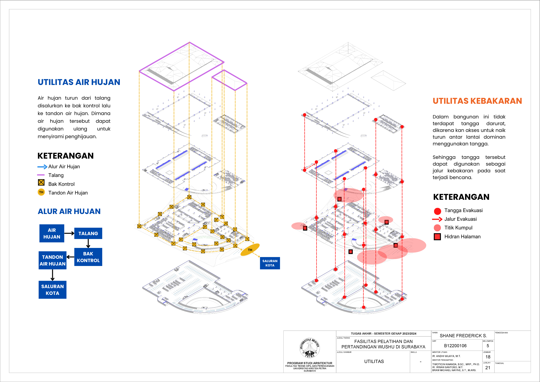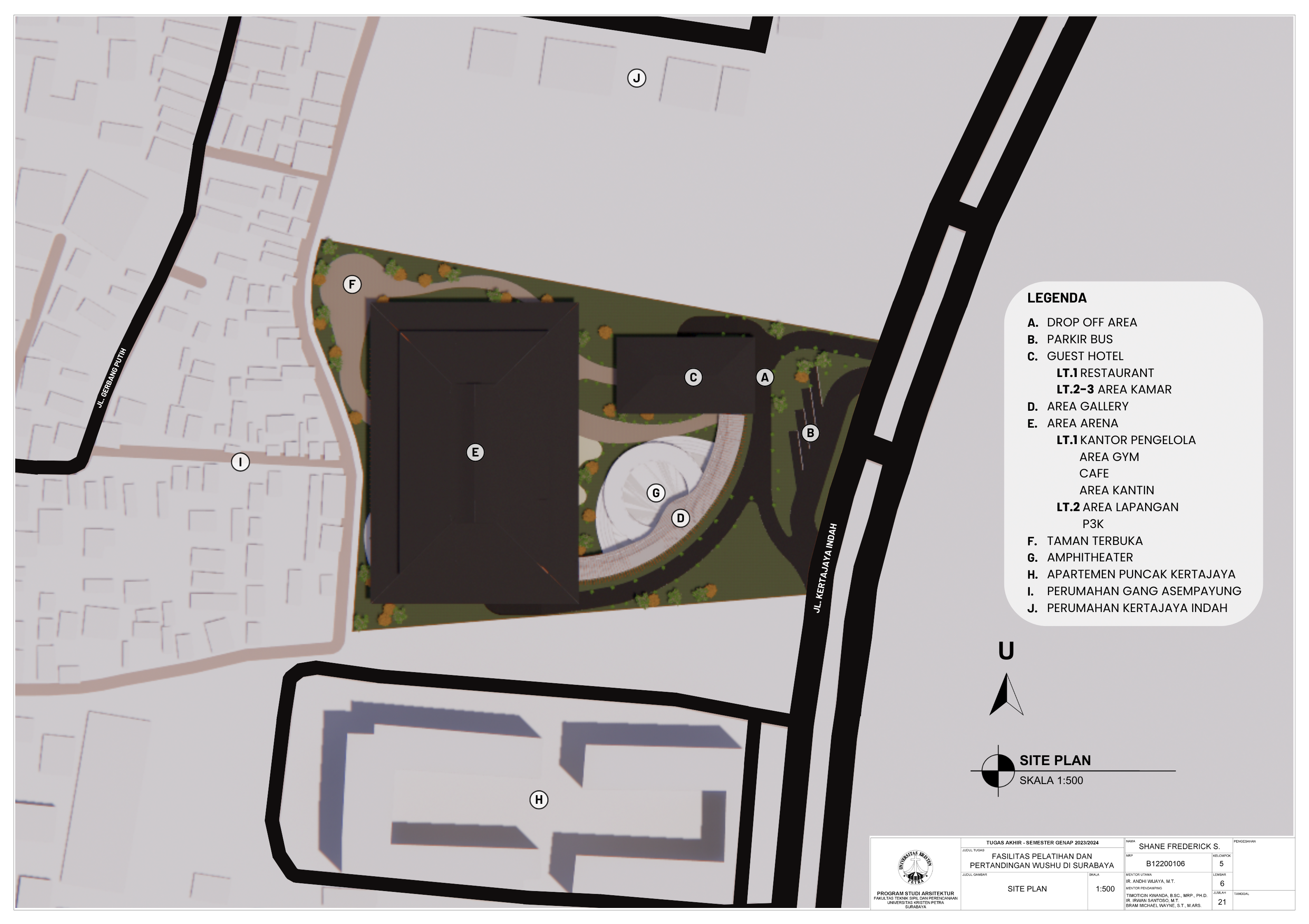 Wushu adalah sebuah seni bela diri berasal dari China, yang telah menjelma menjadi daya tarik khusus di Indonesia. Di kota Surabaya menjadi pusat utama minat wushu di Indonesia, terutama untuk kalangan generasi muda. Lebih dari sekadar bela diri atau pencapaian, wushu juga sebagai olahraga rekreasi dan kebugaran yang tak hanya meningkatkan kesehatan fisik tetapi juga membawa nilai-nilai disiplin, kontrol diri, dan pengembangan aspek mental. Meskipun popularitas wushu terus berkembang namun, masih terdapat sejumlah tantangan, seperti kurangnya infrastruktur pelatihan yang memadai, kesadaran masyarakat yang perlu ditingkatkan, kurangnya koordinasi, dan kurangnya perhatian terhadap keselamatan atlet. Perancangan fasilitas pelatihan dan pertandingan wushu bertujuan memenuhi kebutuhan atlet untuk dapat menunjang perfoma mereka menjadi lebih baik. Selain itu, fasilitas juga dirancang untuk memberikan pendidikan dan pengalaman pengunjung, terutama untuk menarik minat generasi muda. Pendekatan yang digunakan adalah pendekatan perilaku. Pendekatan tersebut diterapkan dengan memahami pola perilaku atlet saat berlatih, serta perilaku pengunjung pada saat ingin mengetahui tentang wushu. Dengan memahami pola perilaku atlet dan pengunjung, fasilitas bertujuan untuk menciptakan ruang yang memiliki alur yang nyaman dan baik untuk kedua pihak.