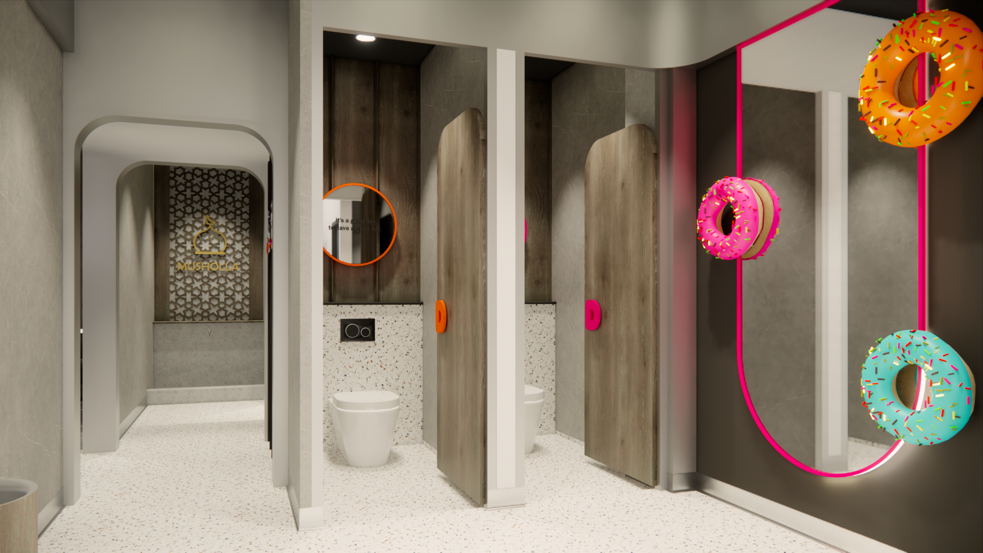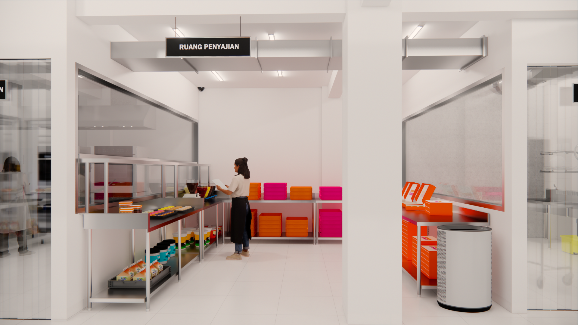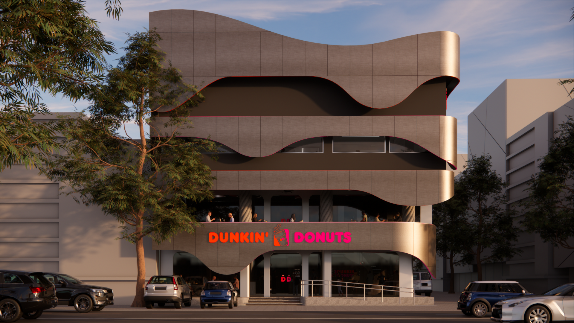 Umumnya, kafe adalah suatu tempat untuk makan dan minum sambil berkumpul, berbincang, bersantai, ataupun sekedar mengisi waktu luang. Namun seiring berkembangnya zaman, fungsi kafe berkembang menjadi tempat untuk bekerja. Mengingat sejak era pandemi, banyak orang harus menggunakan sistem kerja ‘work from home (WFH)’. Sistem tersebut berpengaruh pada kebiasaan dan pola kerja masyarakat, yang mana saat ini telah berkembang menjadi ‘work from café (WFC)’. Banyak orang yang merasa lebih nyaman dan produktif ketika bekerja di kafe. Sehingga kini kafe yang nyaman menjadi tempat yang banyak dicari orang. Maka dari itu, penulis mengangkat topik perancangan interior Dunkin’ Donuts dengan menggunakan pendekatan human-centered design (HCD), tujuannya untuk mendukung kenyamanan aktivitas pengguna. Perancangan ini menggunakan metode design thinking yang terdiri dari sembilan tahap, untuk menciptakan solusi yang menjawab permasalahan dan kebutuhan pengguna. Fokus perancangan ini mendukung kenyamanan pengguna dalam beraktivitas dengan menyesuaikan fungsi dan kebutuhan ruang berdasarkan penggunanya. Tujuan perancangan ini untuk meningkatkan minat pengunjung dan mendukung produktivitas seluruh pengguna baik pengunjung maupun staf. Perancangan ini menghasilkan desain kafe yang fokus pada kebutuhan dan pola aktivitas pengguna, guna memaksimalkan produktivitas, kualitas layanan, minat dan tingkat kepuasan pengunjung, dan brand awareness suatu kafe.
