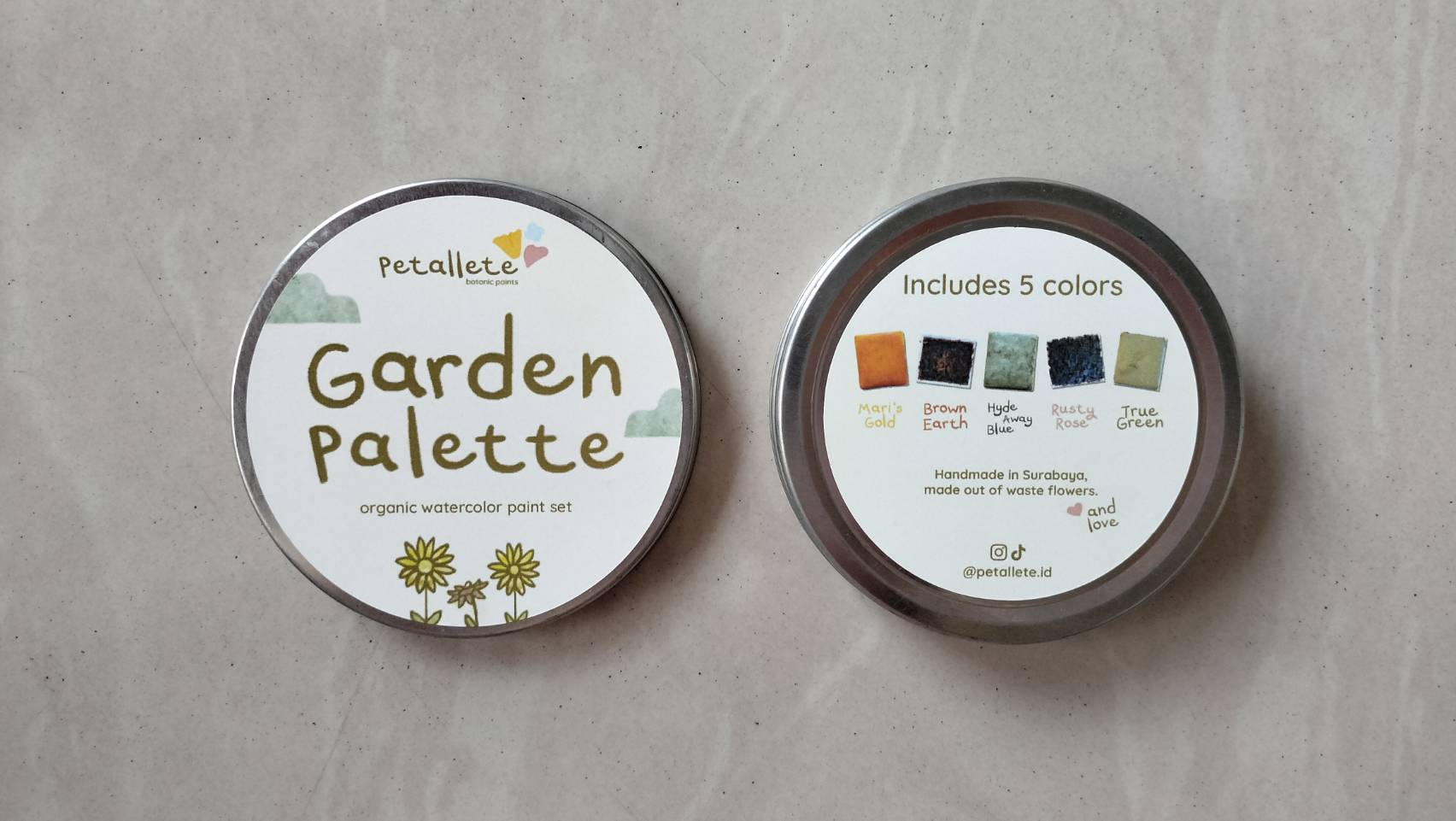 Sampah organik menjadi ancaman terhadap lingkungan karena menyebabkan kerusakan pada sistem pembuangan limbah yang tersumbat, meluapnya tempat pembuangan sampah, serta berkontribusi terhadap peningkatan penyakit karena serangga pembawa penyakit berkembang biak pada kondisi lembap dari sampah organik membusuk. Hal ini menjadi permasalahan di Surabaya di mana warga kota terkenal sering mengadakan pesta besar-besaran setiap minggu, khususnya dengan menggunakan barang dekorasi favorit berupa bunga hidup. Ada peluang untuk mengubah limbah bunga yang tersisa dari acara-acara tersebut menjadi pigmen untuk cat air organik, mengingat belum ada merek cat air buatan tangan yang berfokus pada bahan-bahan organik dan keberlanjutan di pasar Indonesia. Dengan menggunakan metode analisis data kompetitor 4P serta SWOT untuk menentukan posisi pembeda merek, hasilnya adalah inovasi merek bernama Petallete. Petallete adalah merek cat air buatan tangan yang bertujuan memperkenalkan pigmen organik sebagai bahan artistik baru untuk mewujudkan kreativitas. Sebelum diperkenalkan kepada konsumen potensial, strategi komunikasi merek diperlukan untuk membangun serta mempromosikan merek, terutama pada platform digital seperti media sosial dan adanya acara aktivasi merek untuk menambah nilai pengalaman merek secara keseluruhan.