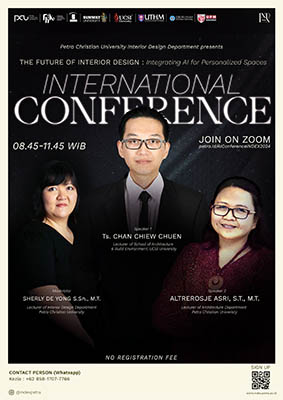 Dalam Rangka Memeriahkan acara INDEX 2024, diadakan international conference the future of international design integrating AI for personalized spaces. Acara seminar ini diadakan pada Minggu 18 Agustus 2024 di Chameleon Hall TP 6 lantai 5. Dengan narasumber Sherly de Jong, Chan Chiew Chuen serta Altrerosje Asri.