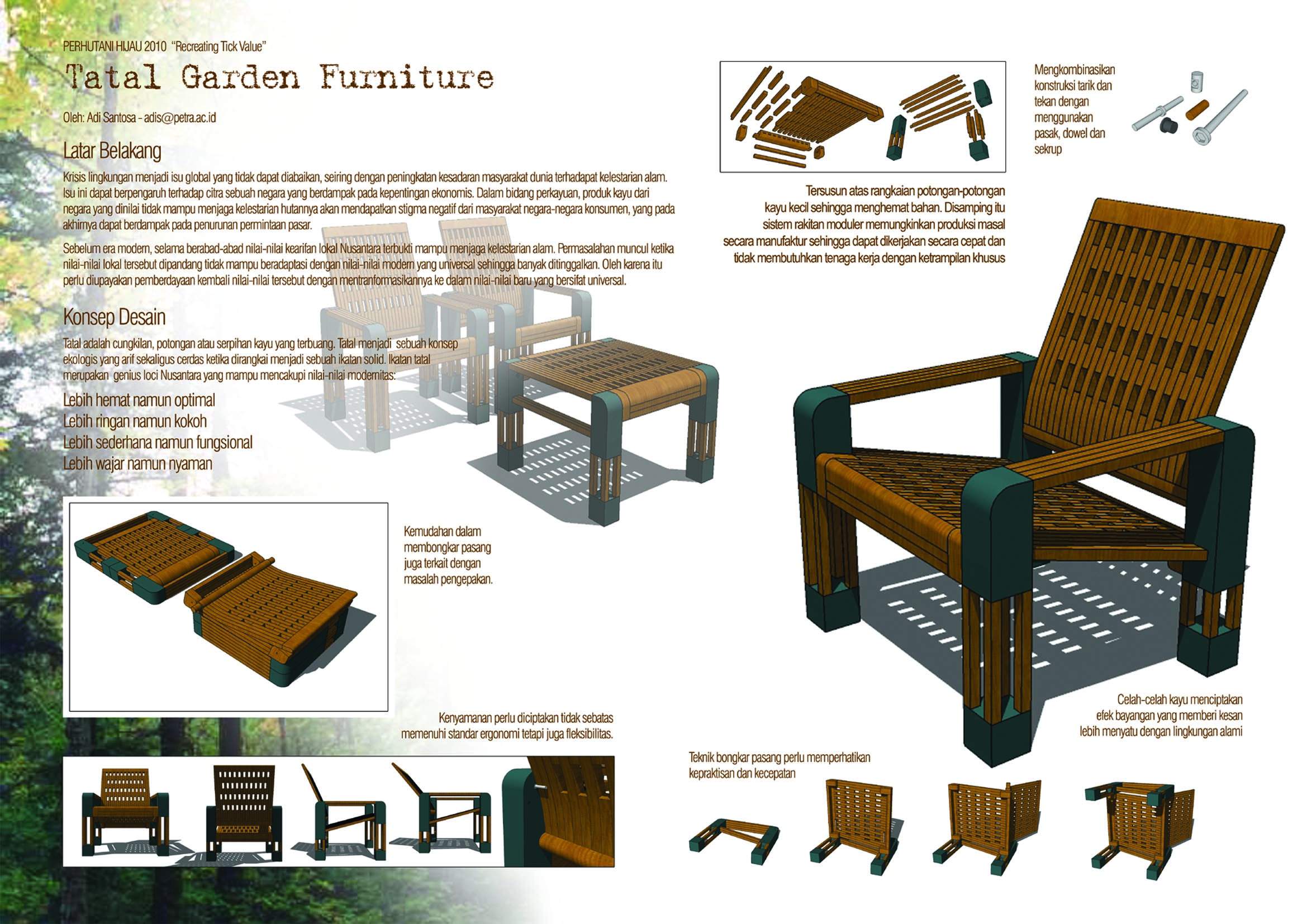 Tatal adalah cungkilan, potongan atau serpihan kayu yang terbuang. Tatal menjadi sebuah konsep ekologis yang arif sekaligus cerdas ketika dirangkai menjadi sebuah ikatan solid. Ikatan tatal merupakan genius loci Nusantara yang mampu mencakup nilai-nilai modernitas. Desain furniture ini menjadi desain terbaik dan desainernya meraih juara I Nasional, furniture garden yang diselenggarakan perhutani, di UGM bulan September 2007. Kelebihan