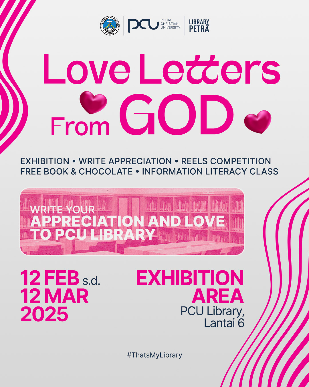 dalam rangka menyambut kedatangan mahasiswa pada semester genap tahun 2025, Perpustakaan UK Petra mengadakan beberapa acara yang menarik. Salah satunya adalah pemberian Cokelat gratis bagi 10 pengunjung pertama di setiap harinya. Acara dimulai pada tanggal 12 Februari 2025 hingga 22 Februari 2025.