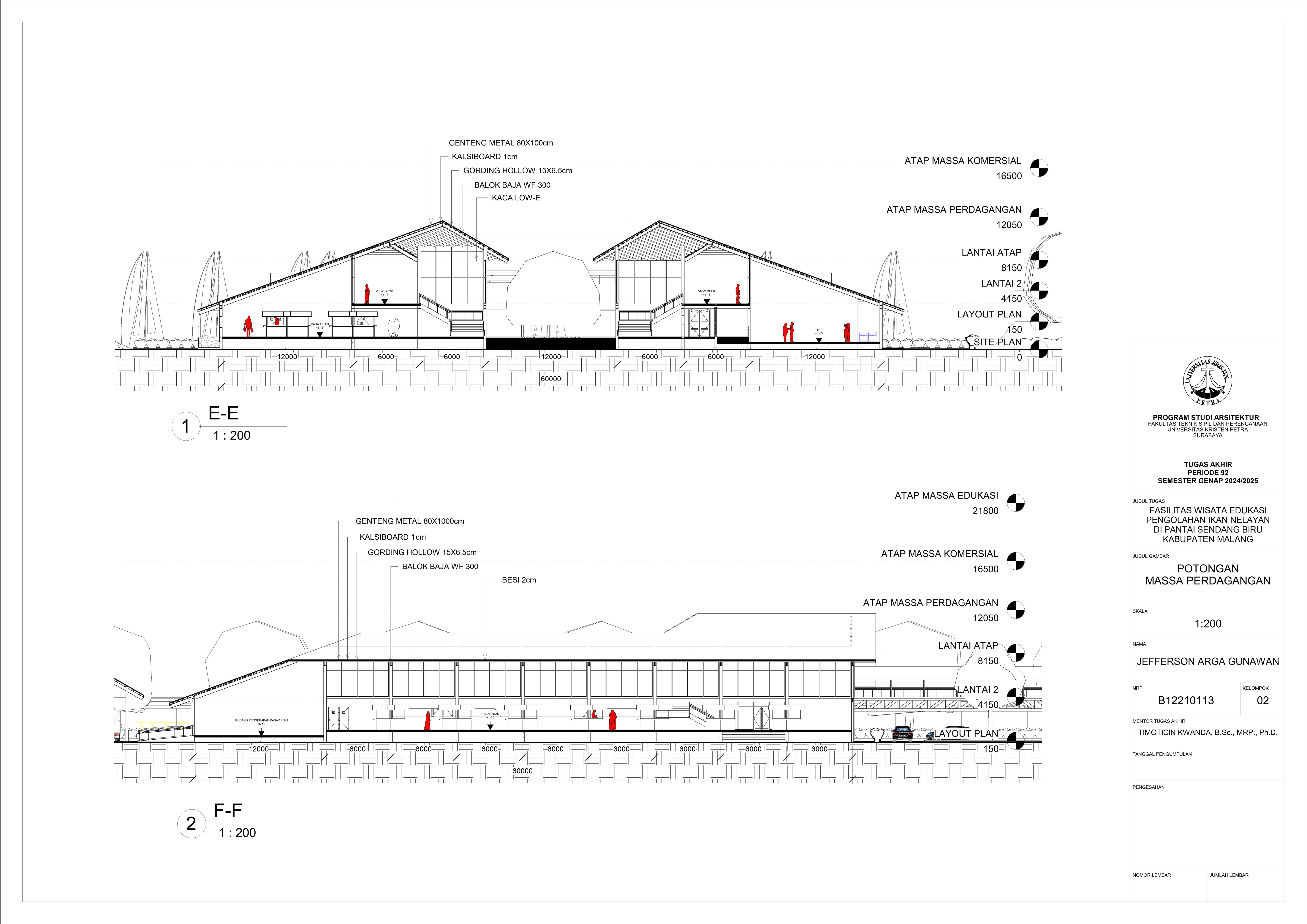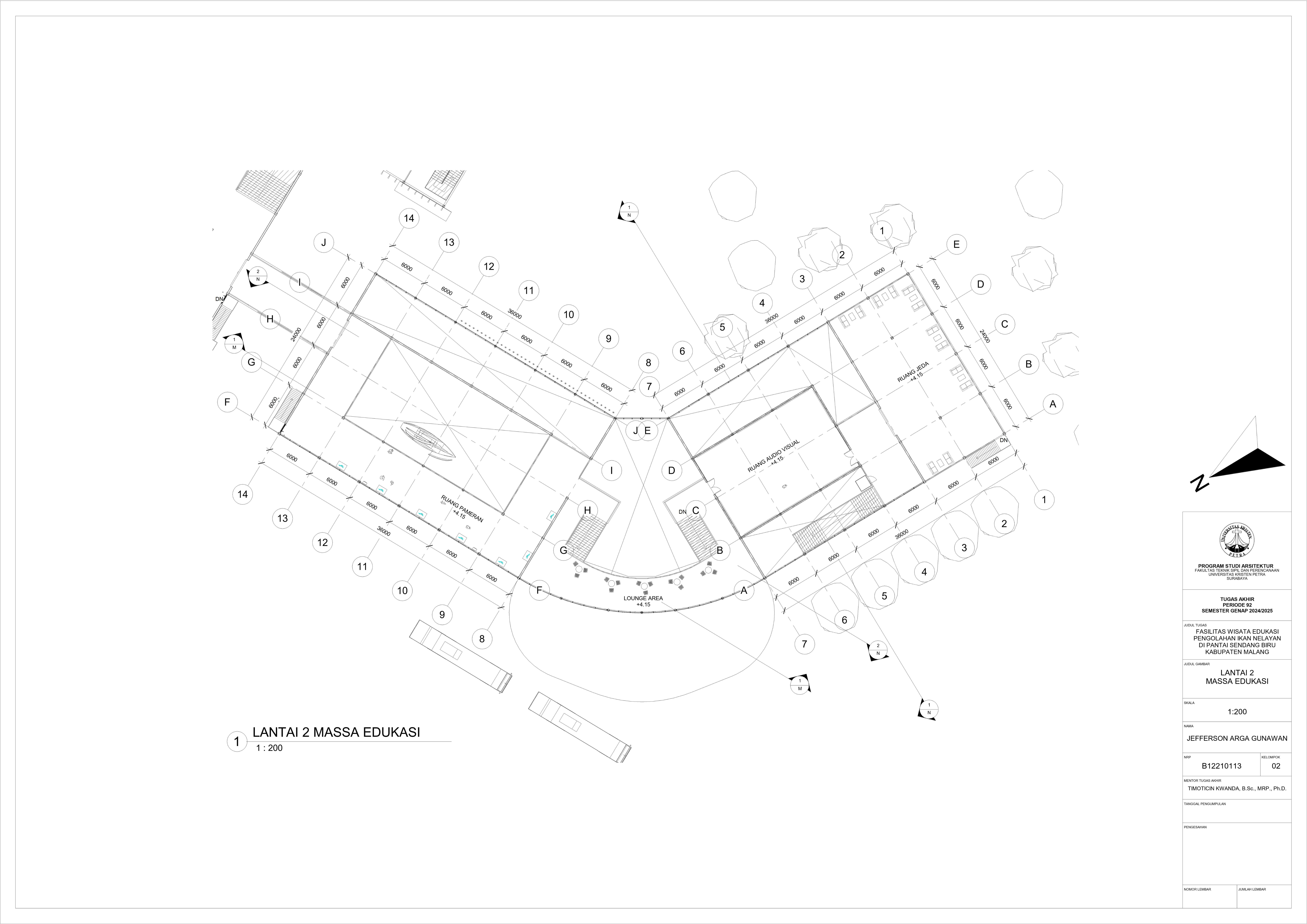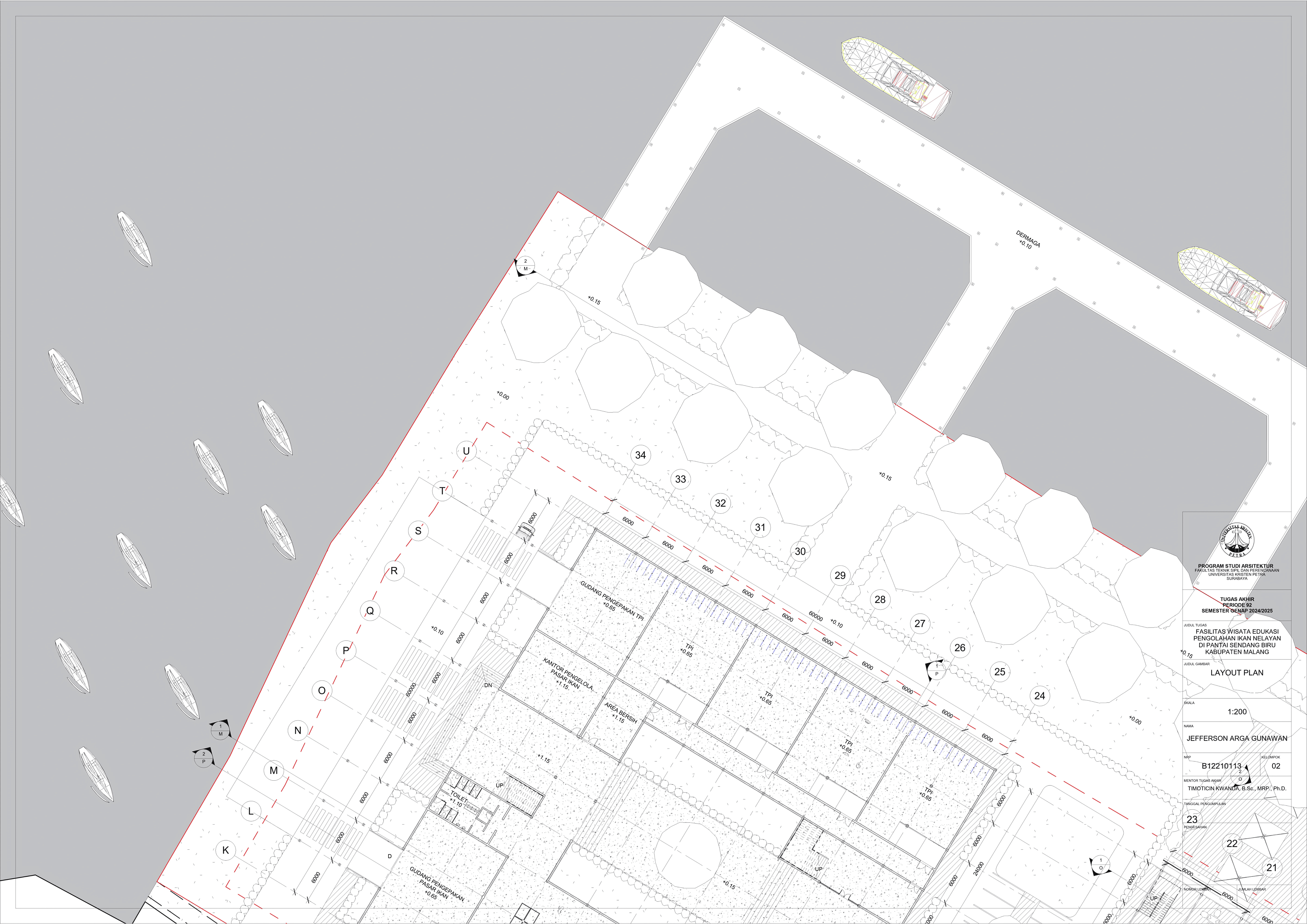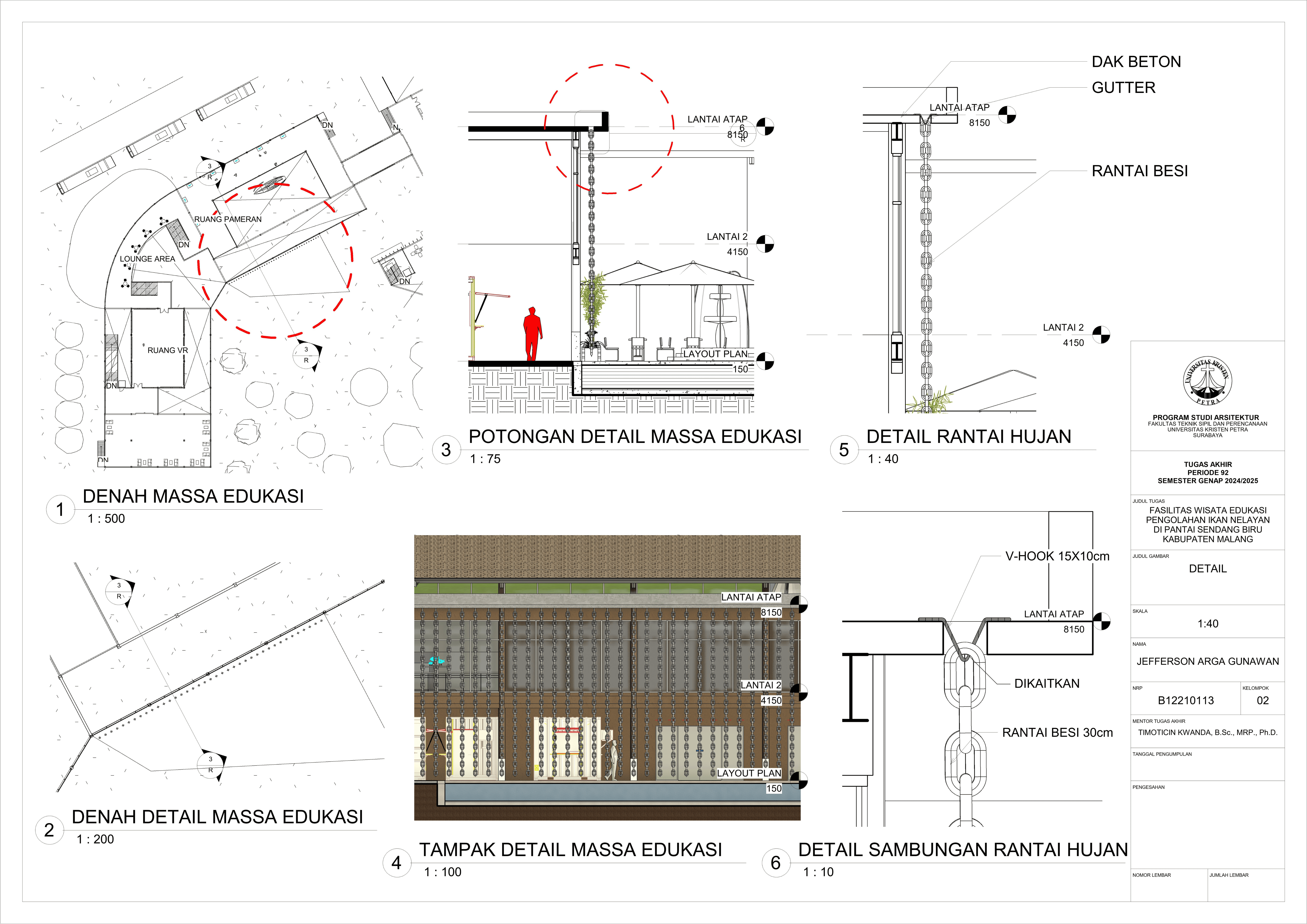 Perancangan fasilitas wisata edukasi di Pantai Sendang Biru bertujuan untuk mengatasi kebutuhan terhadap sarana dalam mengoptimalkan potensi wisata dan edukasi di kawasan pesisir tersebut. Permasalahan utama dalam perancangan fasilitas ini yaitu merancang sebuah bangunan yang tidak hanya informatif tetapi juga memberikan pengalaman kepada pengguna dan mampu mengatasi bau dari aktivitas perikanan pada area tersebut. Konsep perancangan yang digunakan menggunakan pendekatan spasial terhadap hubungan antar ruang dan pendalaman multisensori dengan menggunakan indera agar merasakan pengalaman ruang secara menyeluruh yang nantinya akan menghasilkan parameter desain berupa fleksibilitas ruang, interaksi antar pengguna, dan penggunakan indera. Proses perancangan ini nantinya akan menghasilkan tiga massa dengan fungsi bangunan masing-masing yang saling terhubung melalui ruang transisi dengan mengoptimalkan potensi view dan sirkulasi udara alami agar mendukung pengalaman pengunjung secara menyeluruh. Hasil rancangan ini diharapkan mampu menghasilkan sarana yang dapat menyatukan aktivitas nelayan dengan pengalaman wisata yang informatif dan menghidupkan kembali budaya lokal melalui pengalaman nyata dari proses perikanan. Desain ini tidak hanya menjawab kebutuhan edukasi dan wisata tetapi juga menjadi kontribusi terhadap pemberdayaan ekonomi dan identitas lokal masyarakat setempat.