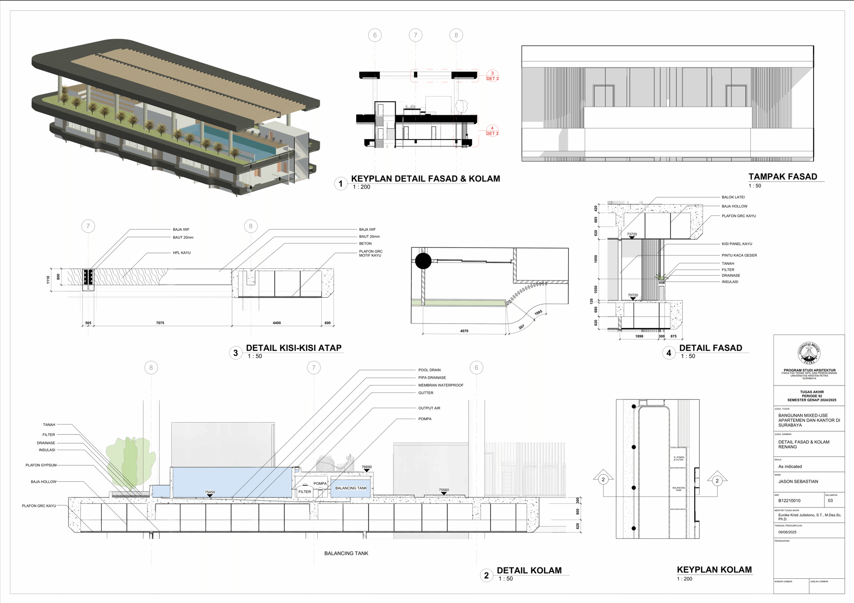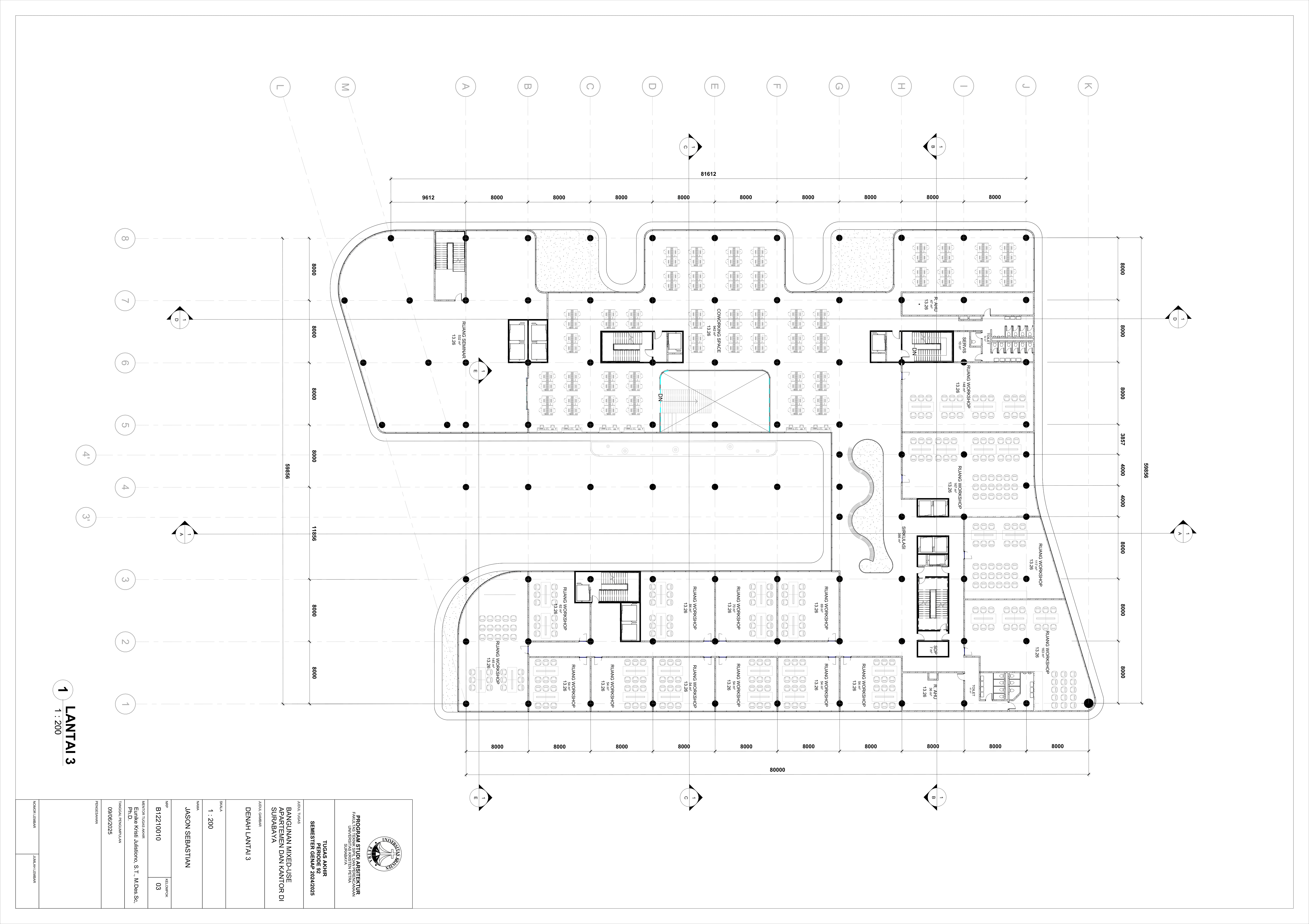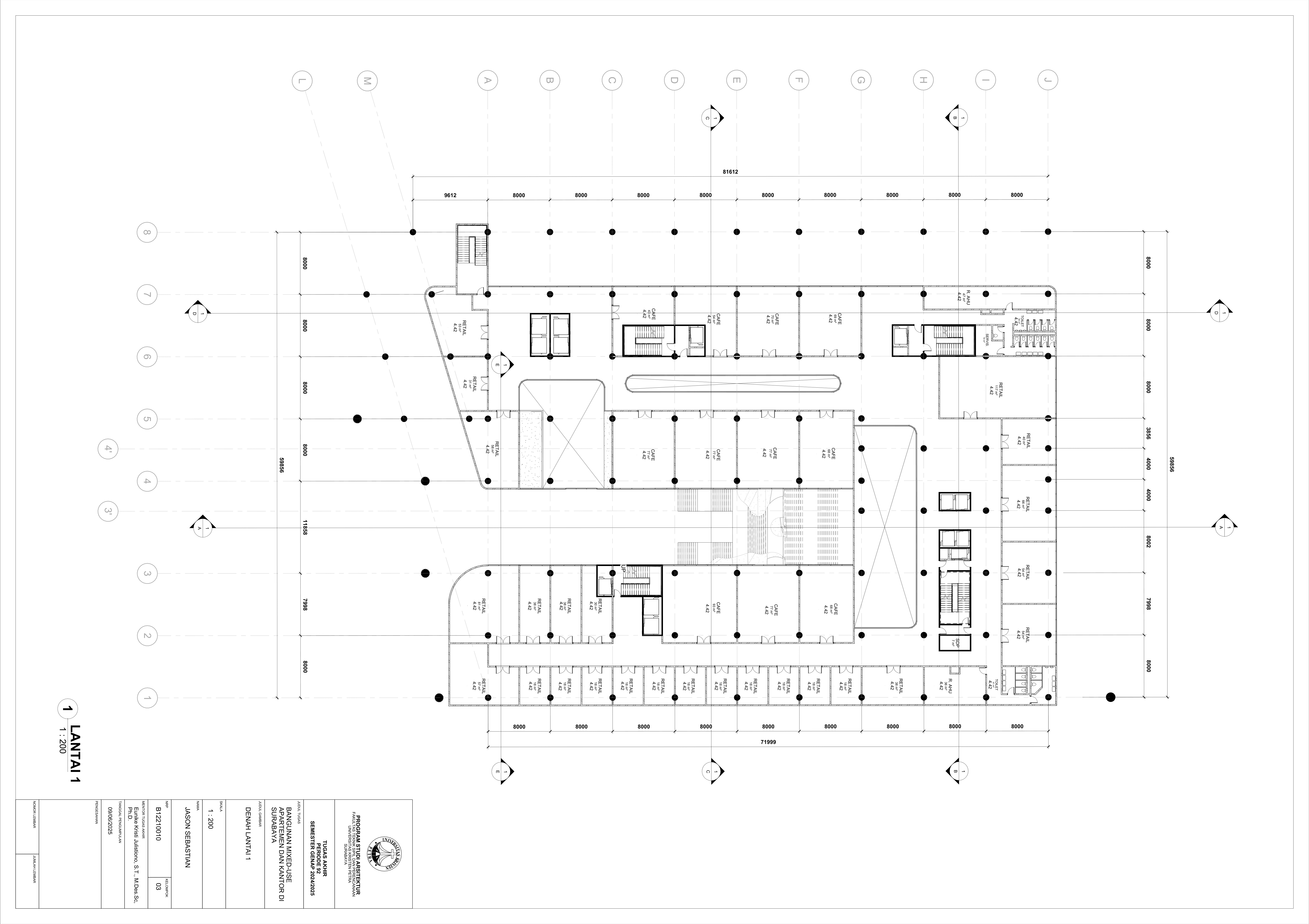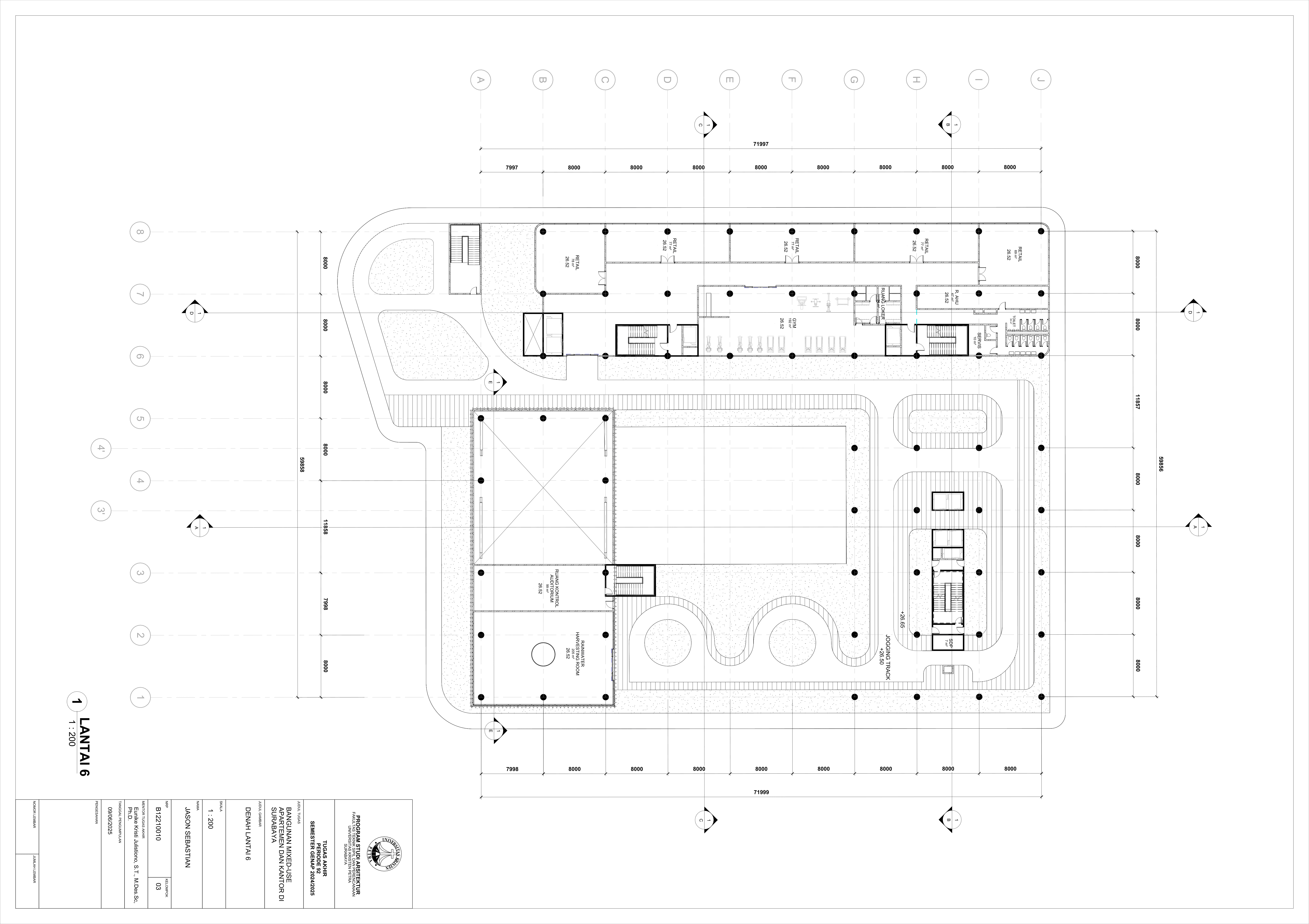 Pertumbuhan urbanisasi dan kebutuhan ruang di Surabaya mendorong pengembangan bangunan vertikal yang mampu mengintegrasikan fungsi hunian dan perkantoran dalam satu lokasi. Perancangan ini bertujuan untuk menghasilkan sebuah bangunan mixed-use yang menggabungkan apartemen dan kantor, dengan pendekatan berkelanjutan sesuai target net-zero emission carbon. Proyek ini mengakomodasi kebutuhan generasi milenial, pengusaha muda, dan pekerja kreatif untuk mengembangkan bisnis startup mereka dengan memaksimalkan efisiensi ruang, kemudahan akses, dan penerapan elemen biophilic untuk meningkatkan kualitas hidup pengguna. Metodologi perancangan melibatkan survei tapak, studi literatur, dan studi preseden untuk bisa menghasilkan desain yang menjawab permasalahan lingkungan saat ini. Bangunan dirancang untuk meminimalisir emisi karbon operasional melalui efisiensi energi, optimalisasi pencahayaan alami, dan penghawaan. Fasilitas yang dirancang meliputi apartemen, kantor sewa, coworking space, area hijau, dan fasilitas penunjang komersial. Perancangan ini juga memperhatikan Sustainable Development Goals (SDGs) terkait penghematan energi dan pertumbuhan ekonomi yang berkelanjutan. Hasil rancangan yang diharapkan adalah desain yang fungsional, fleksibel, dan ramah lingkungan, yang mampu memenuhi kebutuhan masyarakat urban dan memberikan kontribusi positif terhadap arsitektur berkelanjutan di Surabaya.