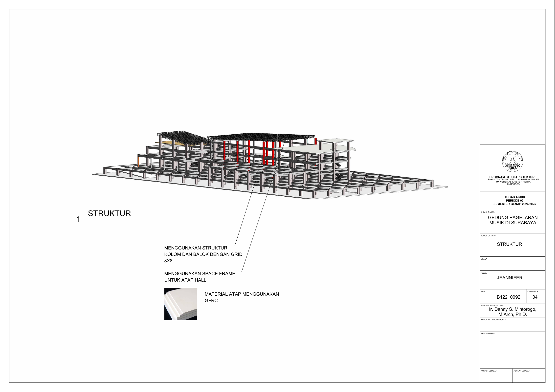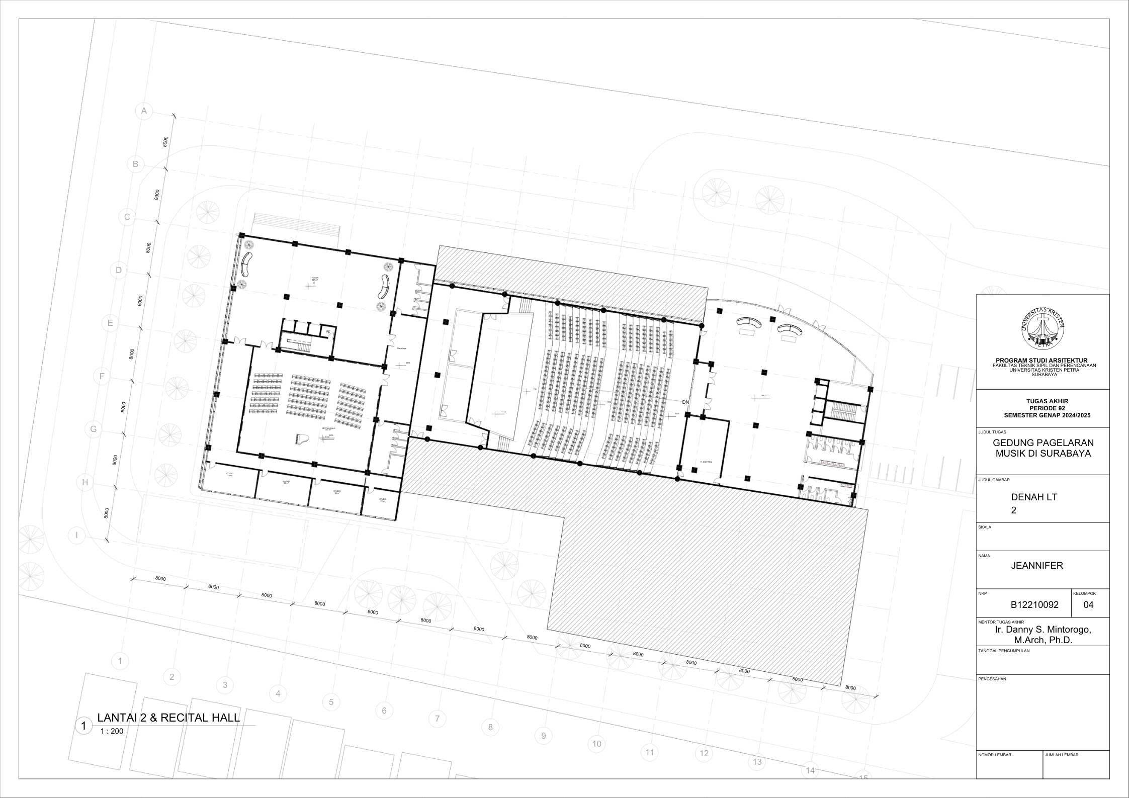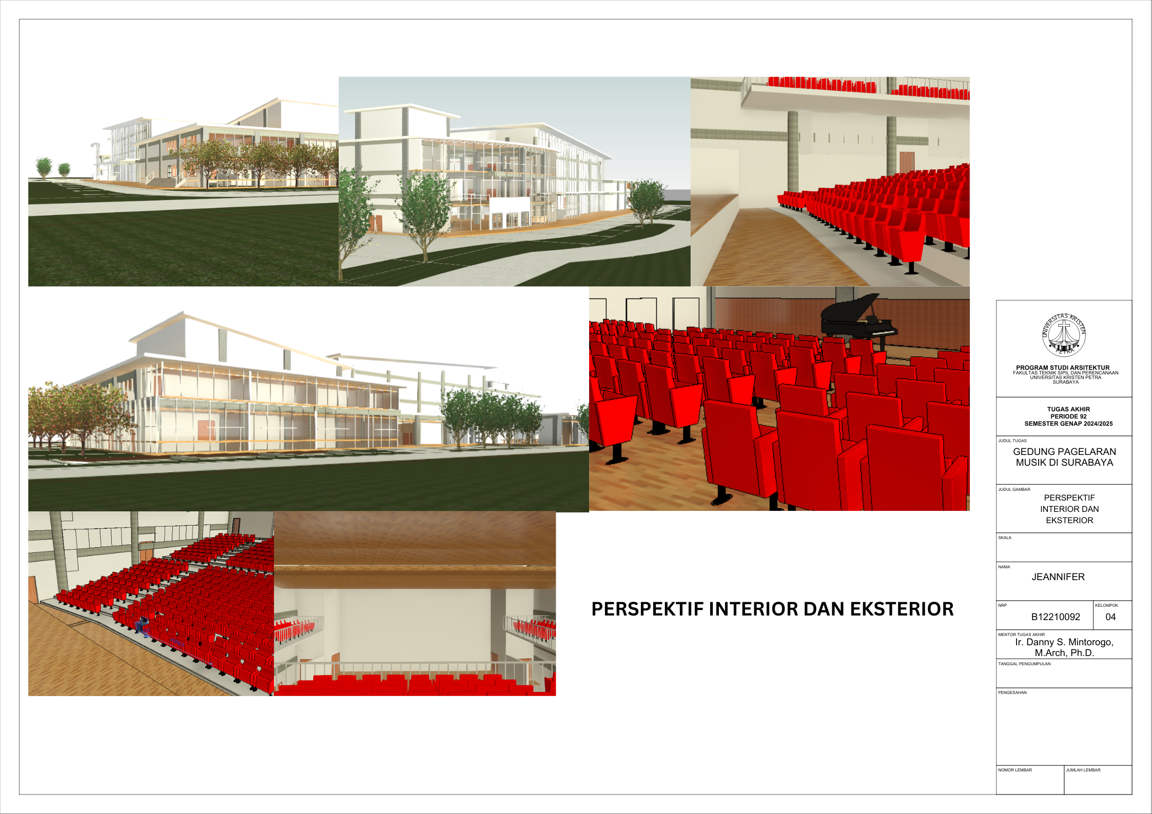 JEANNIFER Danny Santoso Mintorogo (Advisor 1); Bramasta Putra Redyantanu (Examination Committee 1); Rully Damayanti (Examination Committee 2); Altrerosje Asri, S.T., M.T. (Examination Committee 3); Bram Michael Wayne, S.T., M.Ars. (Examination Committee 4); Esti Asih Nurdiah, S.T., M.T., Ph.D. (Examination Committee 5); Wanda Widigdo Canadarma (Examination Committee 6) Universitas Kristen Petra Indonesian Digital Theses Undergraduate Thesis Laporan Perancangan Arsitektur Laporan Perancangan Arsitektur No. 00024677/ARS/2025; Jeannifer (B12210092) MUSIC-HALLS--DESIGNS AND PLANS