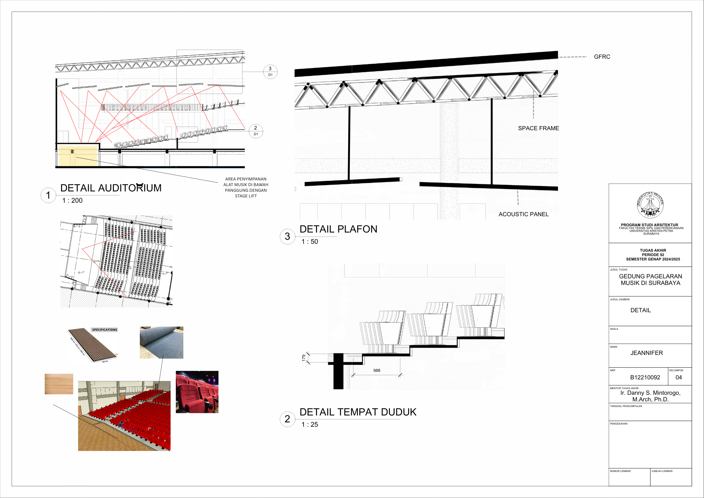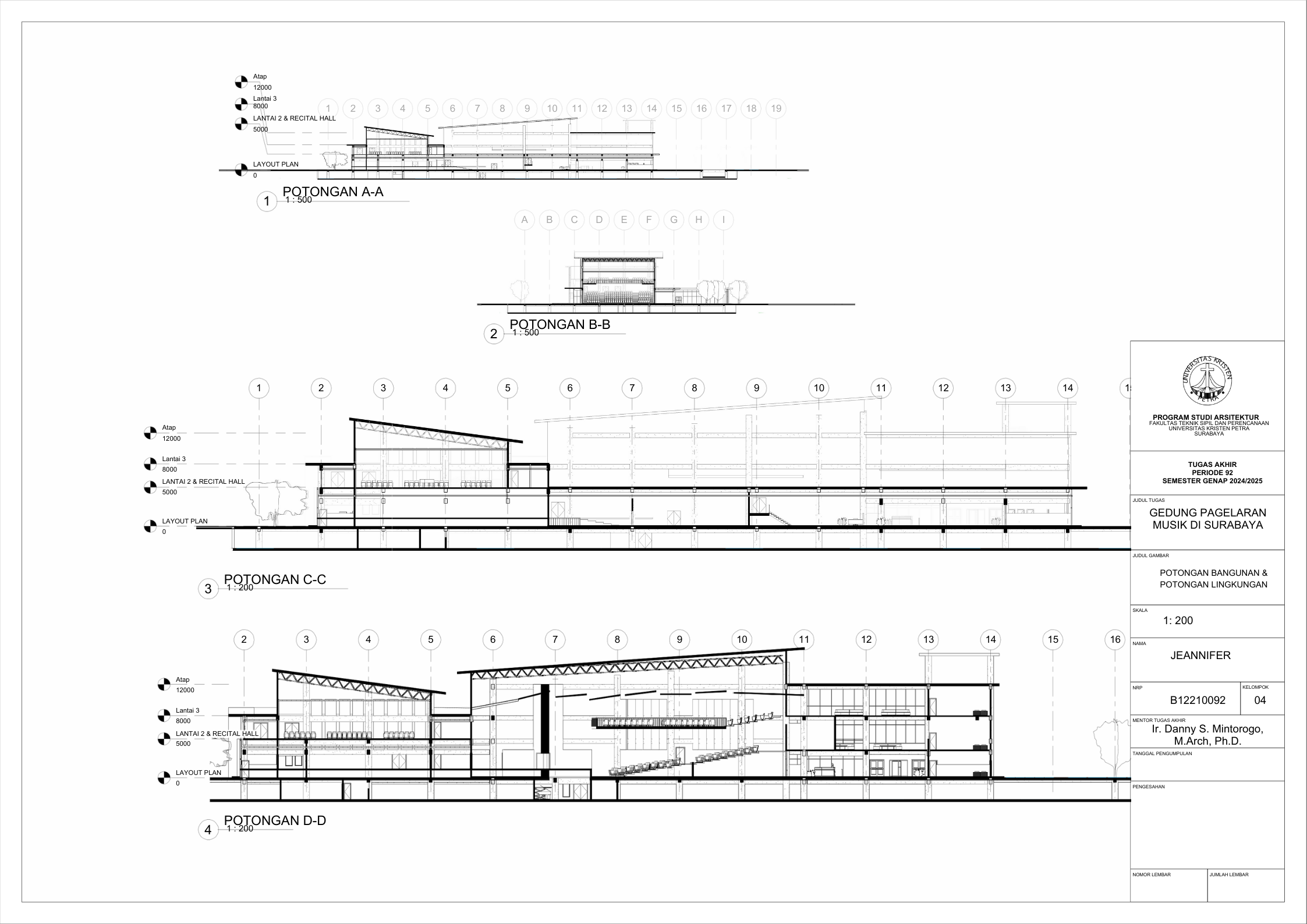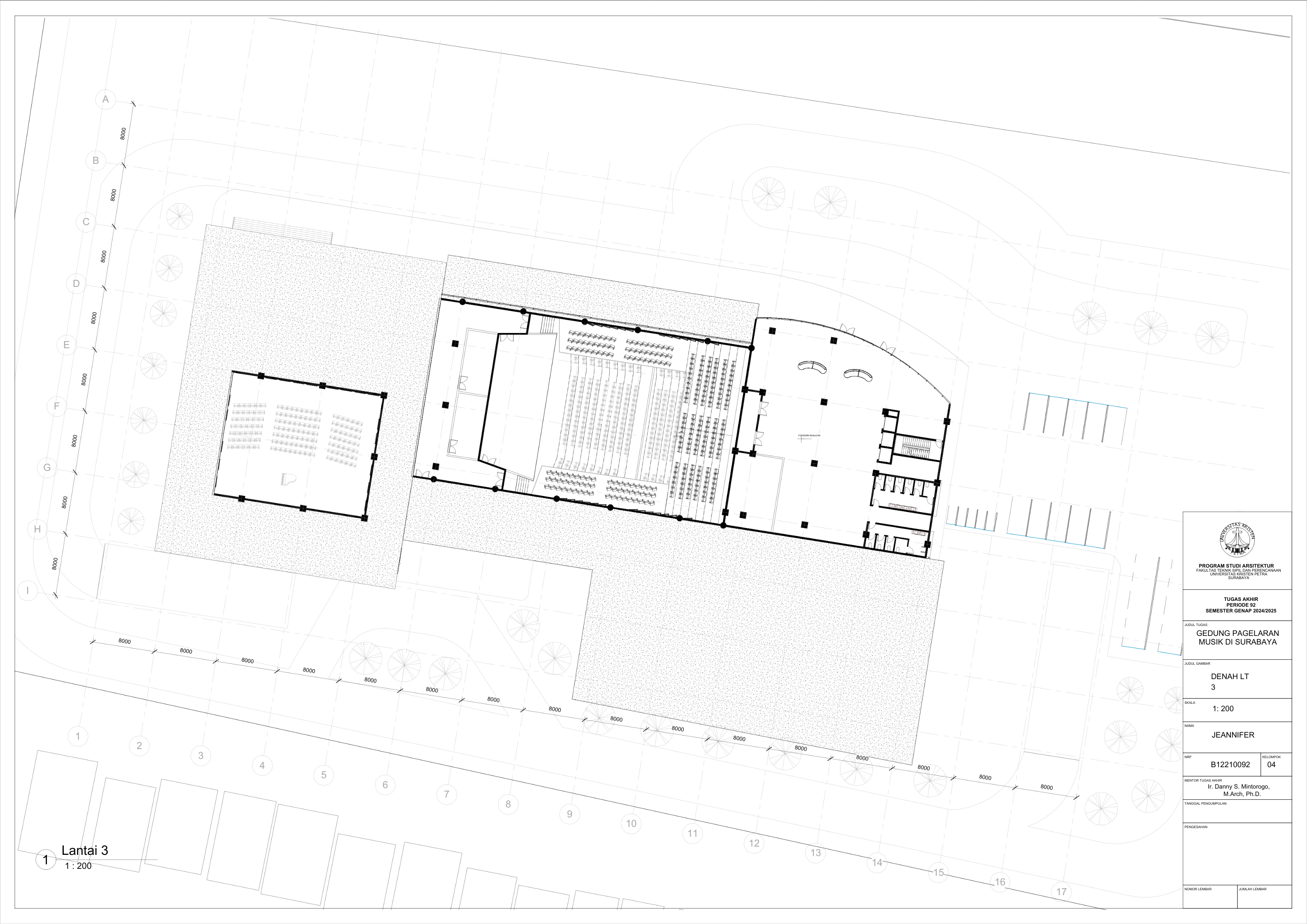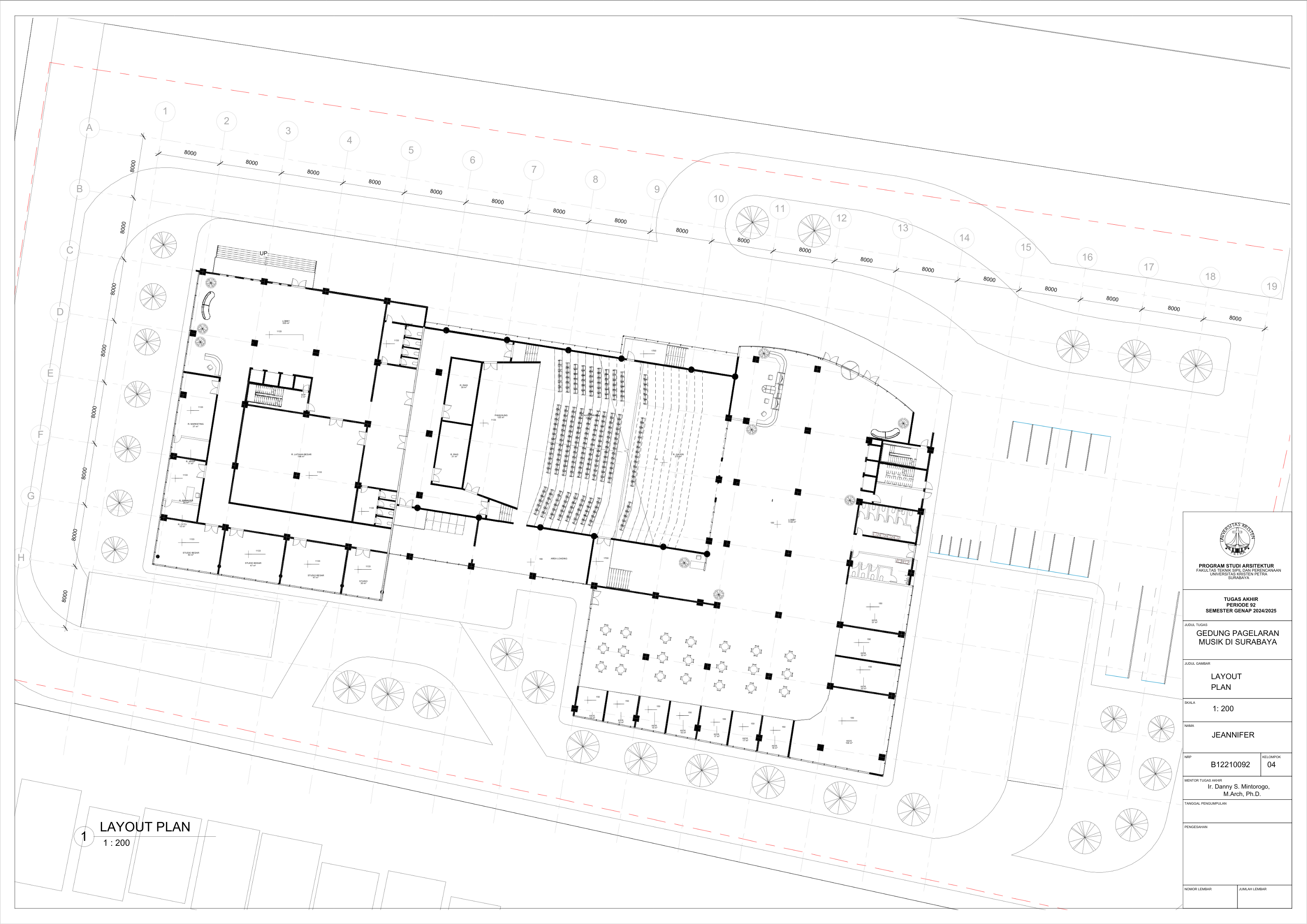 JEANNIFER Danny Santoso Mintorogo (Advisor 1); Bramasta Putra Redyantanu (Examination Committee 1); Rully Damayanti (Examination Committee 2); Altrerosje Asri, S.T., M.T. (Examination Committee 3); Bram Michael Wayne, S.T., M.Ars. (Examination Committee 4); Esti Asih Nurdiah, S.T., M.T., Ph.D. (Examination Committee 5); Wanda Widigdo Canadarma (Examination Committee 6) Universitas Kristen Petra Indonesian Digital Theses Undergraduate Thesis Laporan Perancangan Arsitektur Laporan Perancangan Arsitektur No. 00024677/ARS/2025; Jeannifer (B12210092) MUSIC-HALLS--DESIGNS AND PLANS