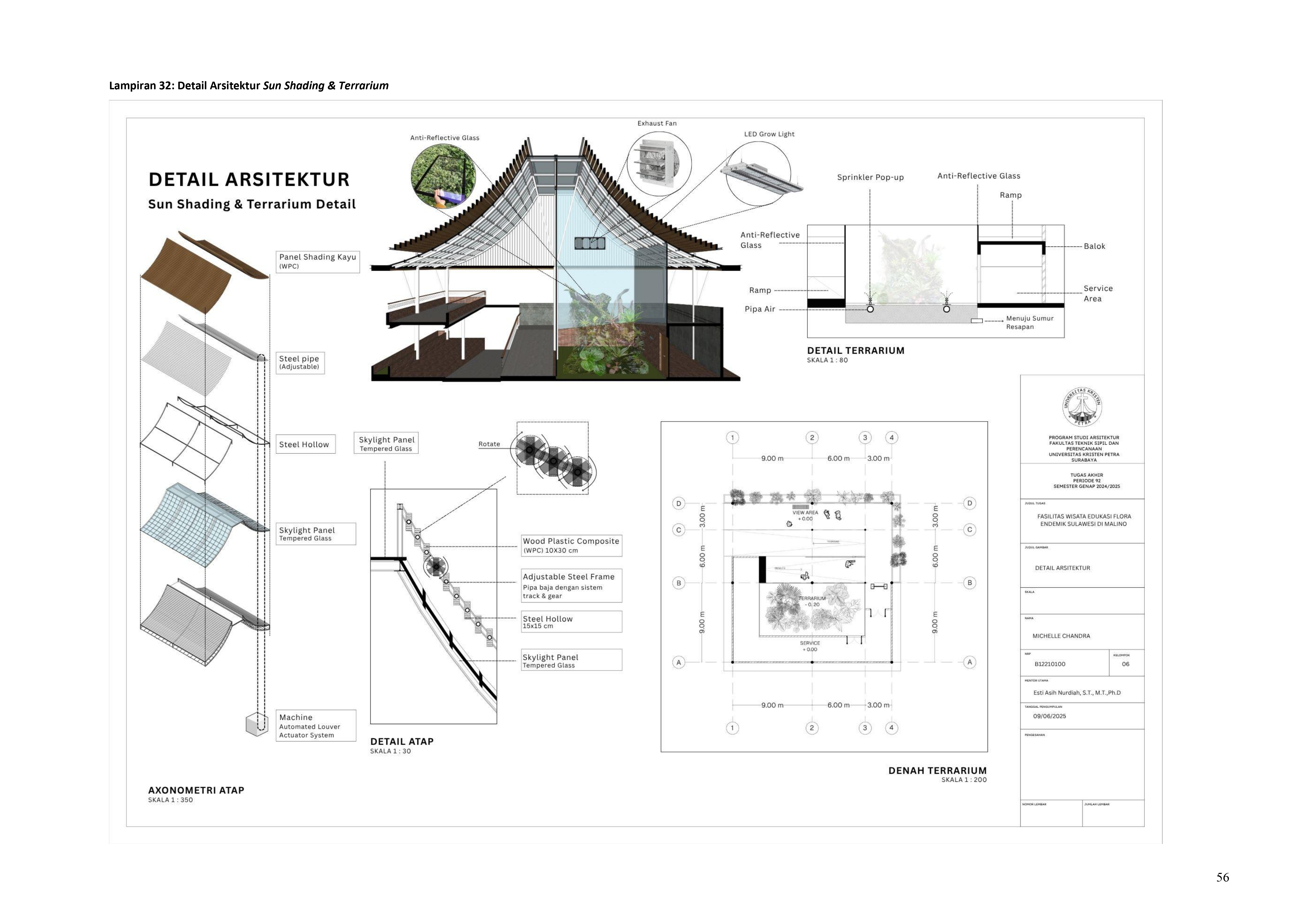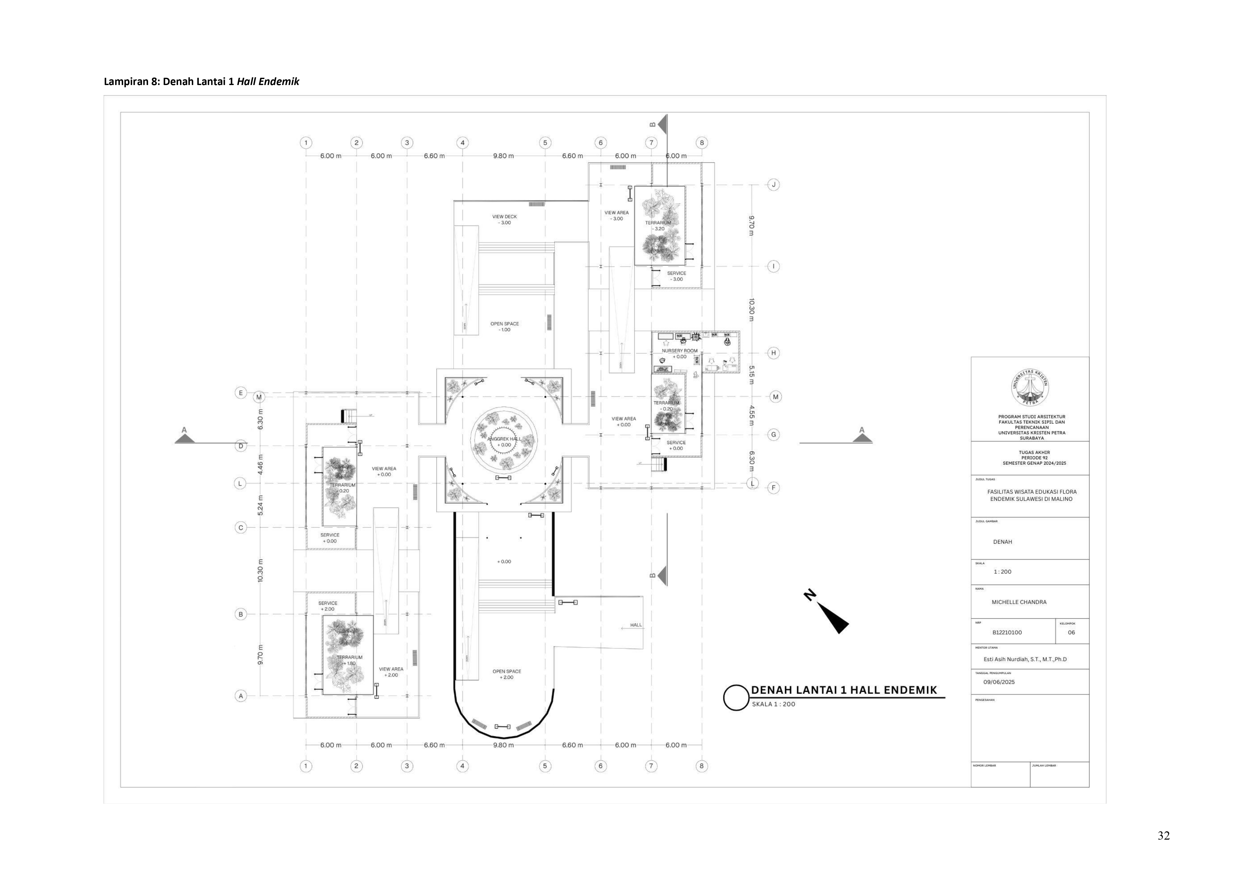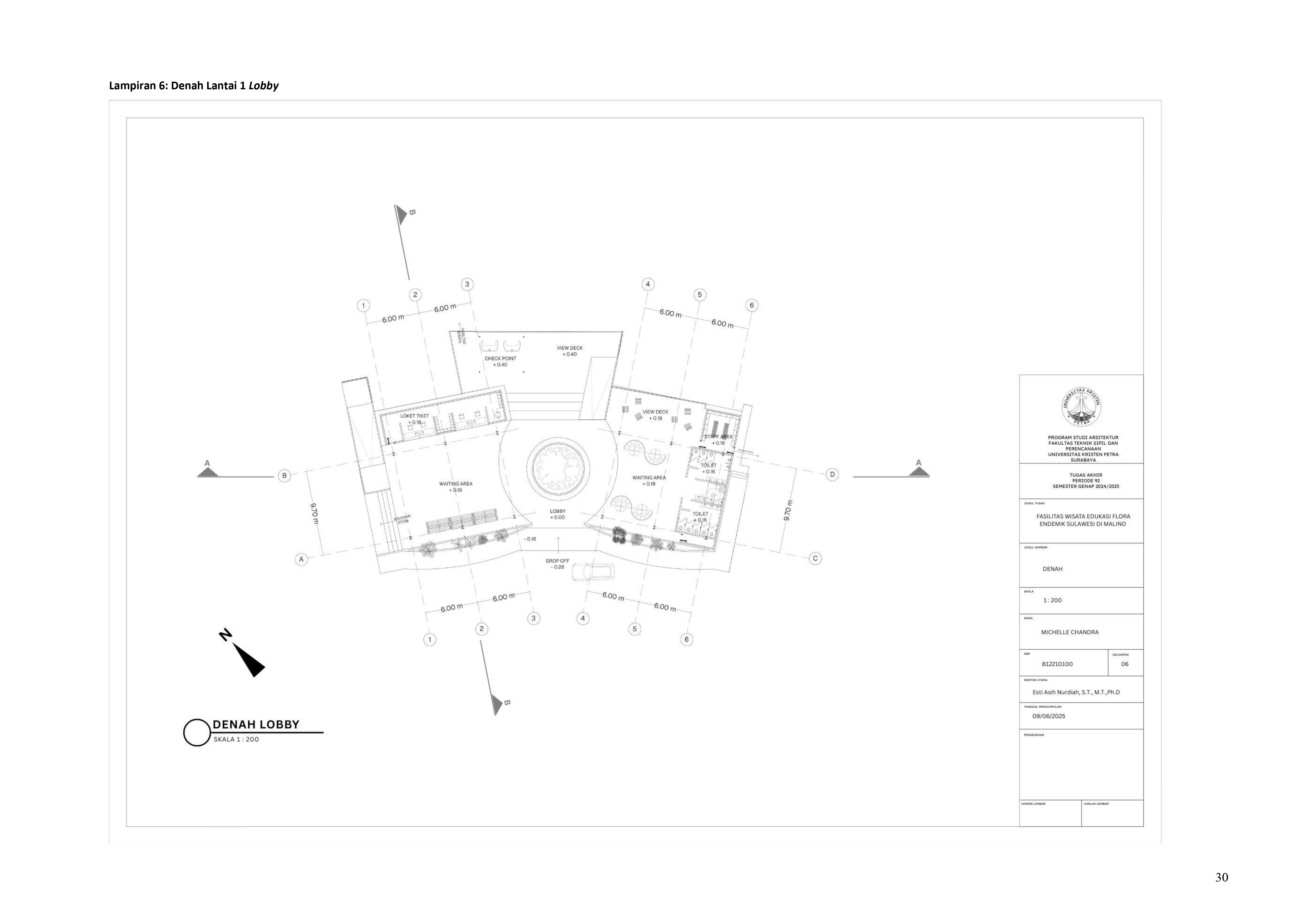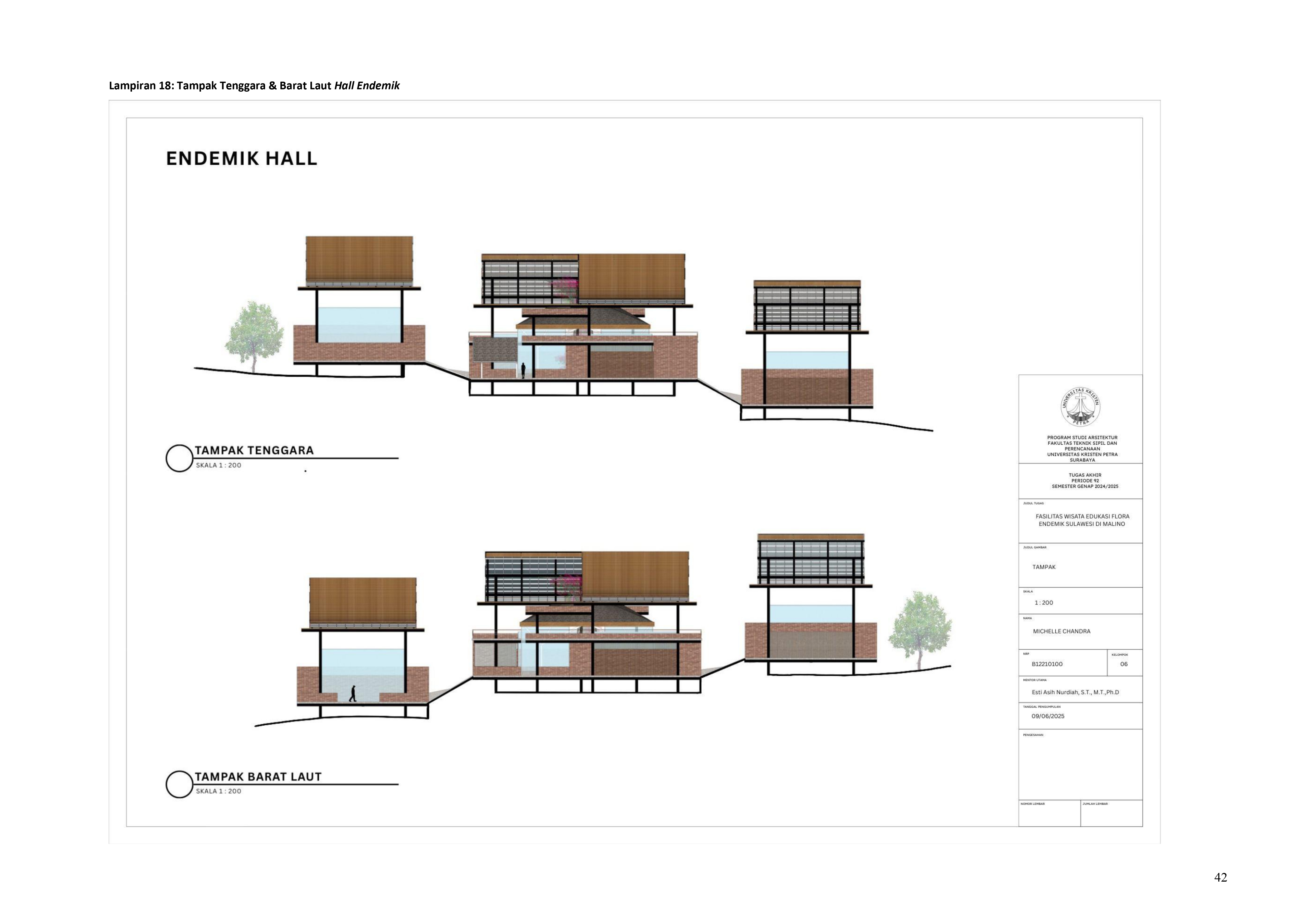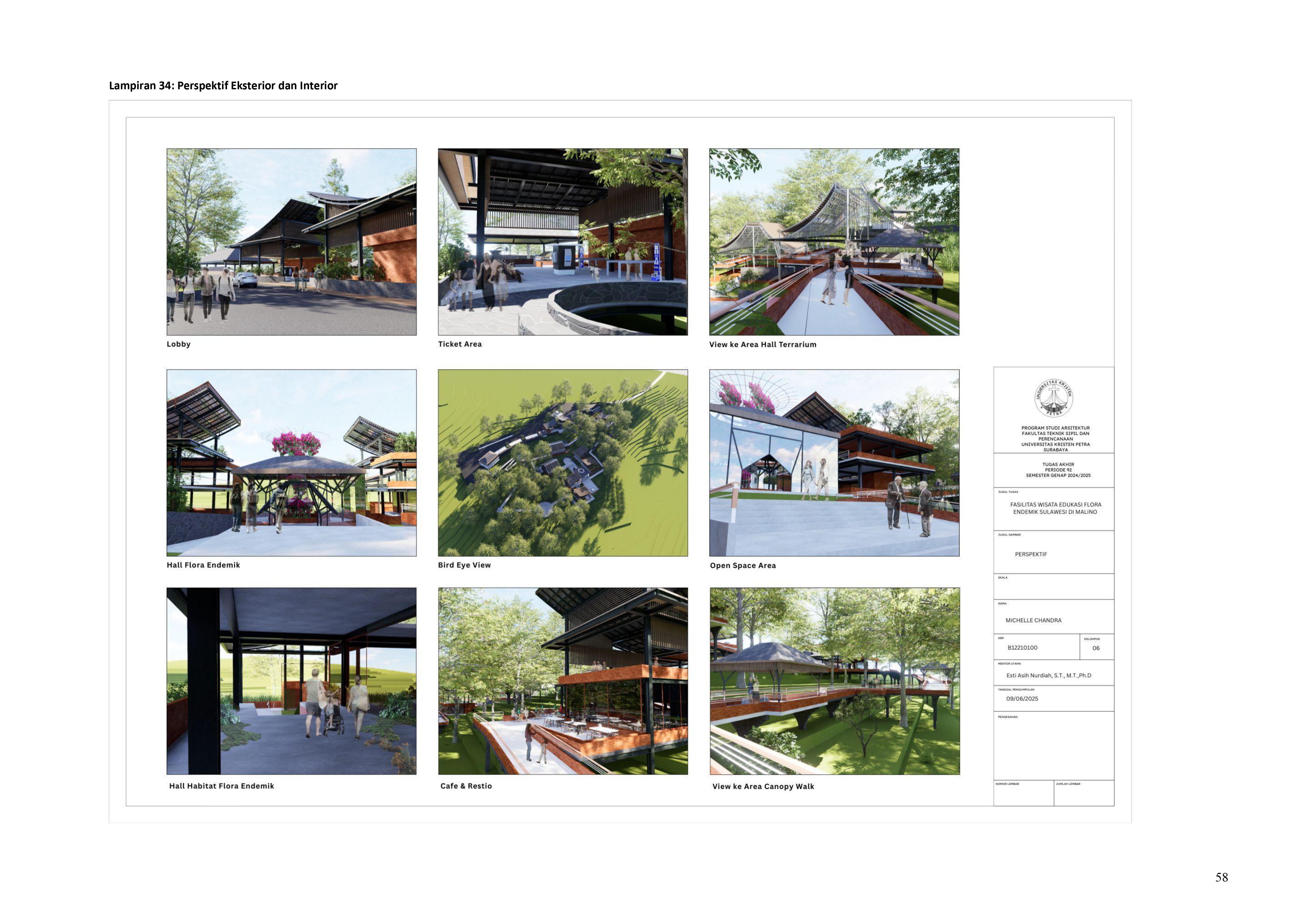 Perkembangan fasilitas edukasi saat ini menuntut perancangan ruang yang tidak hanya berfungsi sebagai media pembelajaran, tetapi juga mampu menjadi penghubung langsung antara manusia dan alam. Perancangan Fasilitas Wisata Edukasi Flora Endemik Sulawesi di Malino dilatarbelakangi oleh menurunnya kesadaran masyarakat terhadap pentingnya pelestarian flora lokal, yang semakin terancam oleh aktivitas pariwisata yang tidak terkontrol dan degradasi lingkungan. Untuk menjawab tantangan ini, pendekatan constructed ecosystem diterapkan sebagai strategi utama dalam perancangan. Pendekatan ini bertujuan untuk menciptakan lingkungan buatan yang meniru dan merepresentasikan sistem kerja ekosistem alami, sehingga mampu menghadirkan pengalaman ekologis secara nyata dalam konteks ruang arsitektur. Melalui metode studi literatur, observasi lapangan, dan analisis tapak, desain dikembangkan ke dalam bentuk terarium besar, ruang interpretatif, jalur edukatif, serta zona konservasi semi-terbuka yang saling terhubung secara fungsional dan ekologis. Setiap elemen ruang dirancang tidak hanya untuk menampilkan keanekaragaman flora endemik Sulawesi, tetapi juga menciptakan sistem mikroklimat yang mendukung pertumbuhan tanaman dan kenyamanan pengunjung. Ruang-ruang ini saling terhubung dan memberi pengalaman langsung dengan ekosistem buatan, untuk menumbuhkan kesadaran akan pentingnya lingkungan. Proyek ini bertujuan menjadi contoh arsitektur edukatif yang peduli lingkungan, melibatkan masyarakat, dan berdampak langsung pada konservasi.