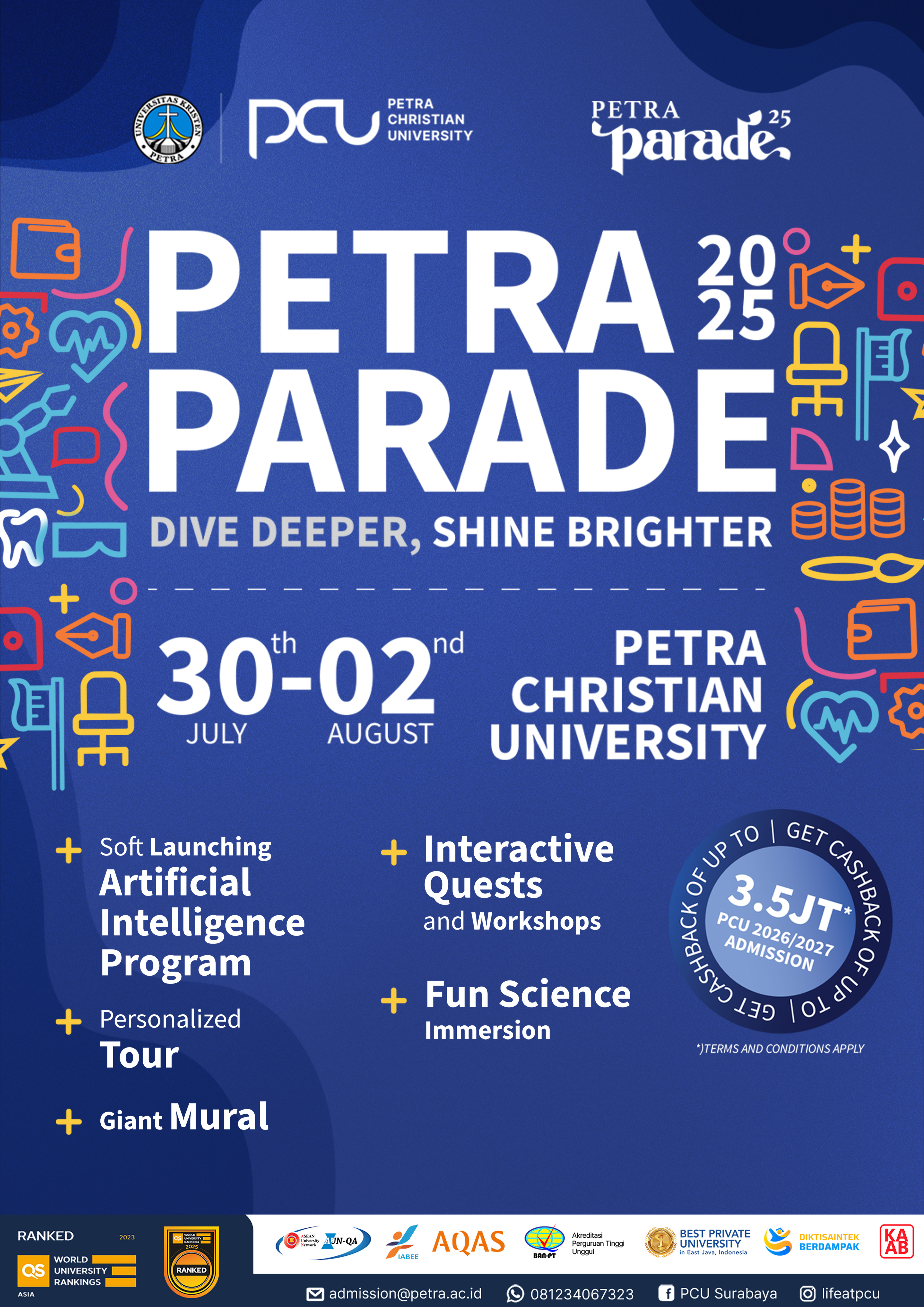 Untuk memperkenal Universitas Kristen Petra ke kalangan siswa SLTA serta bertujuan menjaring calon calon mahasiswa yang akan mendaftarkan diri di UK Petra Surabaya. Maka pada tanggal 30 Juli - 2 Agustus 2025, Universitas Kristen Petra Surabaya mengadakan acara Petra Parade 2025. Kegiatan ini diselenggarakan di kampus UK Petra.