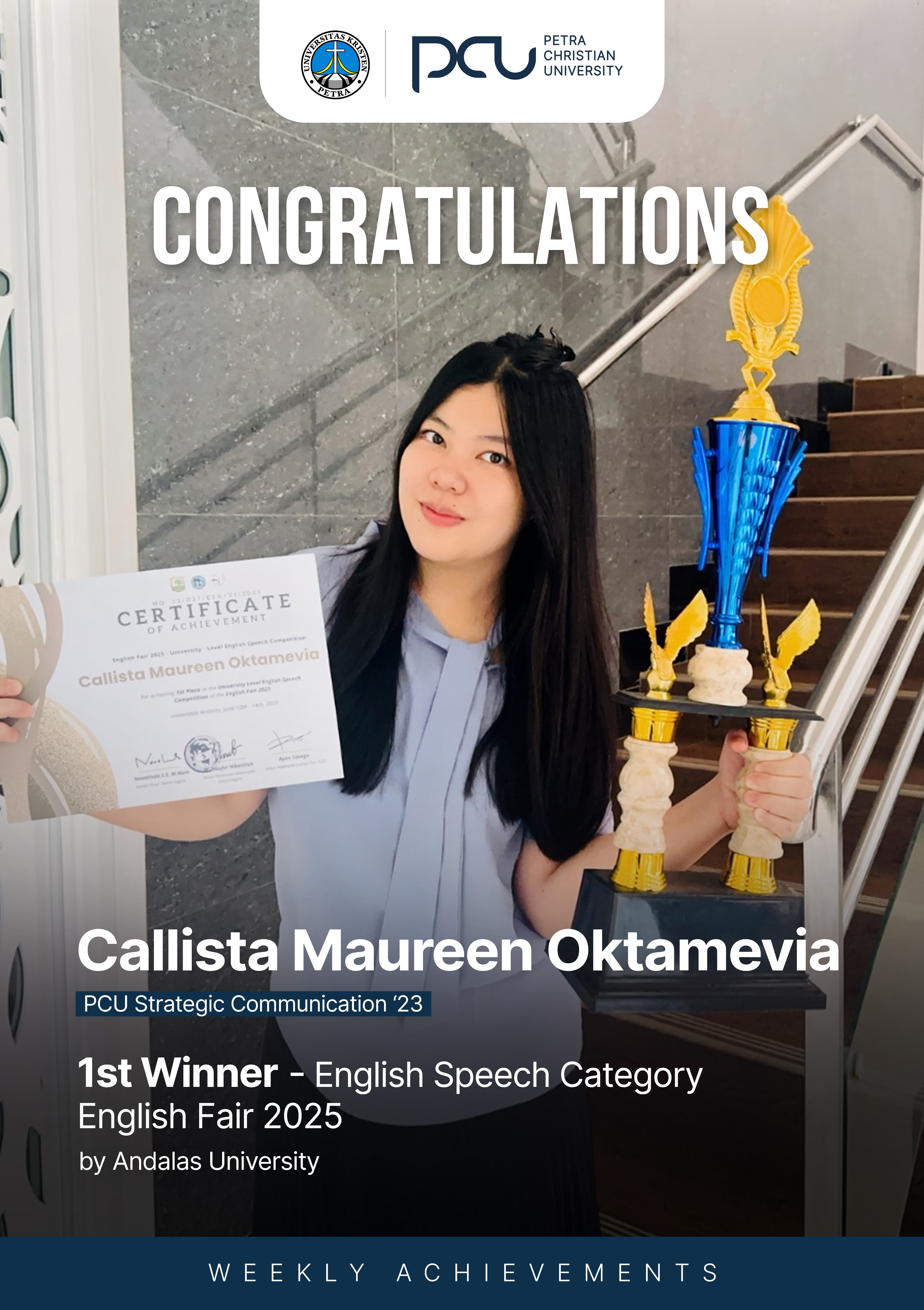 Selamat atas prestasi yang diraih oleh Callista Maureen Oktamevia sebagai 1st Winner dalam English Speech Category English Fair 2025 by Andalas University