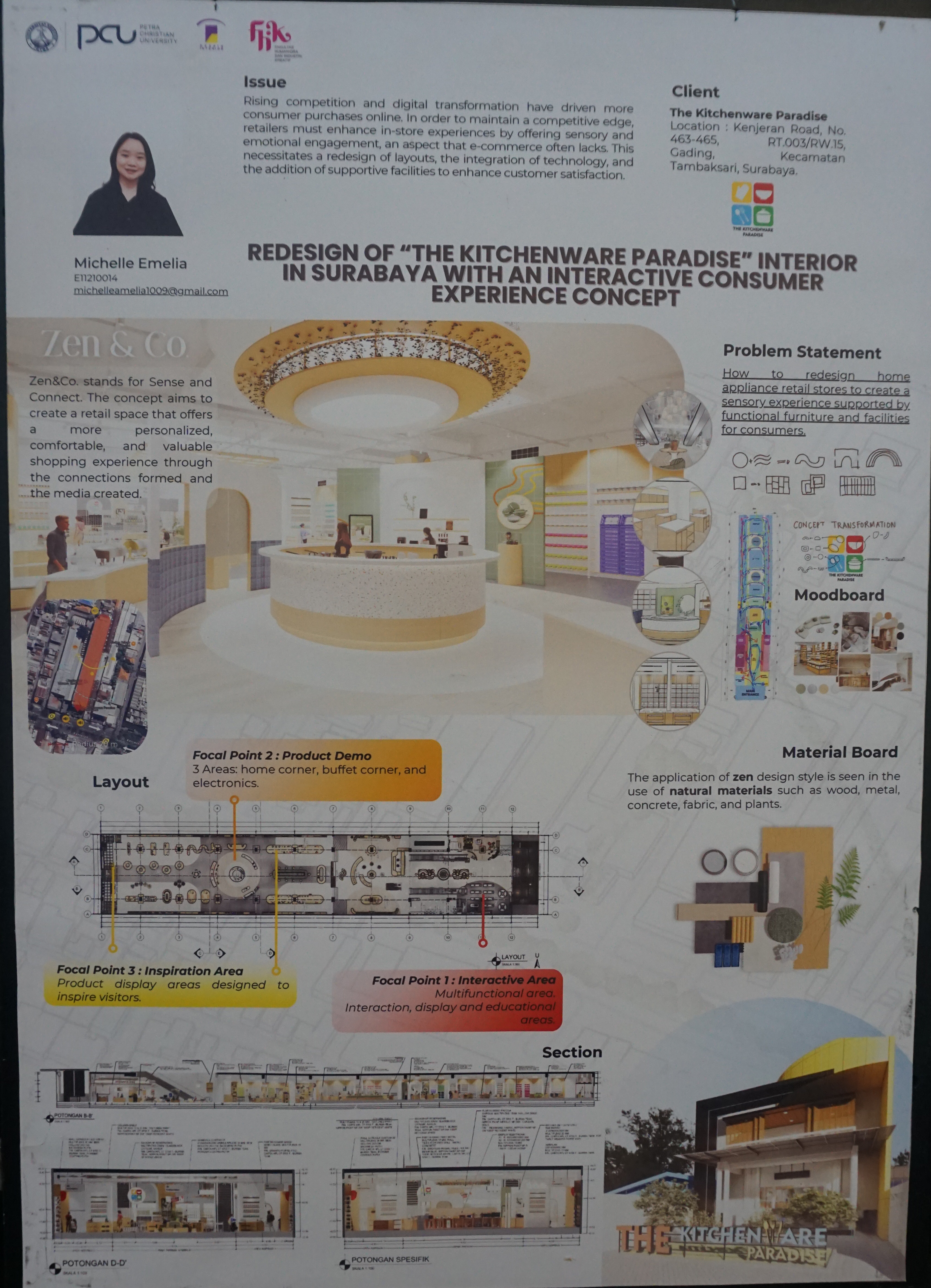 Interior Design Exhibition (INDEX) 2025 dengan mengangkat tema Synced menampilkan beberapa ide baru dari mahasiswa Desain Interior UK Petra. Pameran interior design ini diselenggarakan pada 31 Juli - 03 Agustus 2025, di kampus UK Petra. Salah satu materi pameran adalah "Redesign of "The kitchenware paradise" interior in Surabaya with an interactive consumer experience concept". Ide karya renovasi desain interior The Kitchenware Paradise yang berada di jalan Kenjeran Surabaya. Karya dari [ E11210014 ] Michelle Emelia