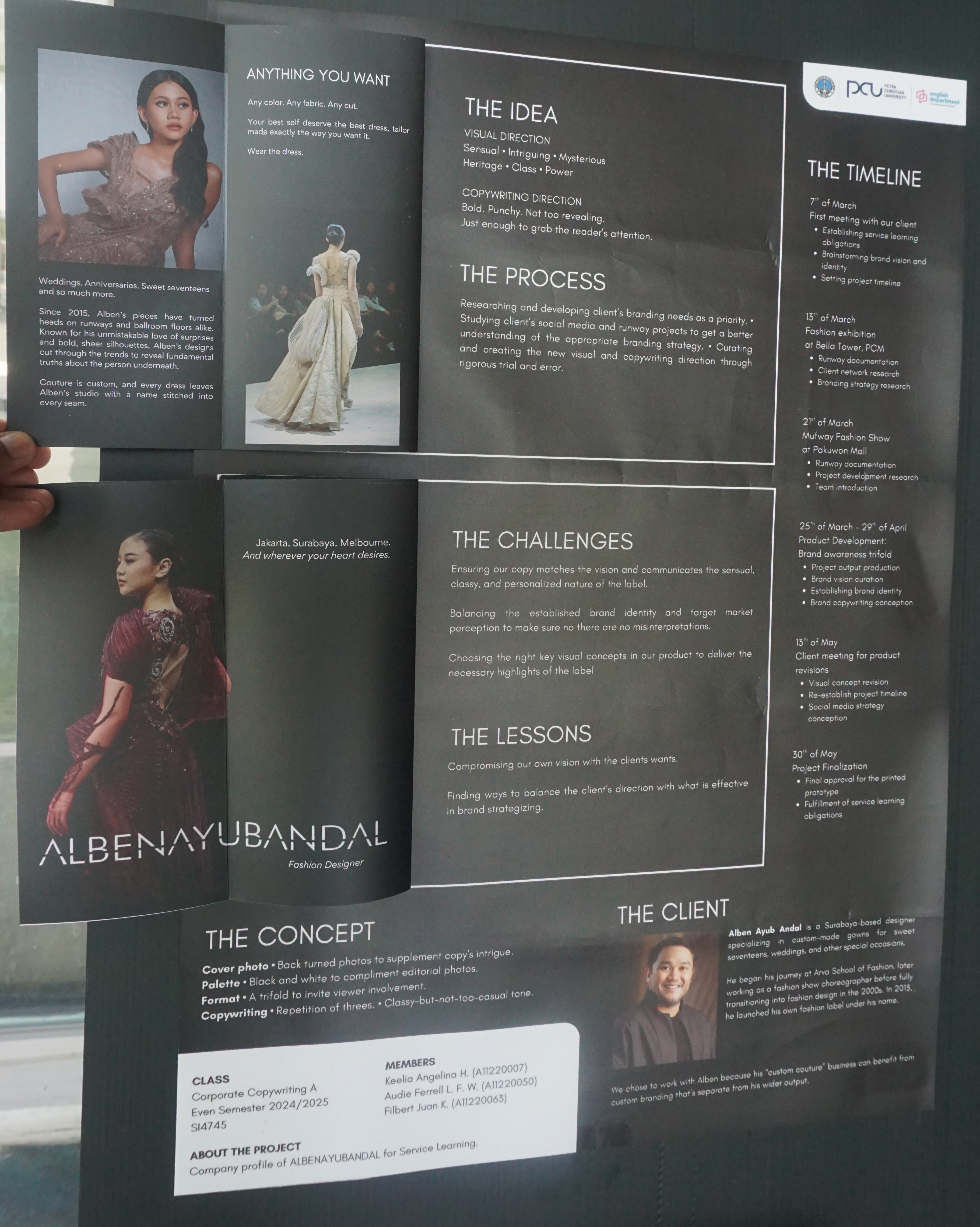 Poster ini dibuat untuk final project exhibition dari mahasiswa Program Studi English for Creative Industry. Salah satu materi pameran adalah Company Profile Alben Ayub Andal.