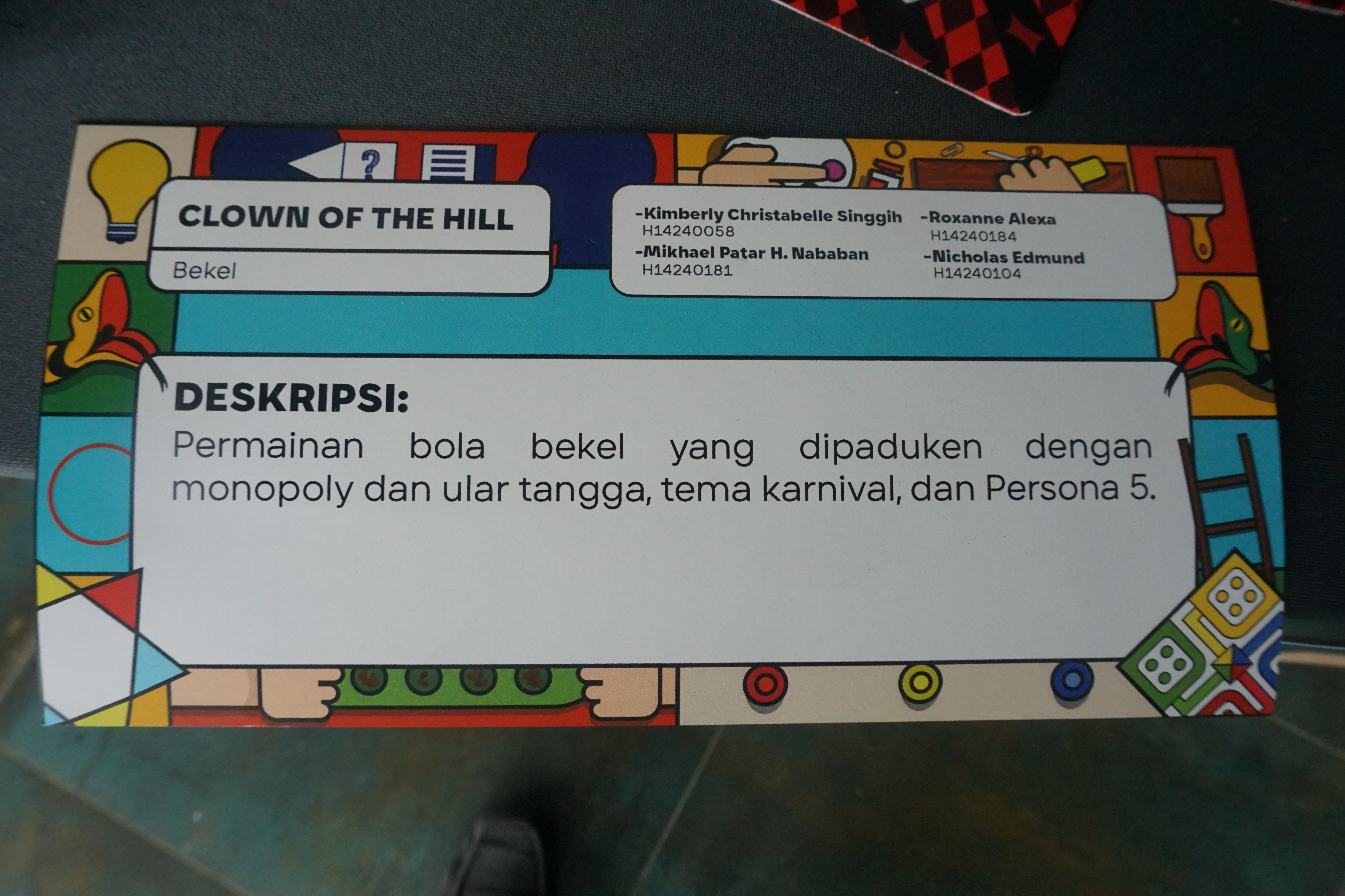 Karya dari Kimberly Christabelle Singgih (H14240058), Mikhael Patar H. Nababan (H14240181), Roxanne Alexa (H14240184) dan Nicholas Edmund (H14240104).