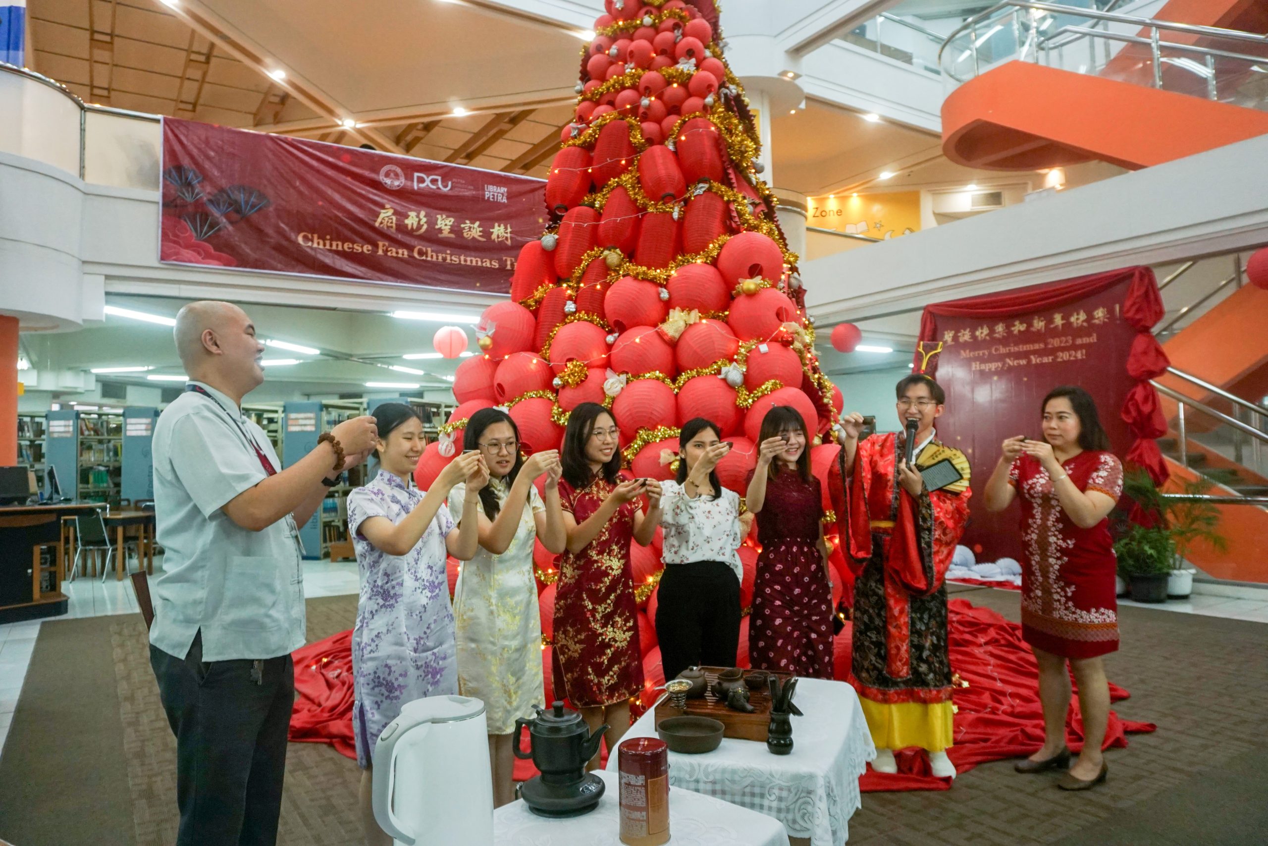Dengan tinggi sekitar 7 meter, pohon Natal ini dibuat dengan cermat oleh staf Perpustakaan PCU. Pohon ini terdiri dari 183 kipas ornamen Tiongkok dan 205 lentera. Proses pembuatan ornamen ini melibatkan kerja keras selama sekitar 1 minggu. Ornamen ini bukan sekadar dekorasi, tetapi berfungsi sebagai representasi makna budaya yang mendalam.