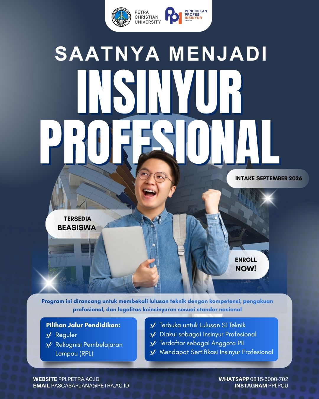 Pendaftaran mahasiswa baru Program Pendidikan Profesi Insinyur (PPI) - UK Petra