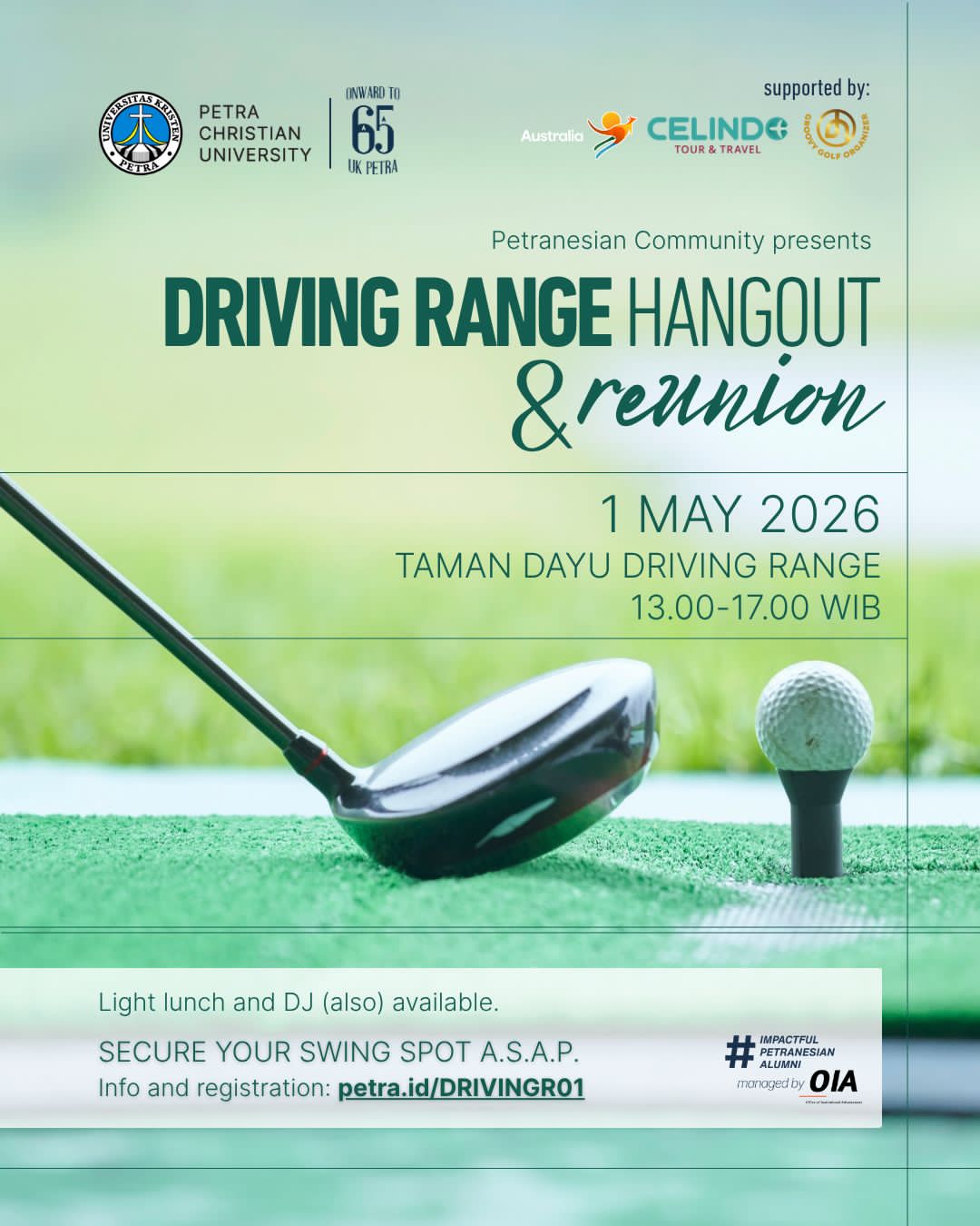 Gabung bareng komunitas Petranesian di acara Driving Range Hangout & Reunion. Nikmati light lunch, DJ set, dan pastinya momen ngumpul yang berkualitas.