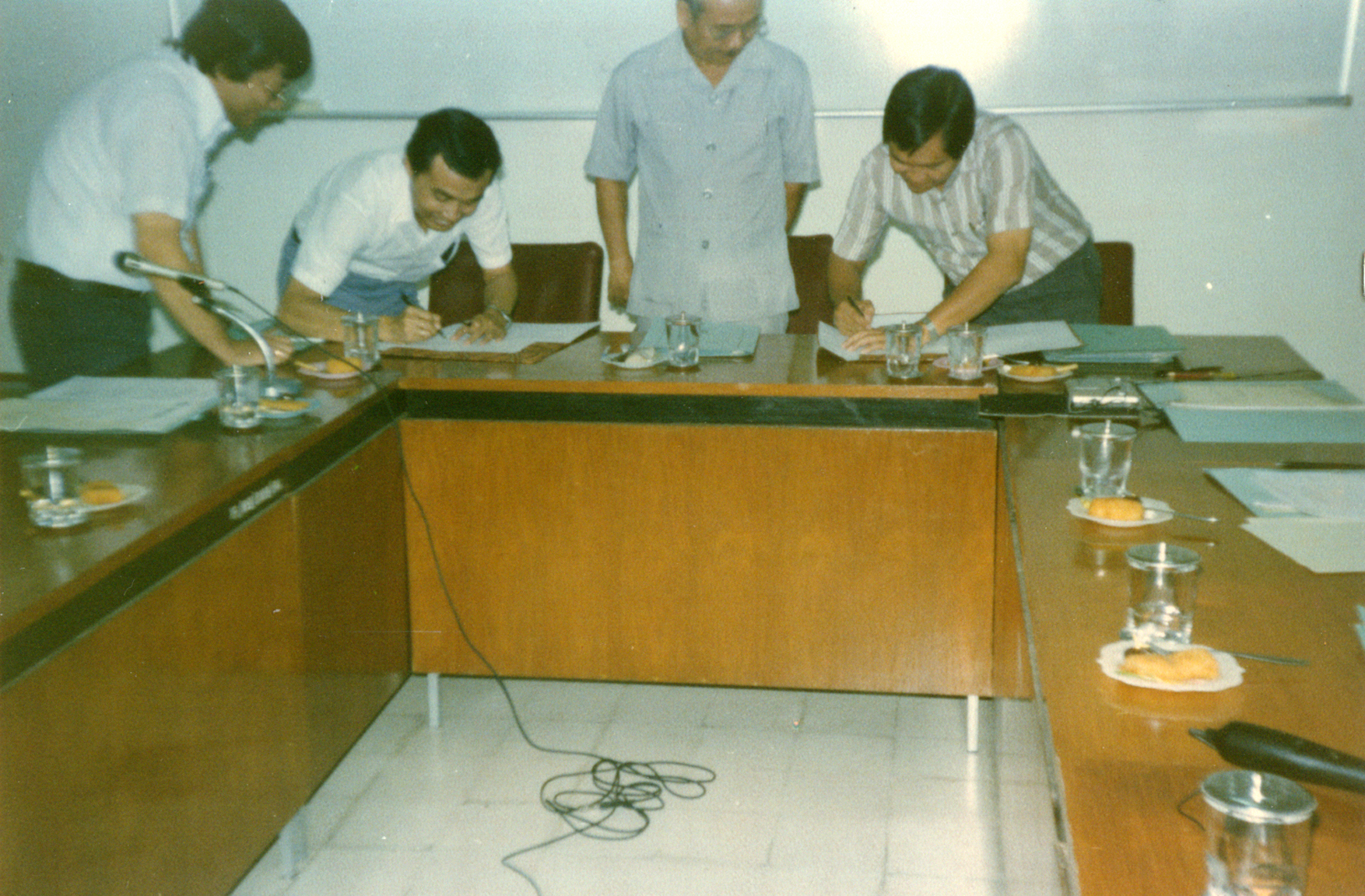 Dokumentasi acara serah terima jabatan Pembantu Rektor I Universitas Kristen Petra dari Bapak I. G. Aditjipto kepada Bapak Dr. Ir. Daniel Pribadi tahun 1986.