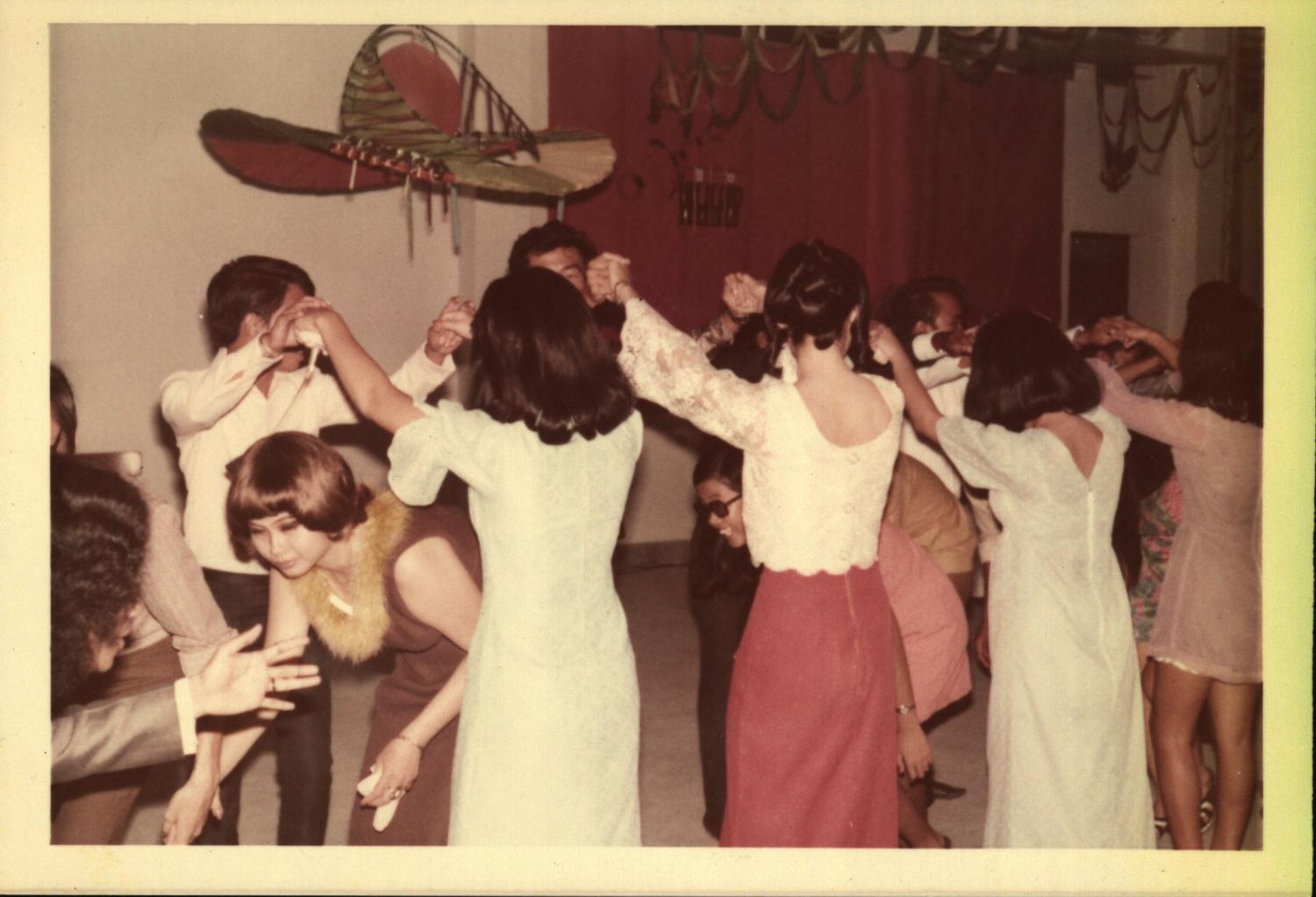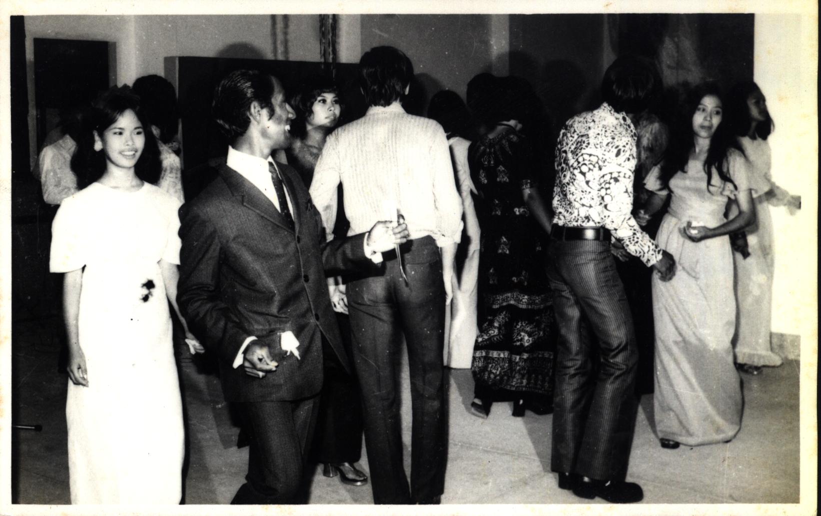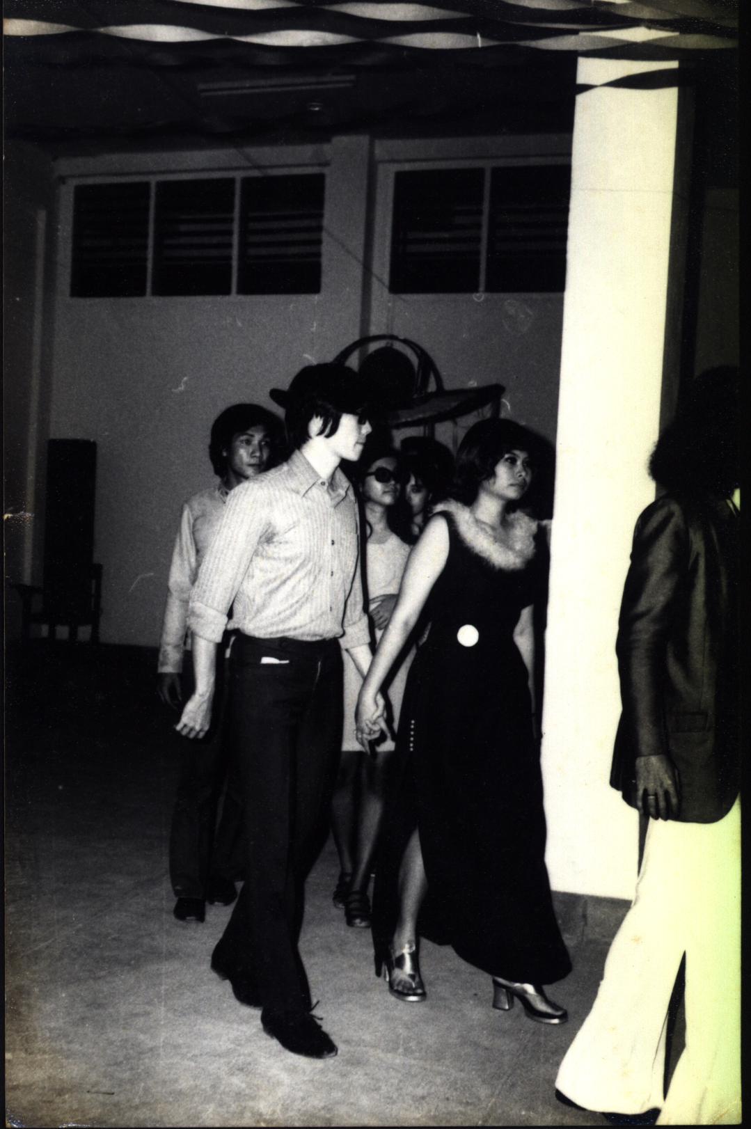 Dokumentasi foto tari modern (dansa) pada acara malam kesenian dies natalis XI Universitas Kristen Petra Surabaya tanggal 22 Oktober 1972.