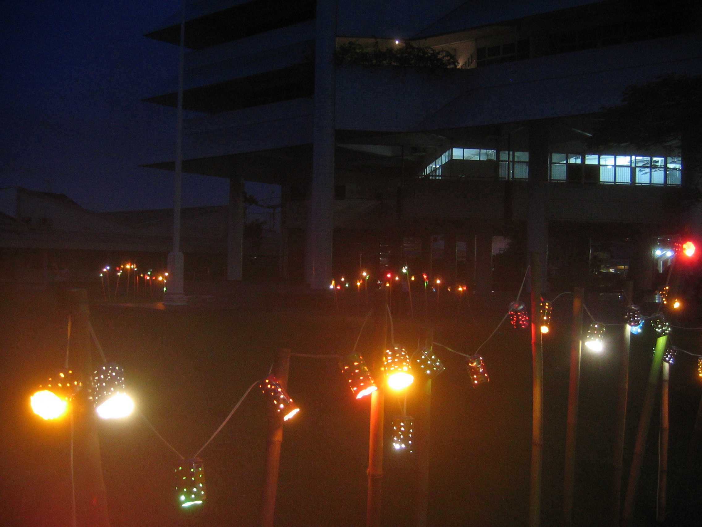 This Christmas Tree, called "Christmas Tree of Togetherness", is maked of 860 used tin cans, and reaches 5.60 m. The use tin cans were collected by the Petra Christian University staff.