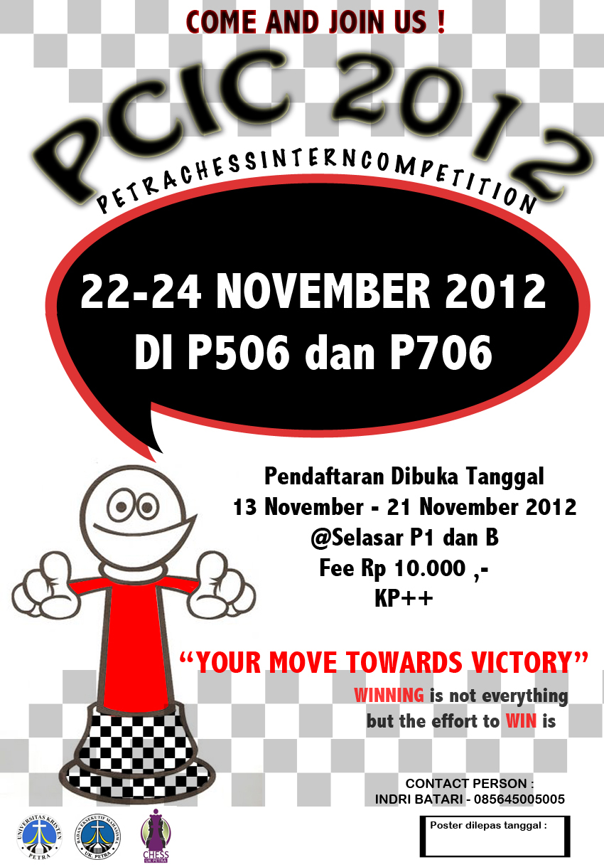 Petra Chess Intern Competition, sebuah ajang kompetisi intern bagi mahasiswa yang tertarik untuk adu kebolehan bermain catur. Pendaftaran dibuka tanggal 13-21 November 2012 di selasar gedung P1 dan B. Kompetisi diadakan pada tanggal 22-24 November bertempat di gedung P506 dan P706.
