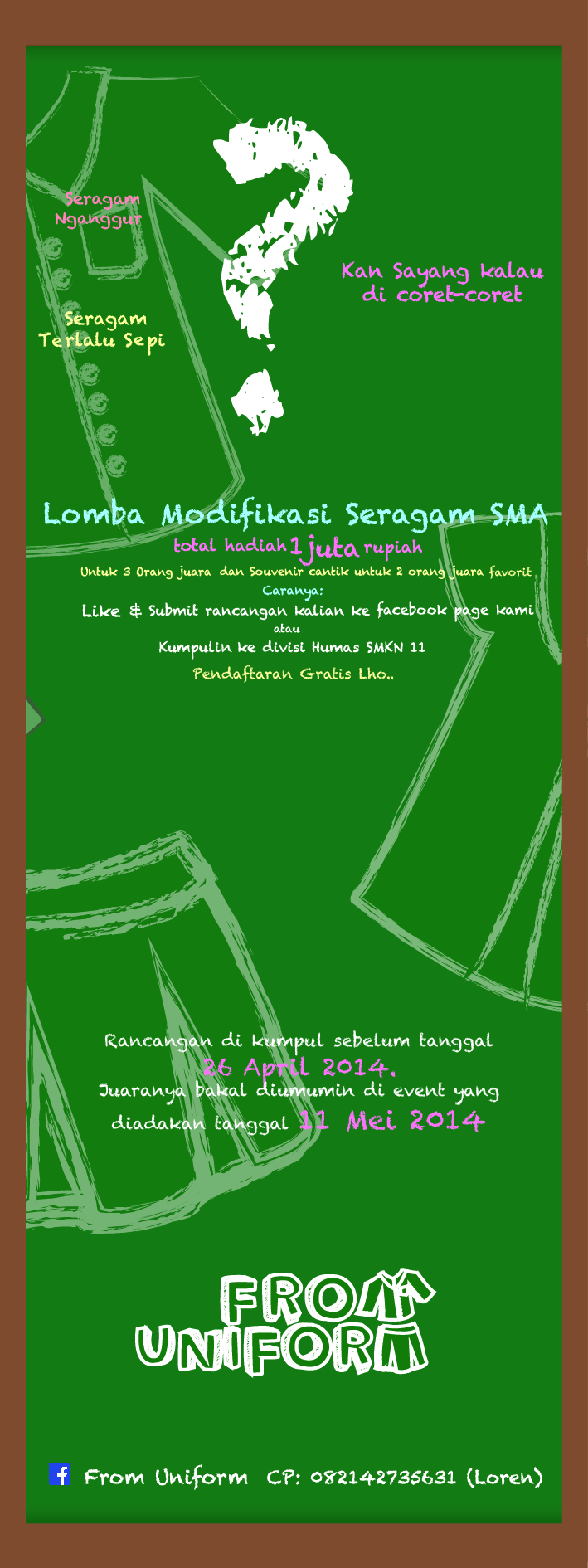 Perancangan Kampanye Sosial untuk menginformasikan anak-anak SMA yang mengikuti ujian kelulusan maupun yang akan mengikuti ujian kelulusan untuk tidak melakukan aksi corat-coret yang merugikan. Pesta kelulusan anak SMA seringnya diwarnai dengan aksi corat-coret dan dilanjutkan dengan konvoi keliling di jalan raya. Aksi ini kerap meresahkan masyarakat karena bersifat ugal-ugalan dan melanggar peraturan lalu lintas. Sehingga dalam perancangan ini dikomunikasikan solusi yang dapat menyalurkan kreatifitas dan kesenangan yang mereka dapatkan dalam melakukan aksi corat-coret. Perancangan kampanye ini dibuat untuk menyadarkan anak-anak SMA terutama yang mengikuti ujian kelulusan agar melakukan aksi corat-coret yang tidak merugikan masyarakat namun tetap kreatif dan tetap memiliki unsur kesenangan bagi anak-anak SMA