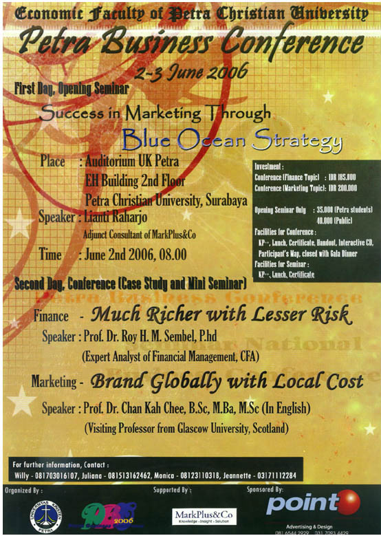 Petra business conference 2006: seminar: "Success in marketing through blue ocean strategy". Conference: "Much richer with lesser risk" and "Brand globally with local cost"